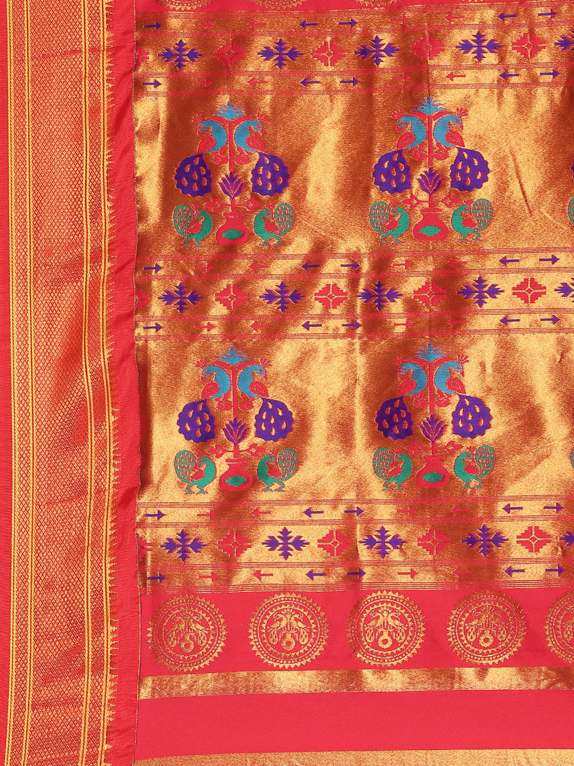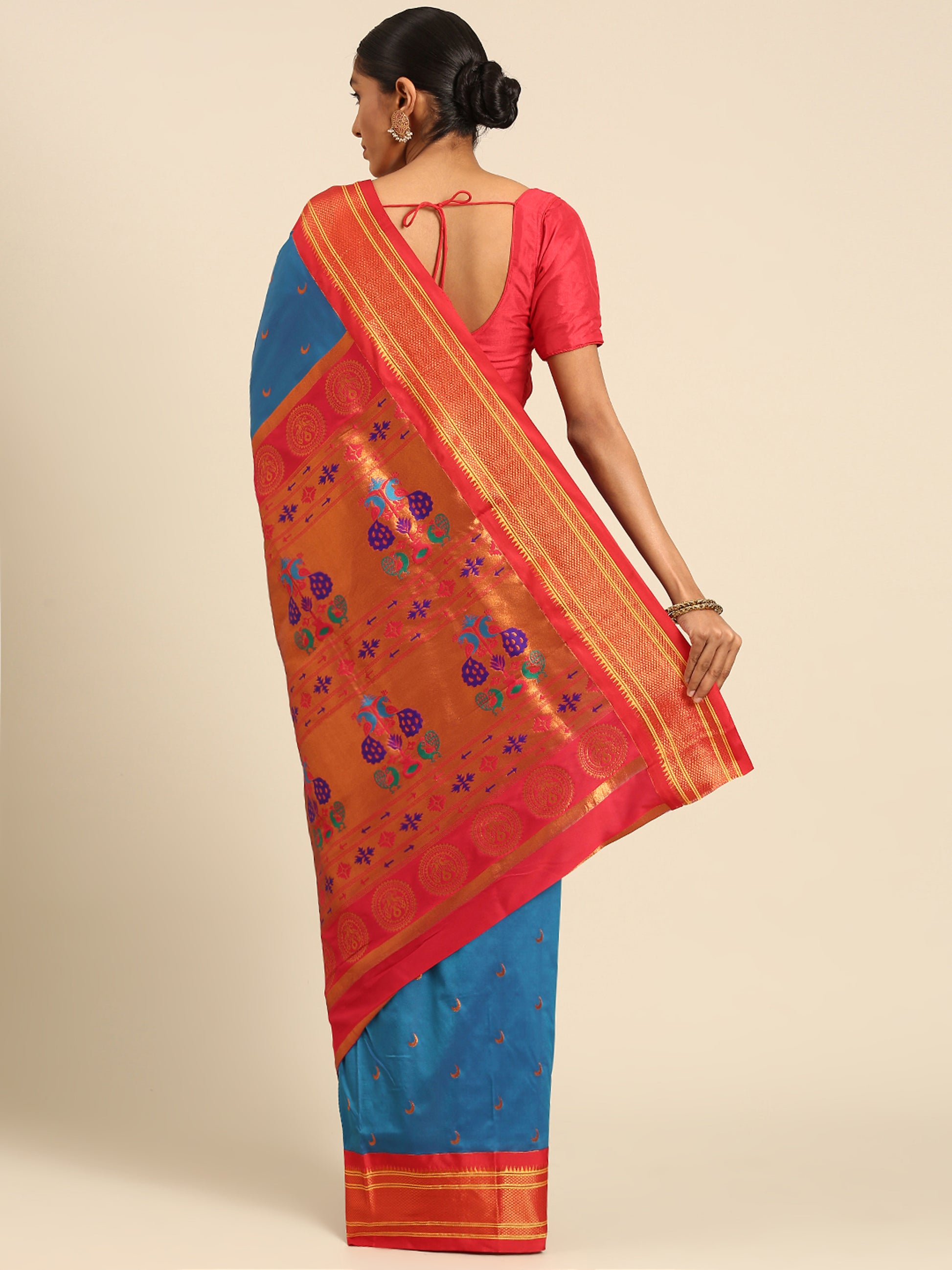 Chandrkala Firozi & Red Soft Silk Chandrakor Paithani Saree