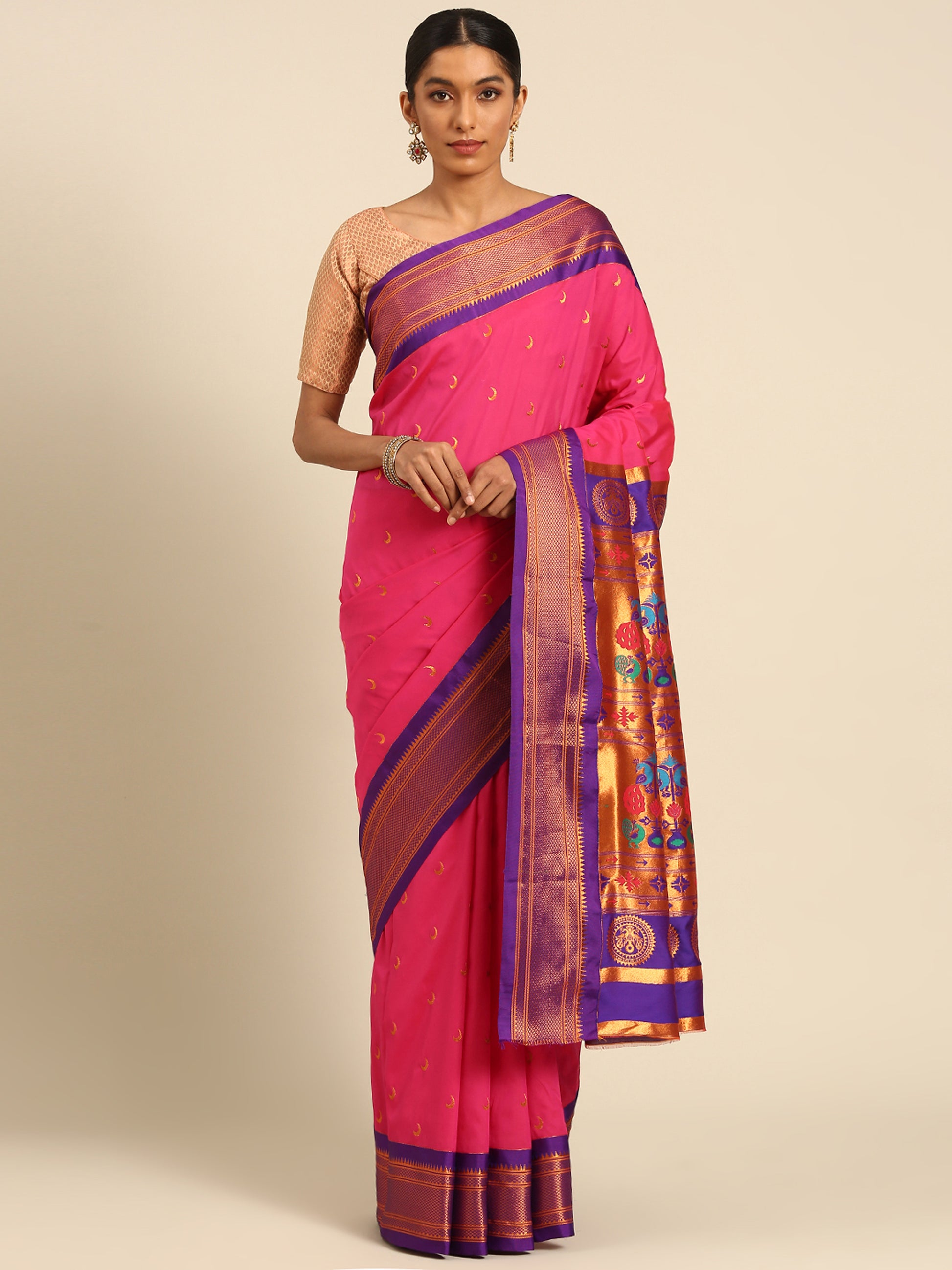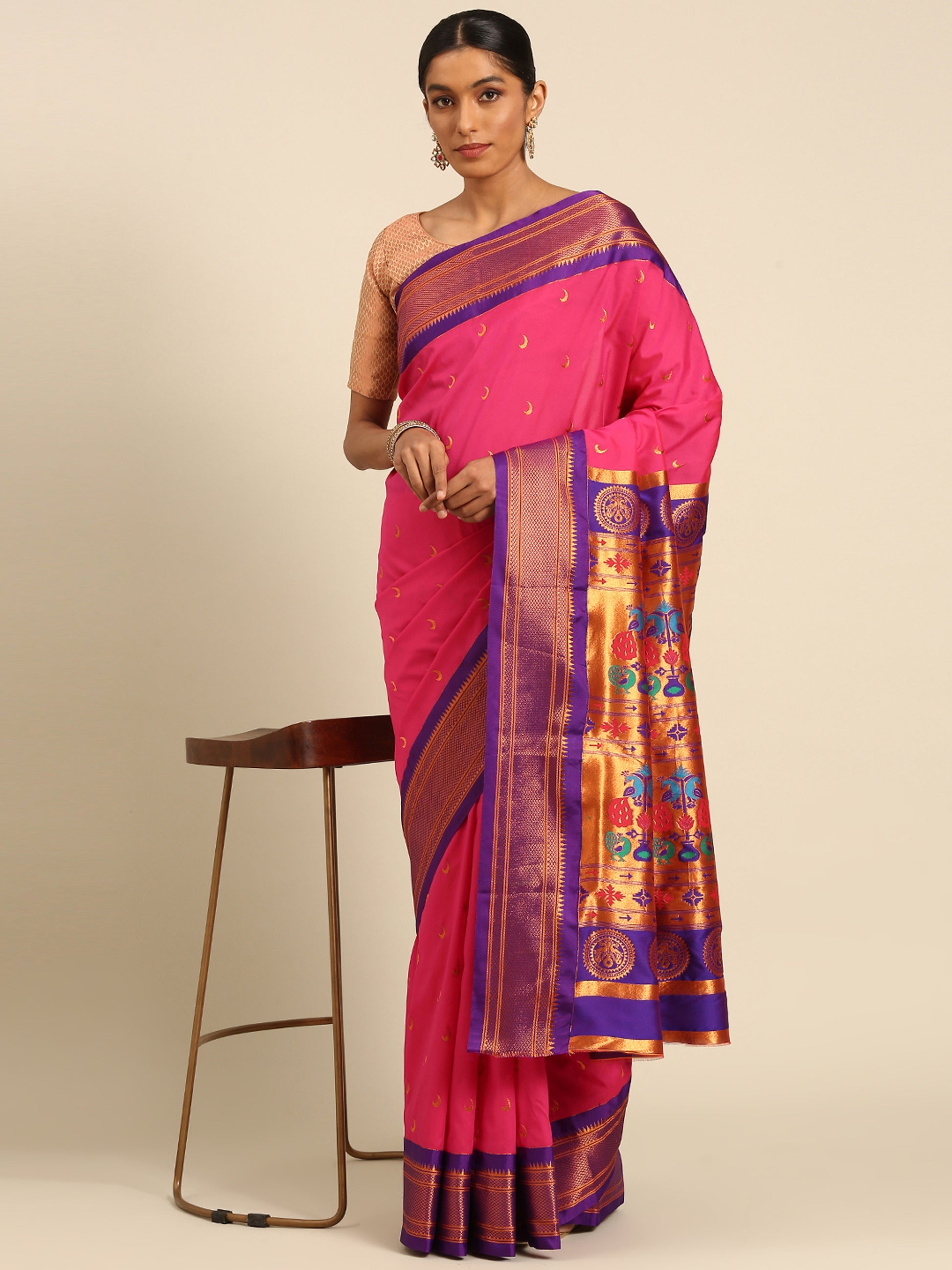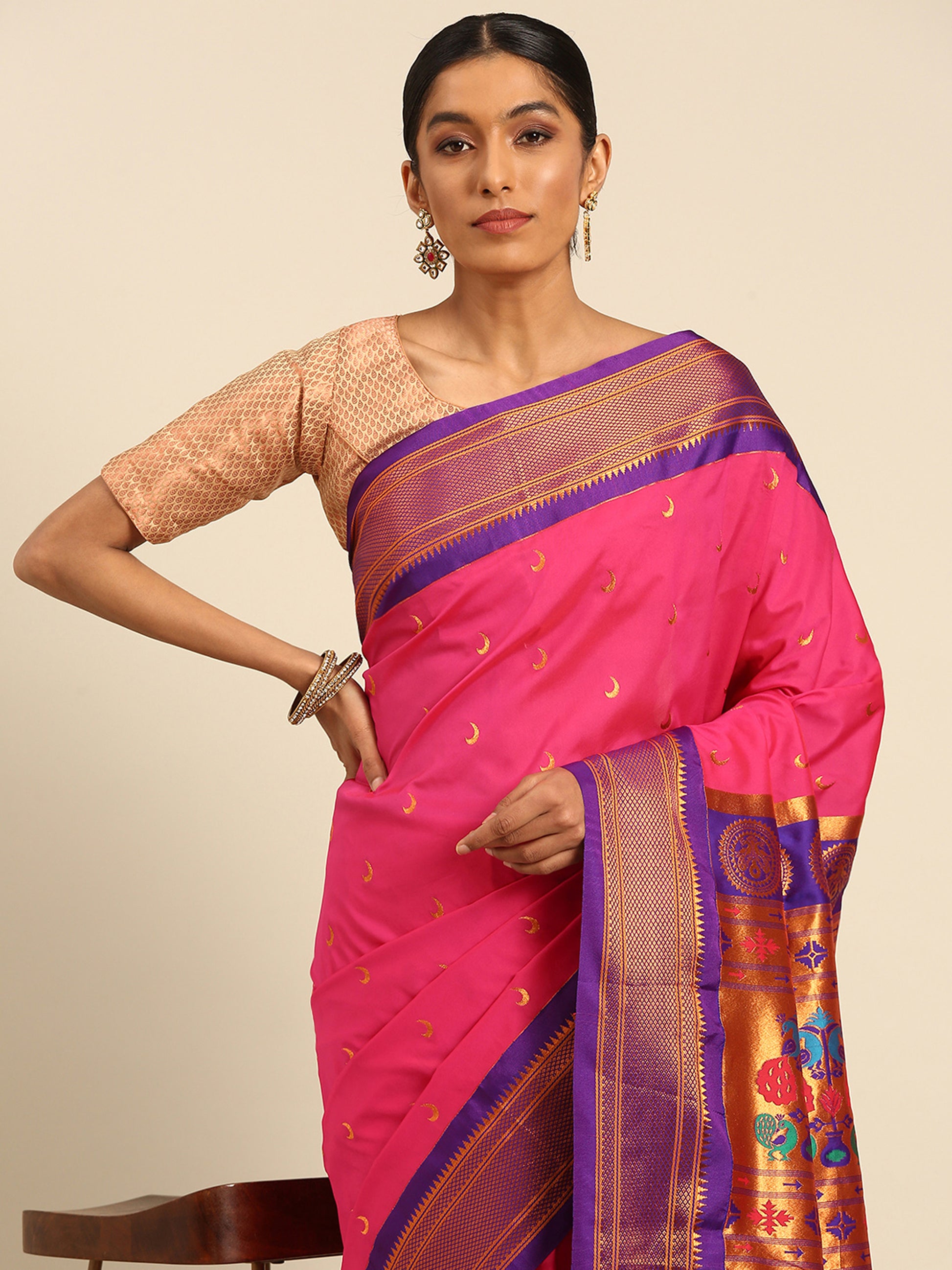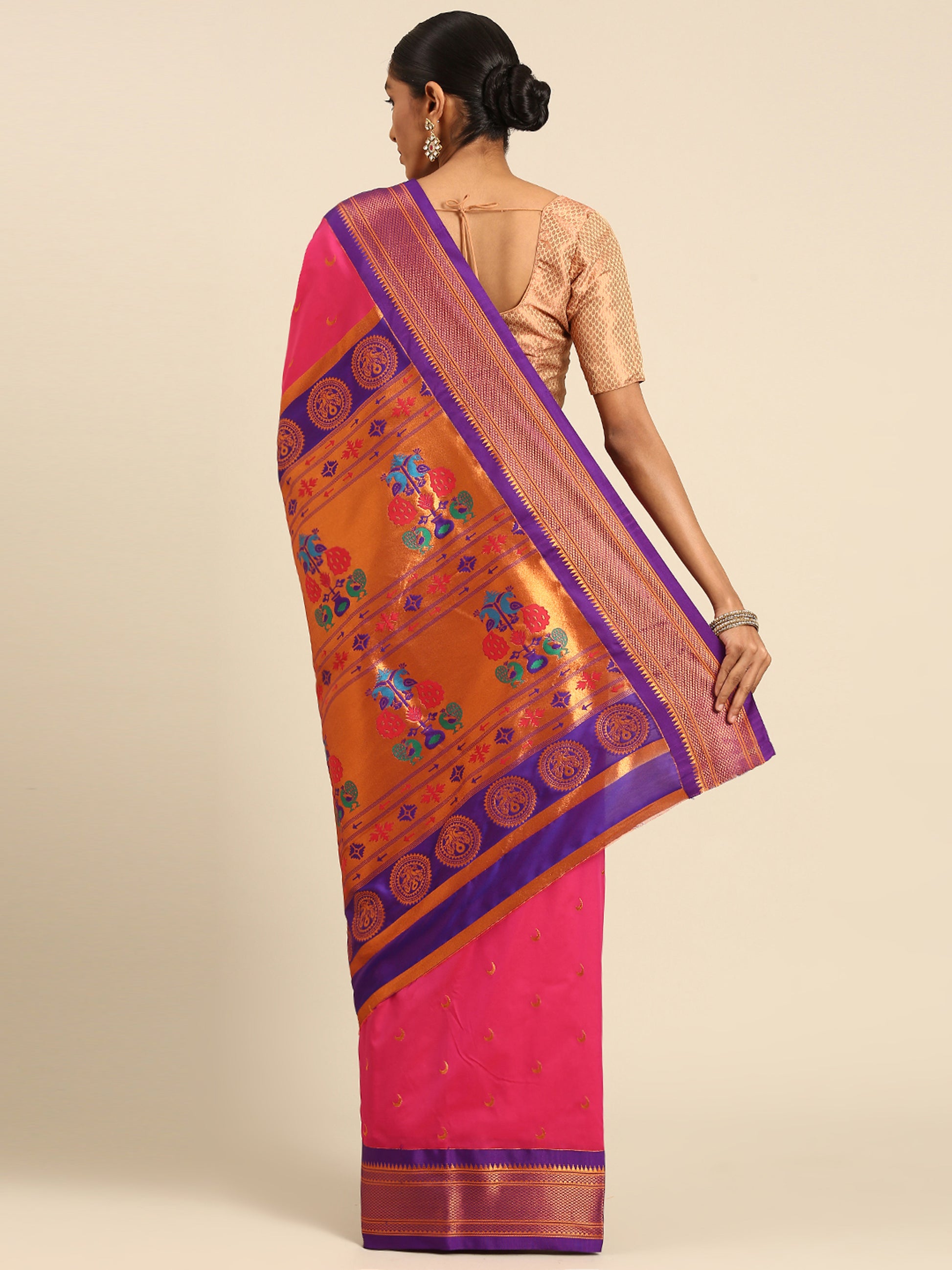 Chandrkala Hot Pink & Violet Soft Silk Chandrakor Paithani Saree