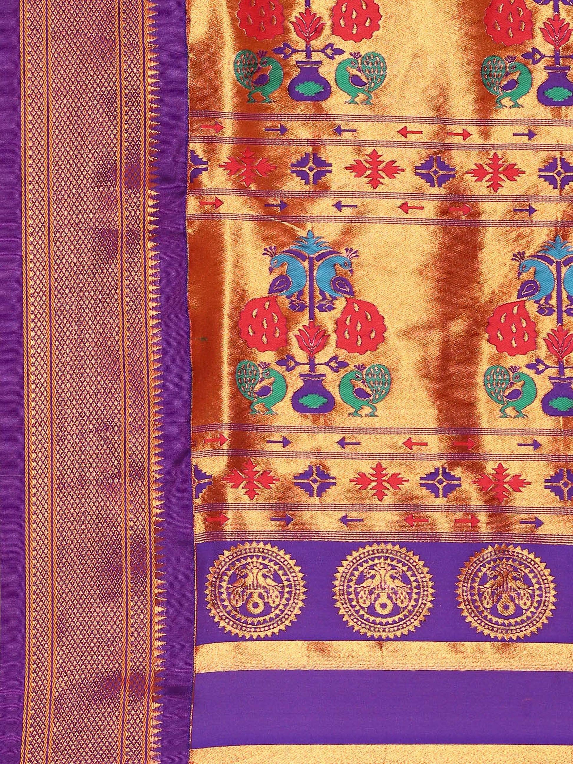 - Pallu Work Type: Copper Zari Woven Peacock Motifs