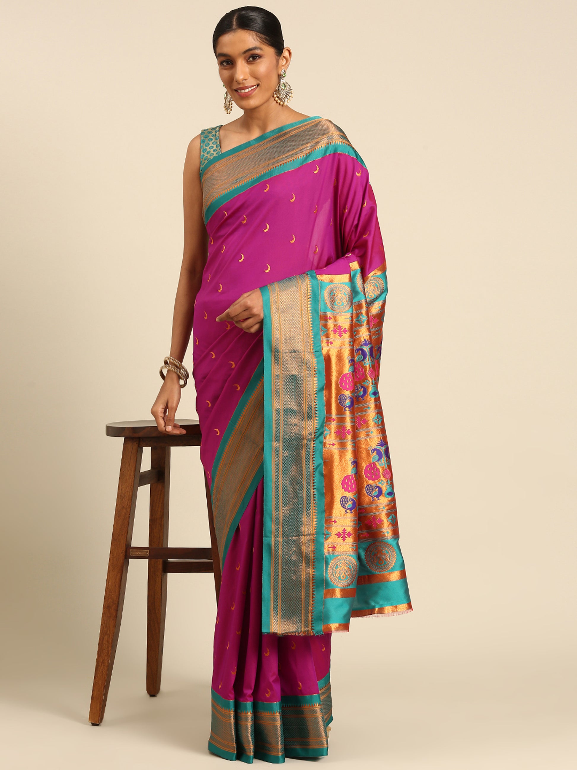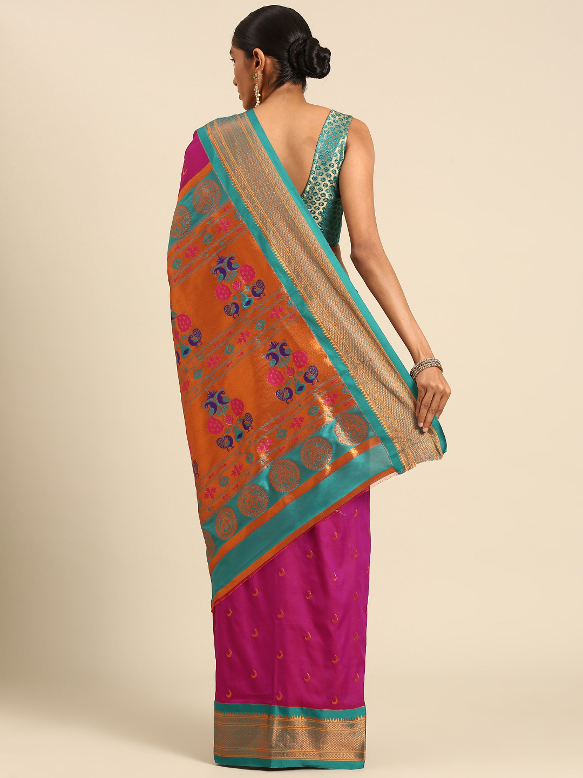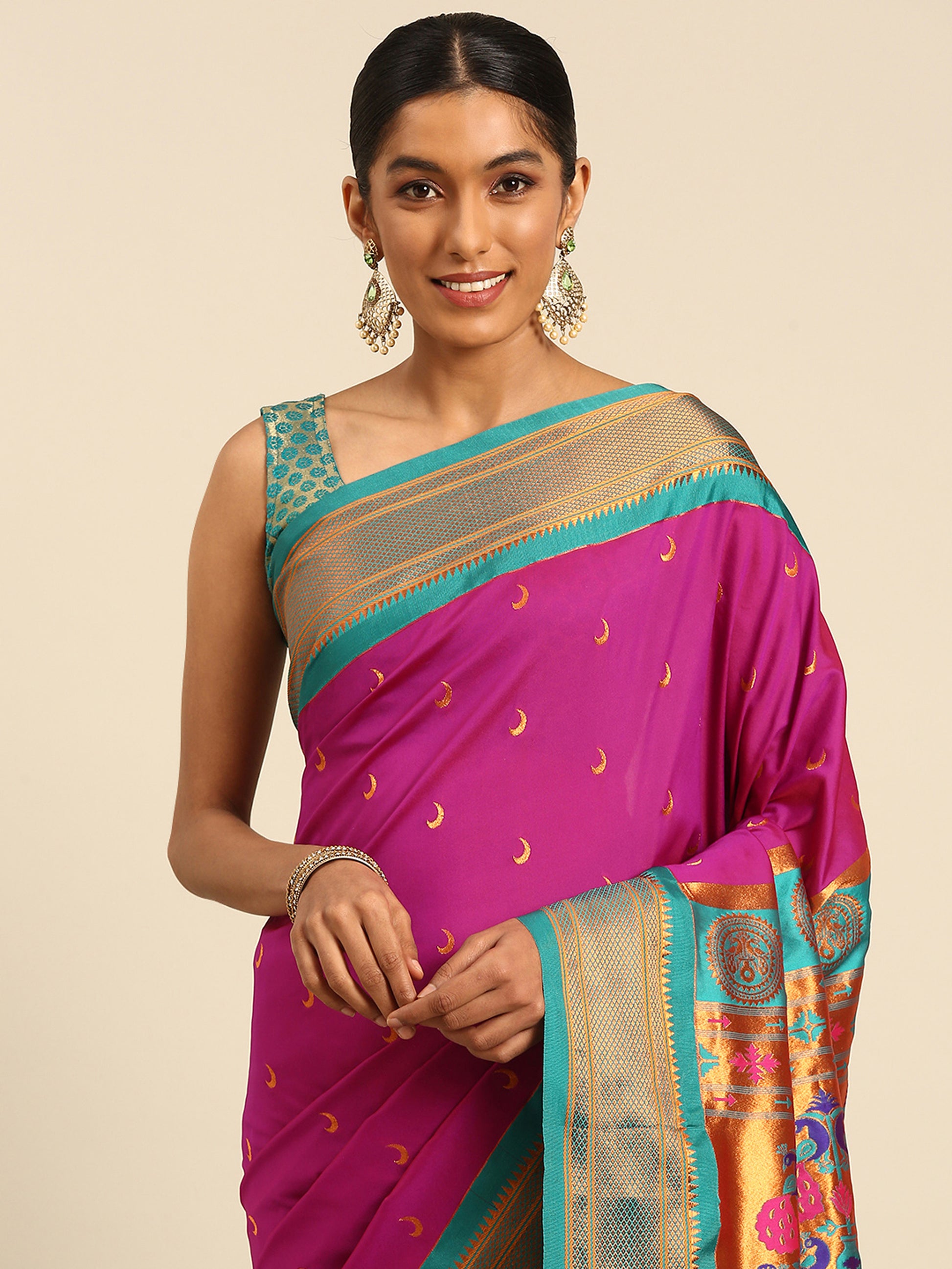 Chandrkala Magenta & Rama Soft Silk Chandrakor Paithani Saree