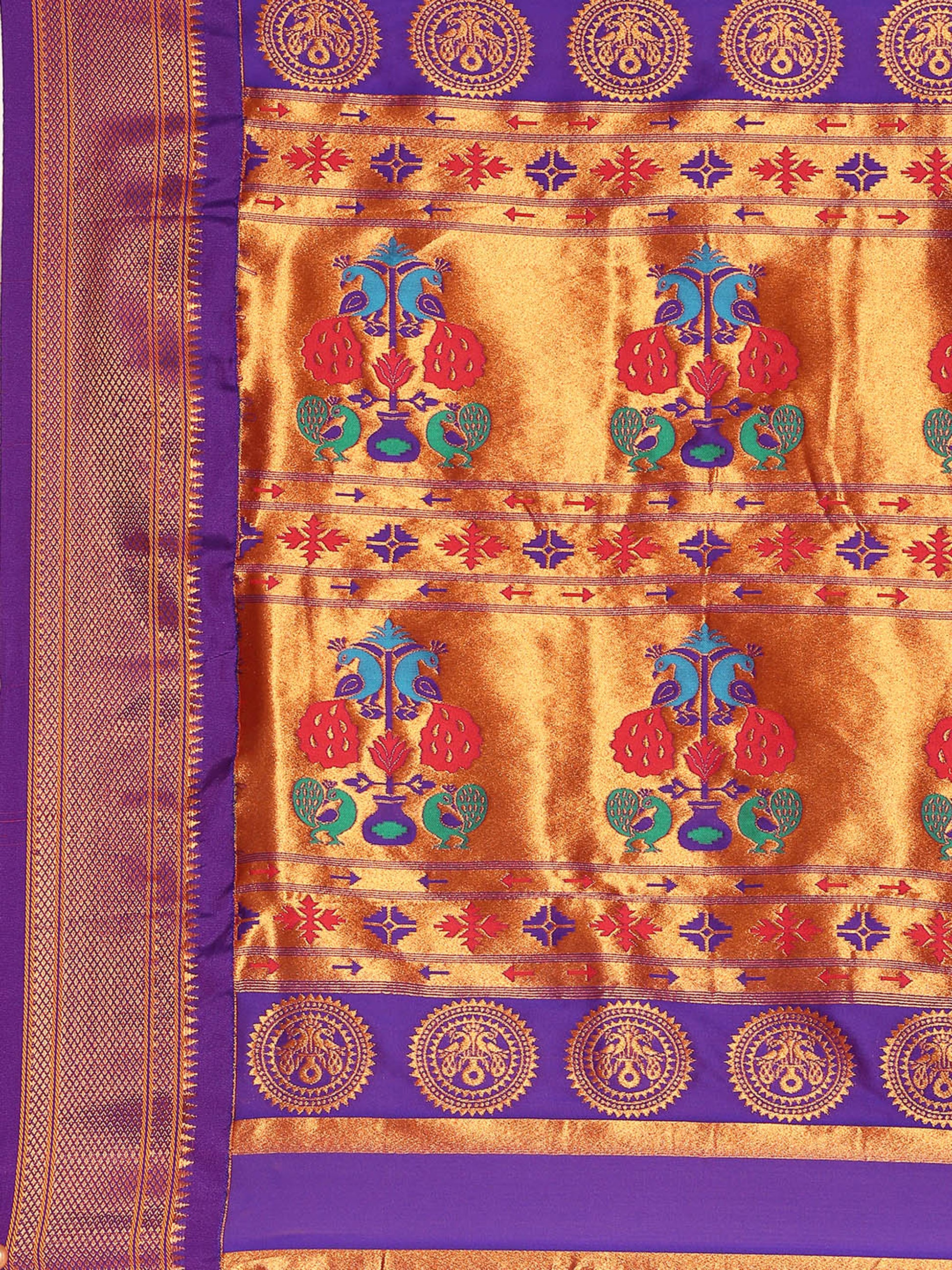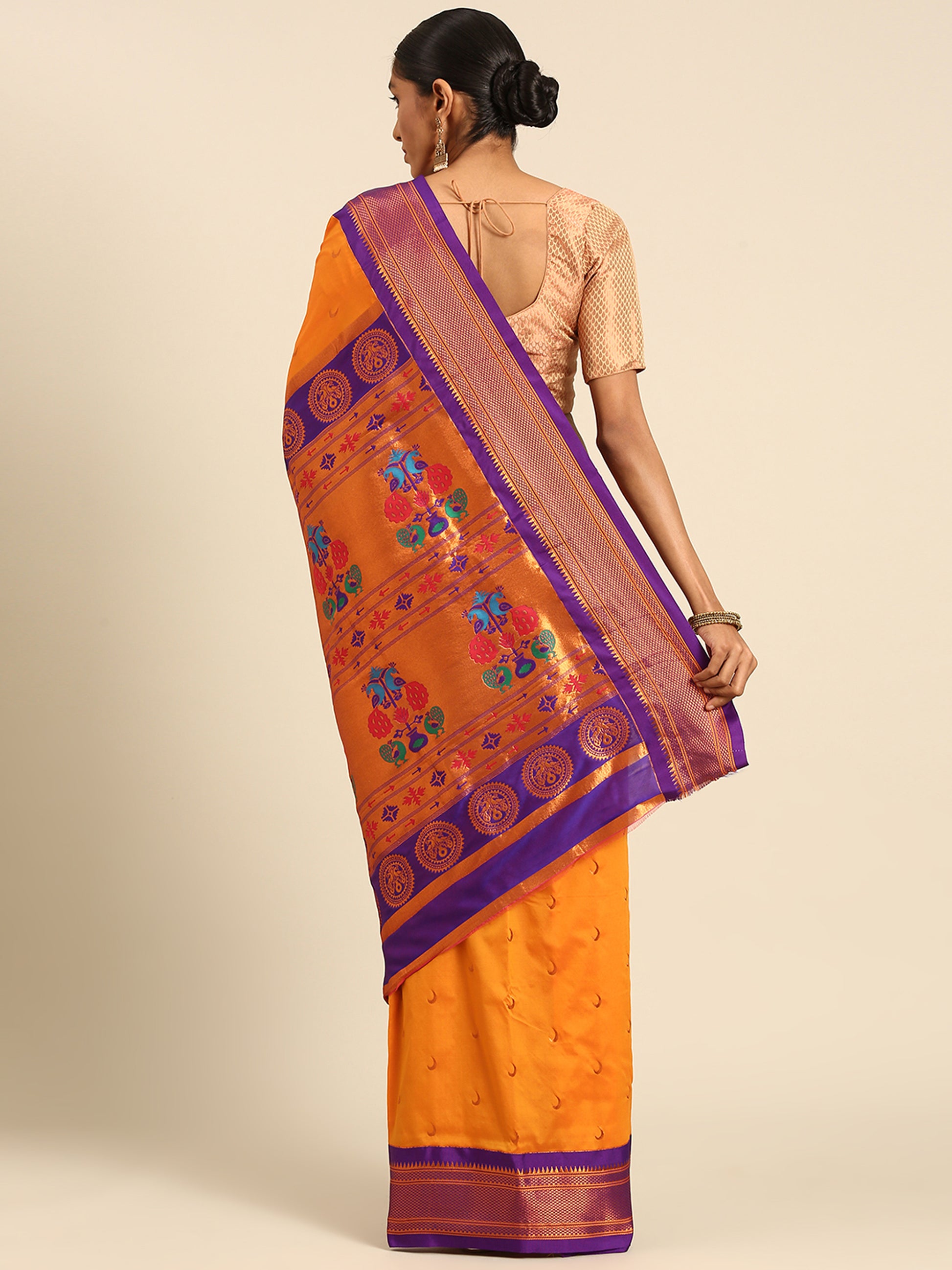 Chandrkala Orange & Violet Soft Silk Chandrakor Paithani Saree