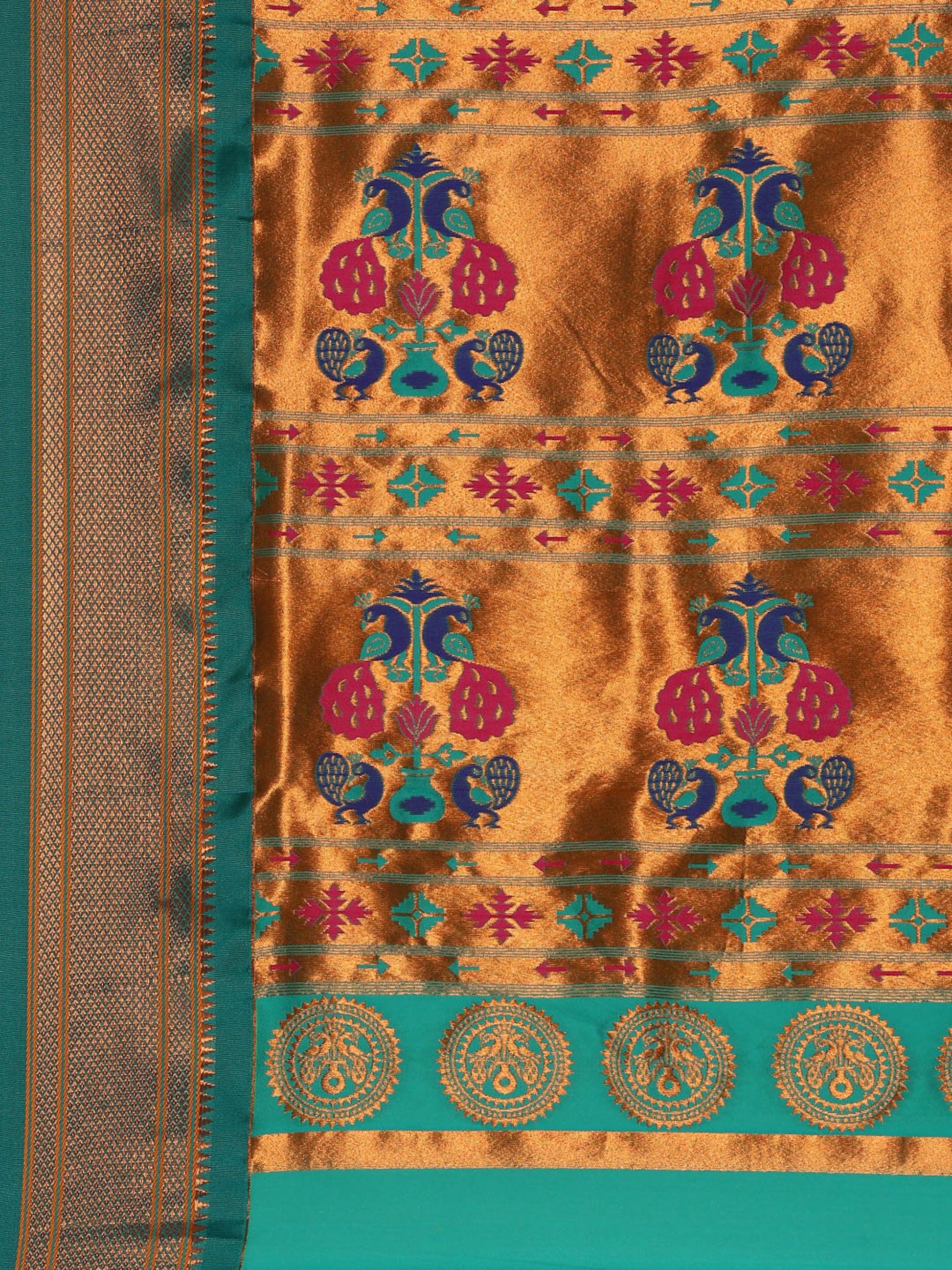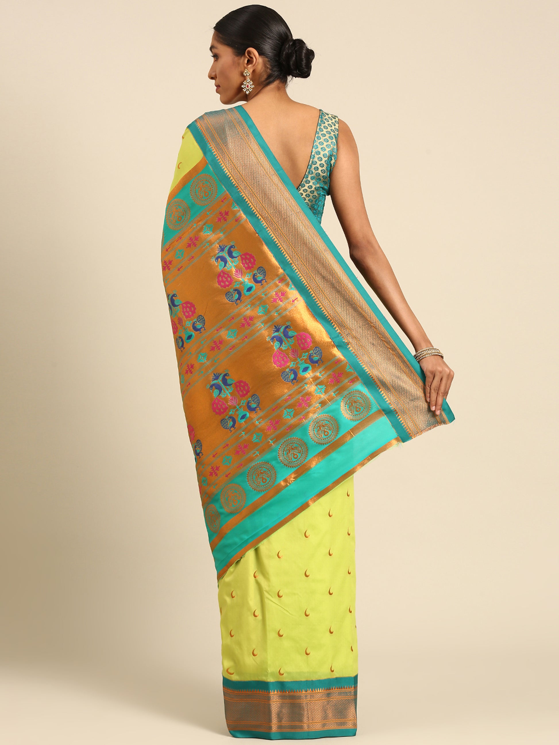 Chandrkala Parrot Green & Rama Soft Silk Chandrakor Paithani Saree
