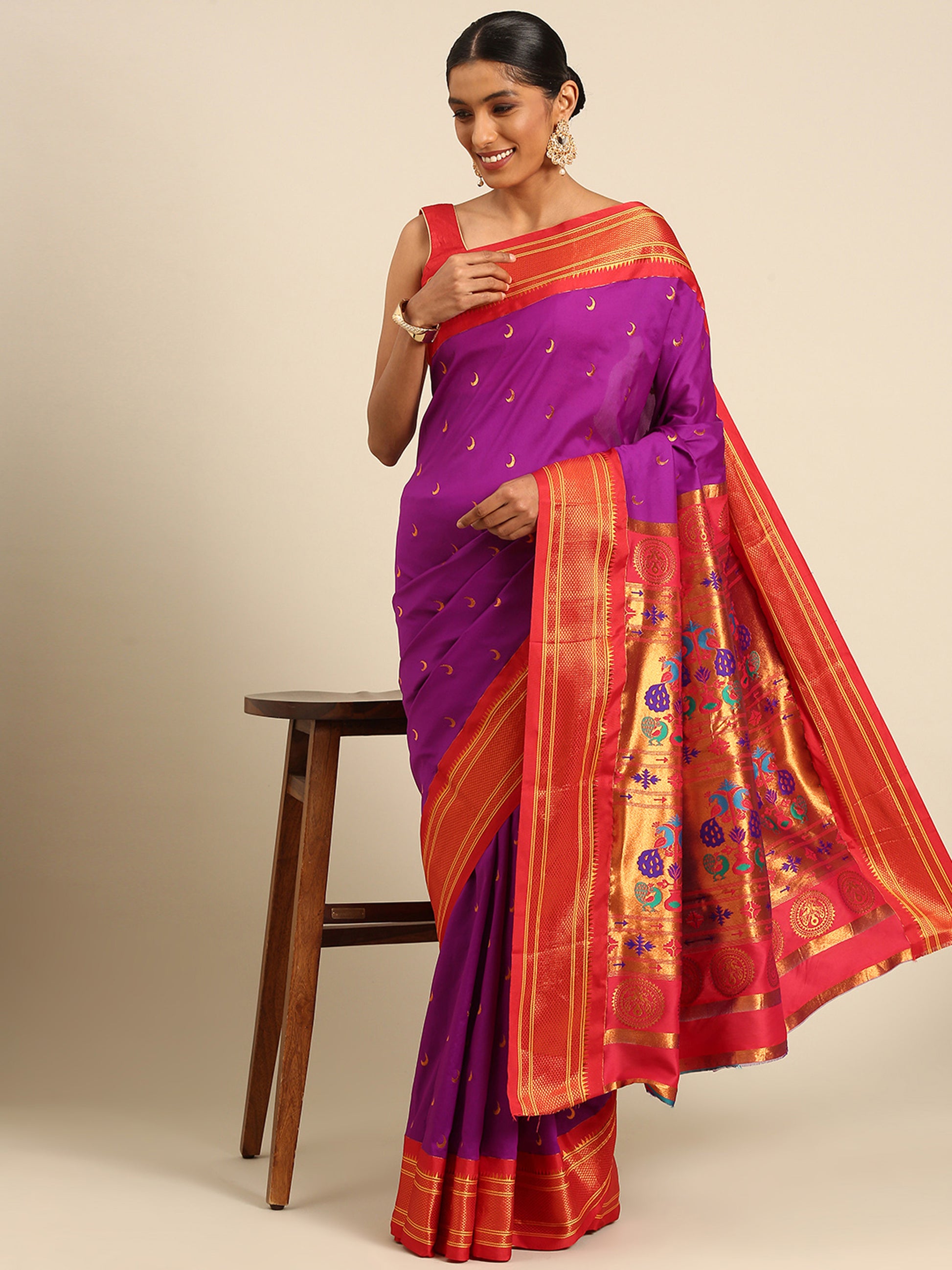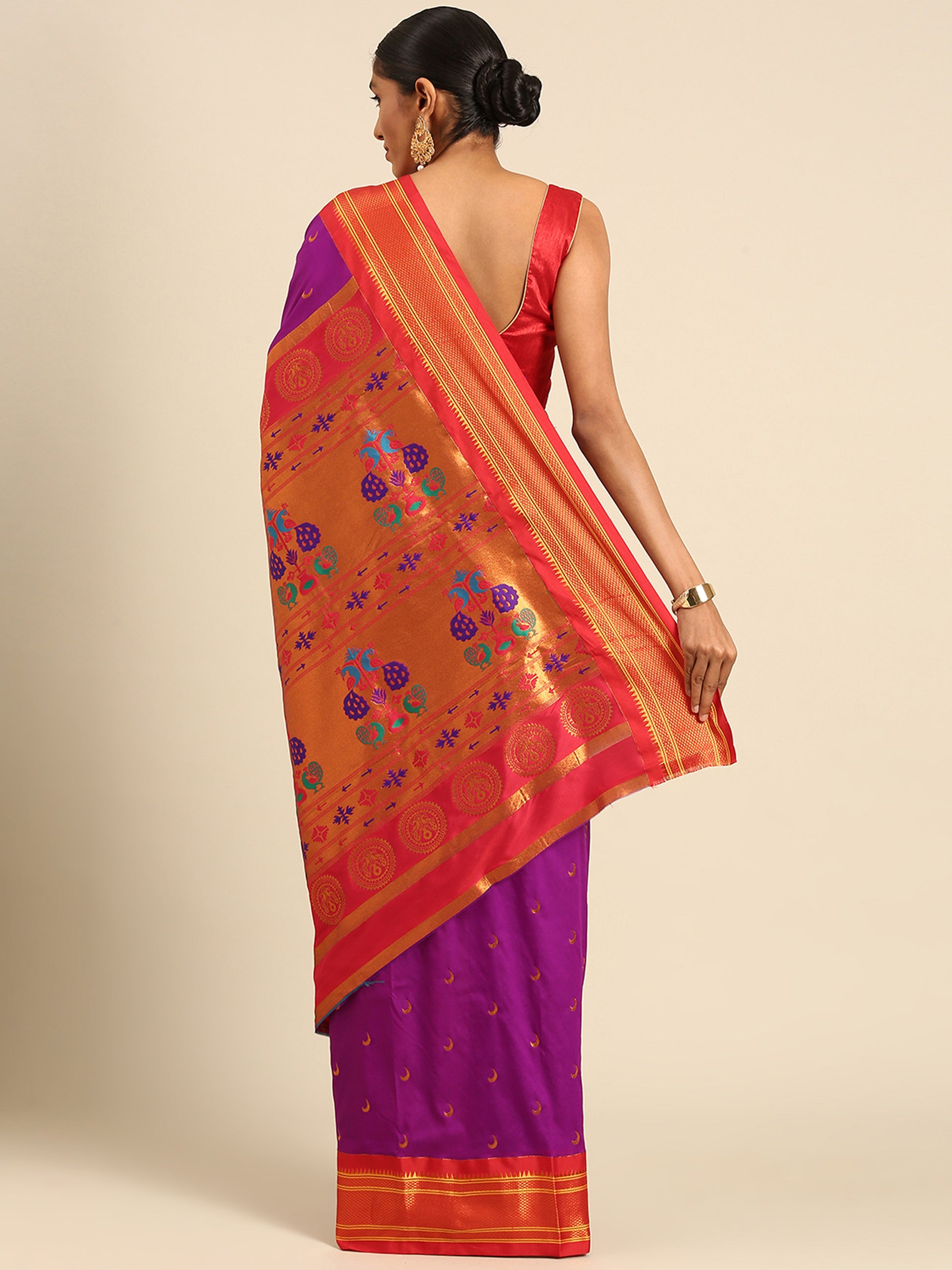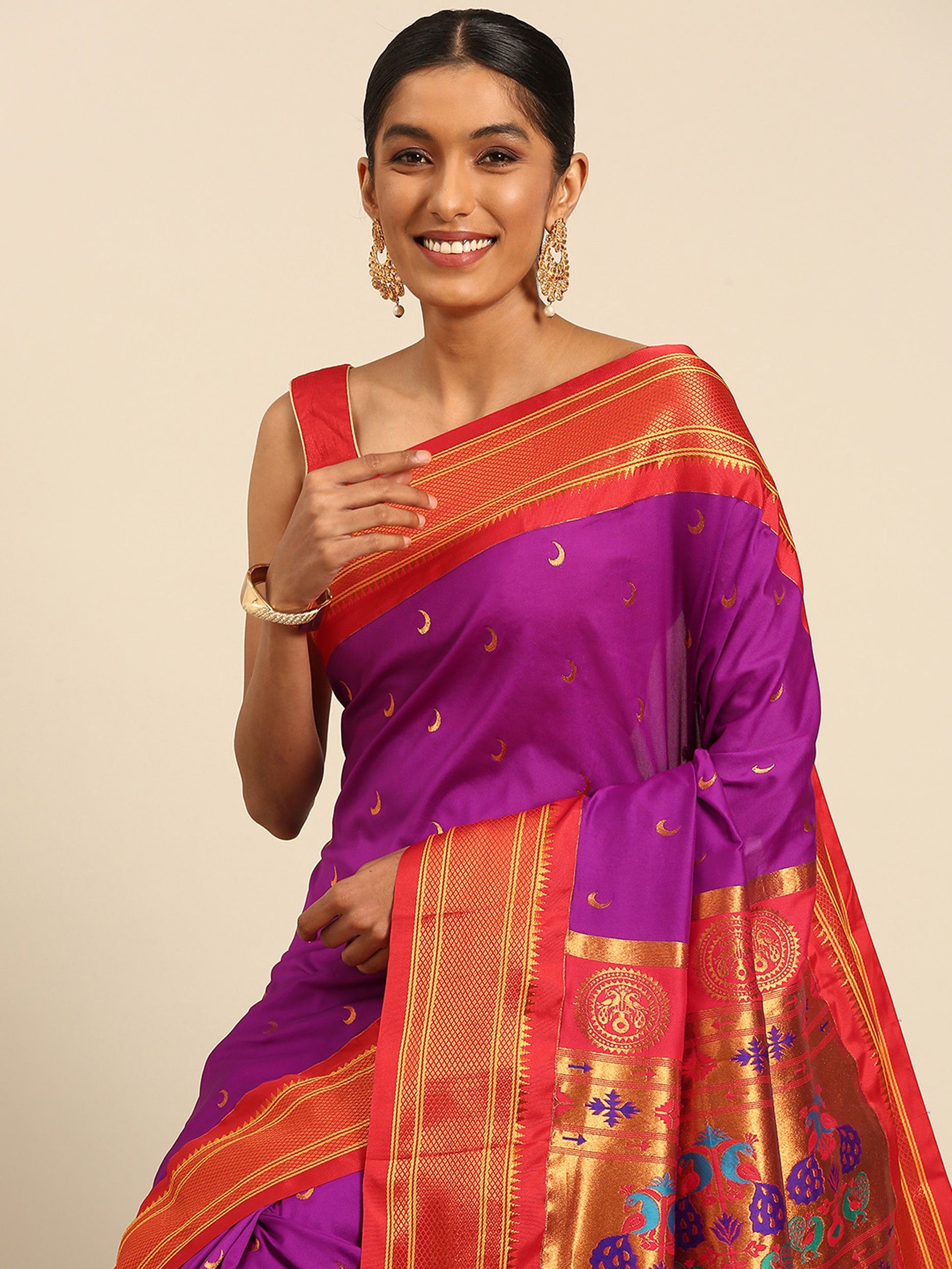 Chandrkala Purple & Red Soft Silk Chandrakor Paithani Saree