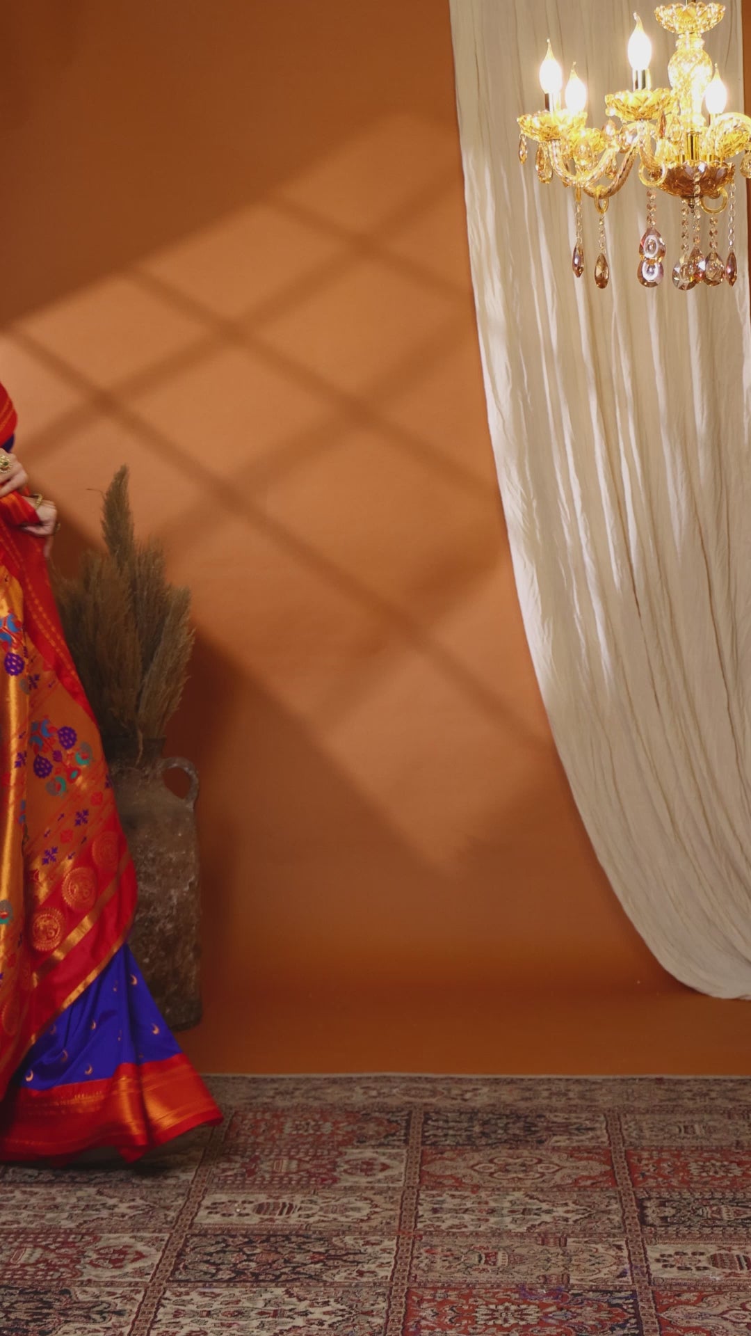 Chandrkala Royal Blue & Red Soft Silk Chandrakor Paithani Saree