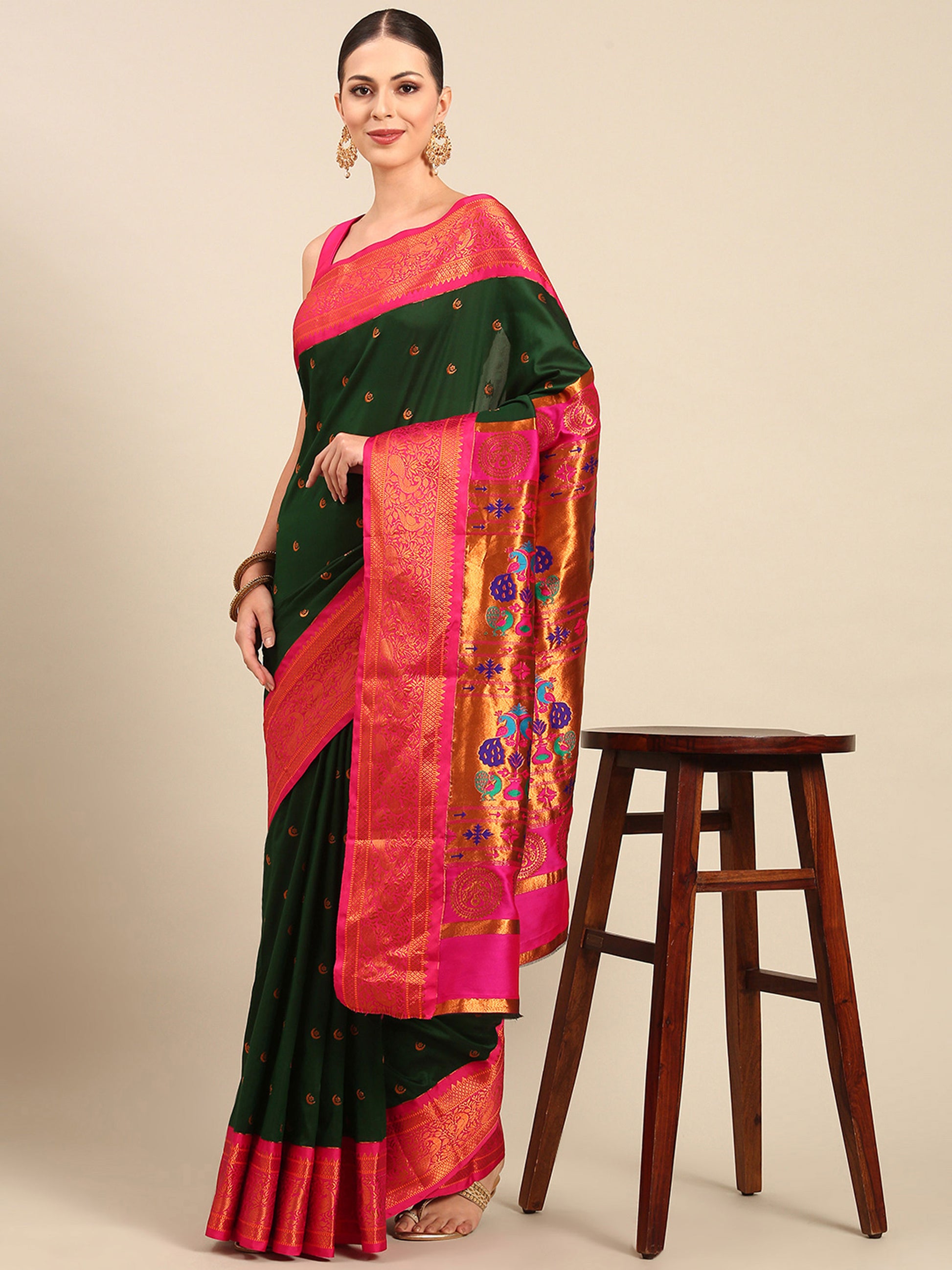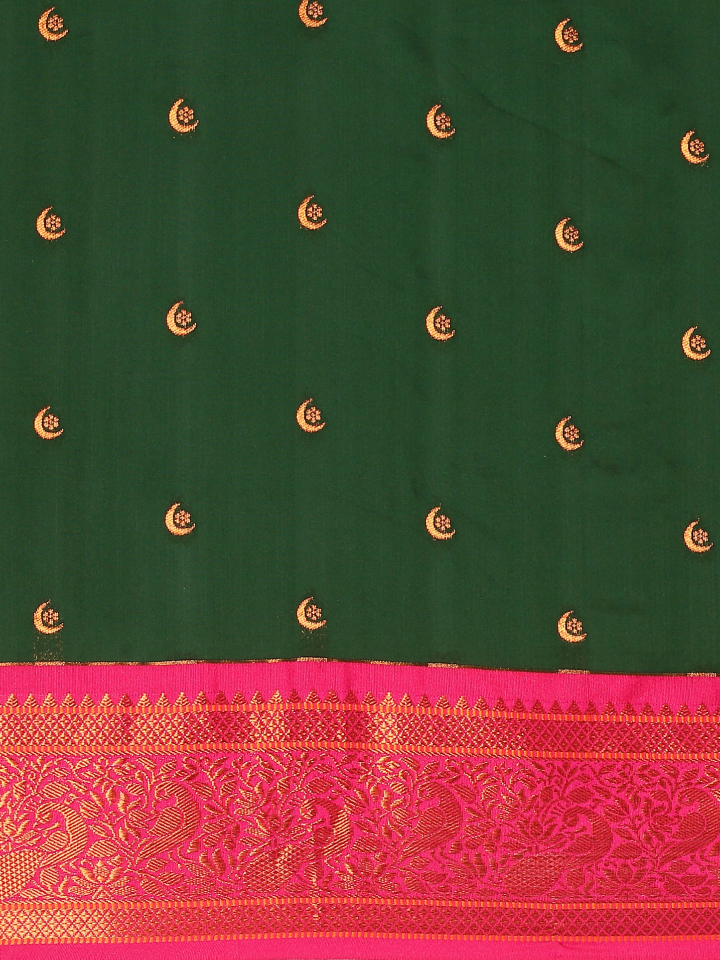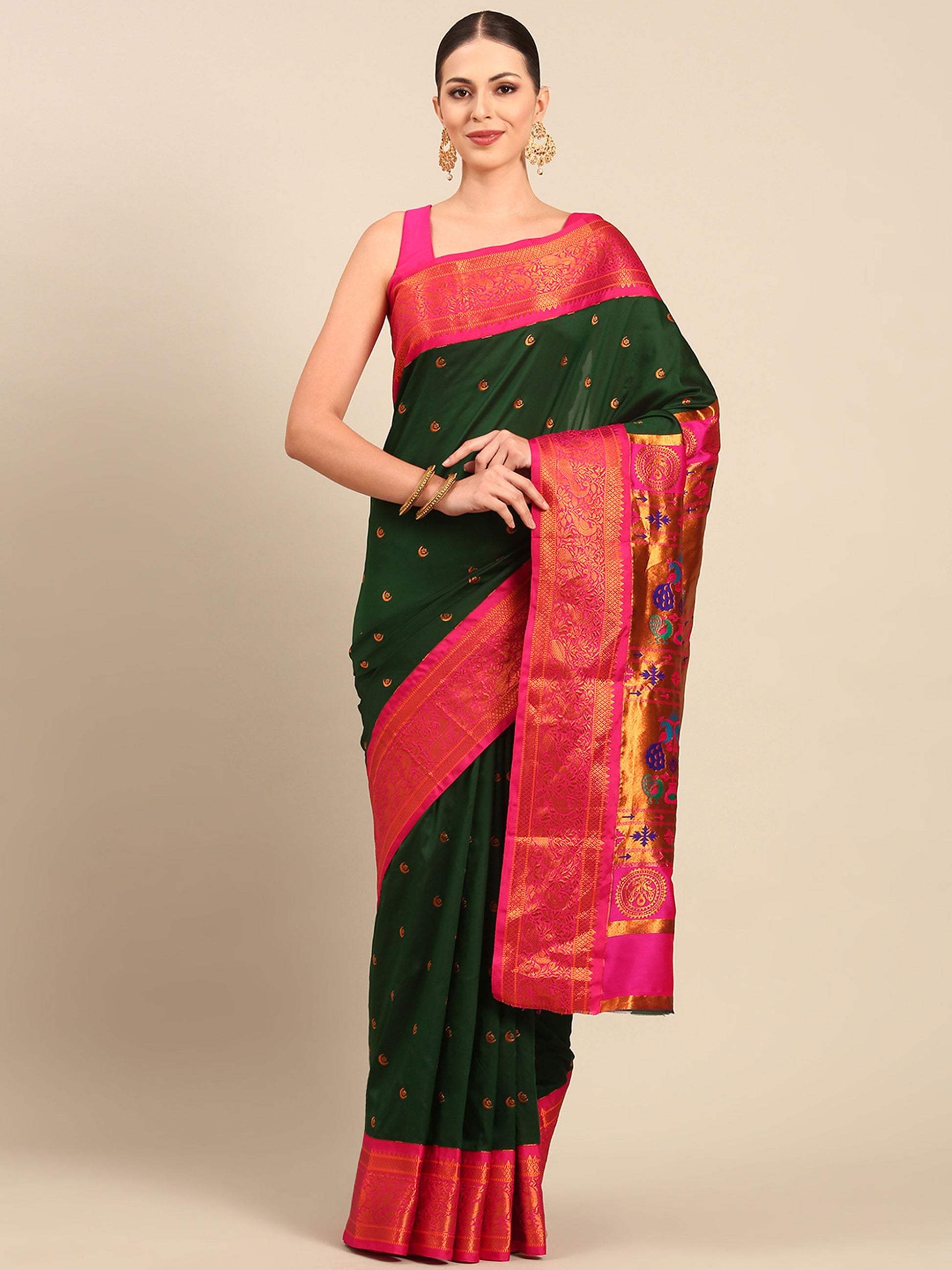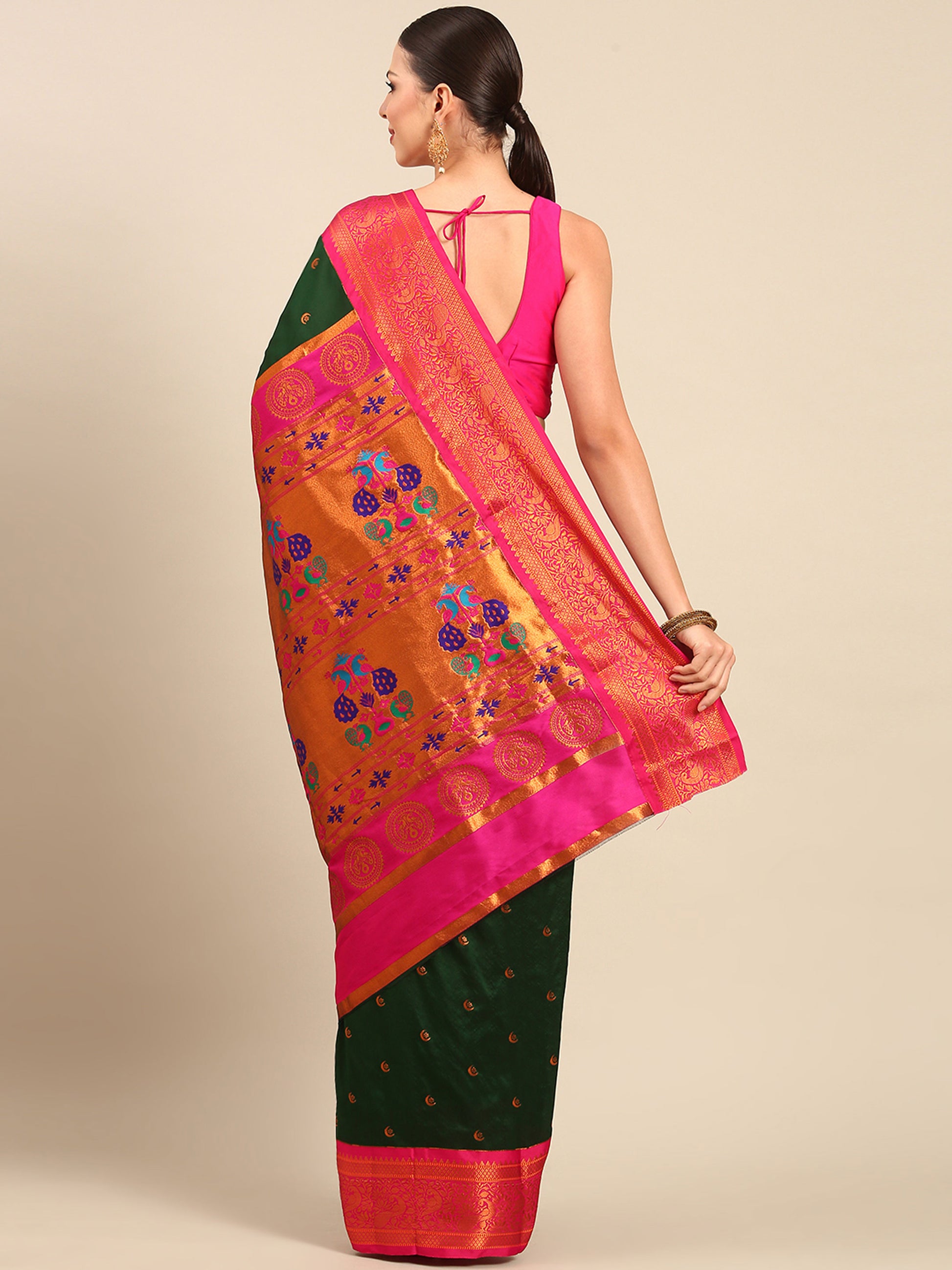 Chandrtara Bottle Green & Pink Soft Silk Chandrakor Paithani Saree