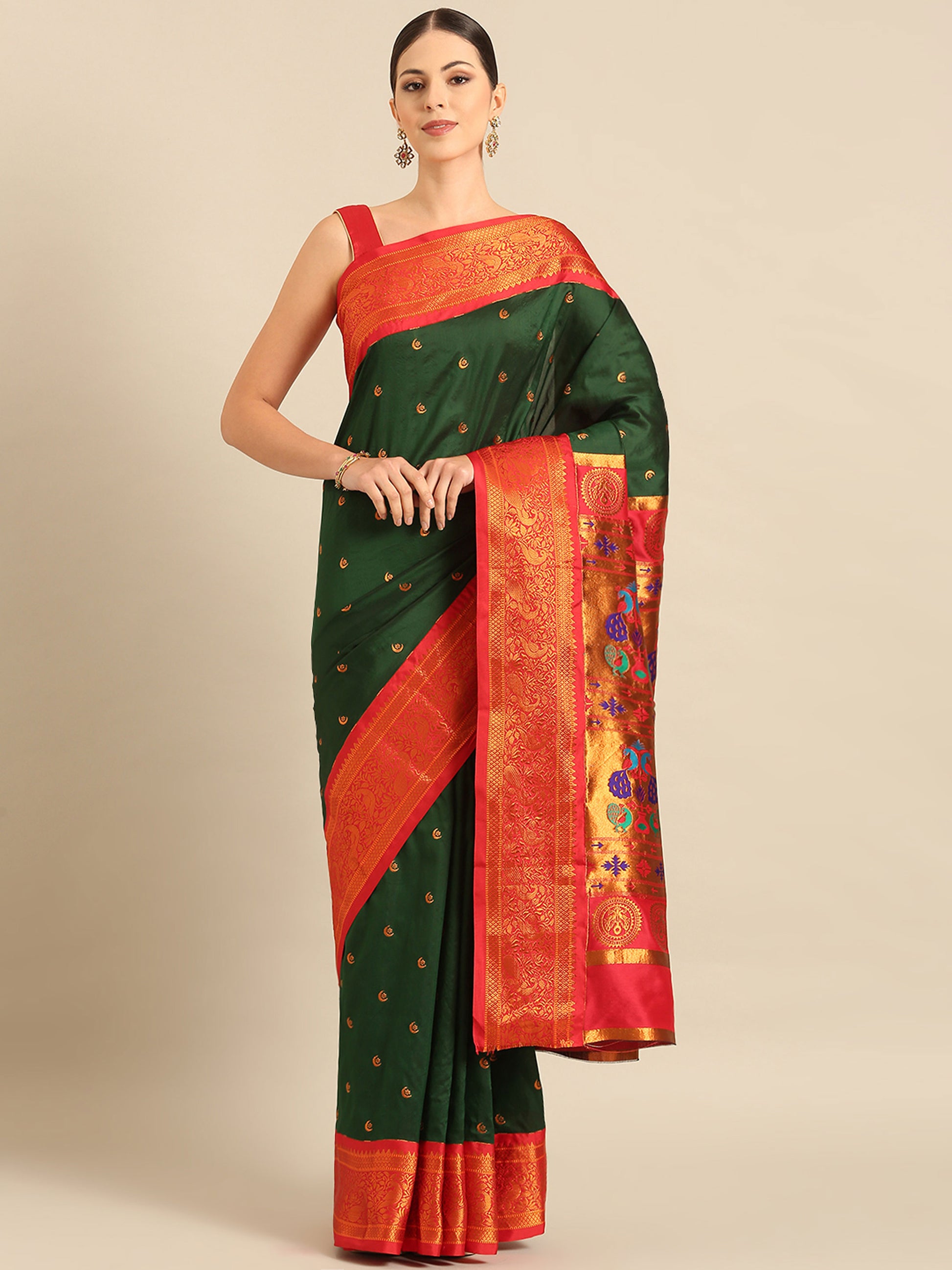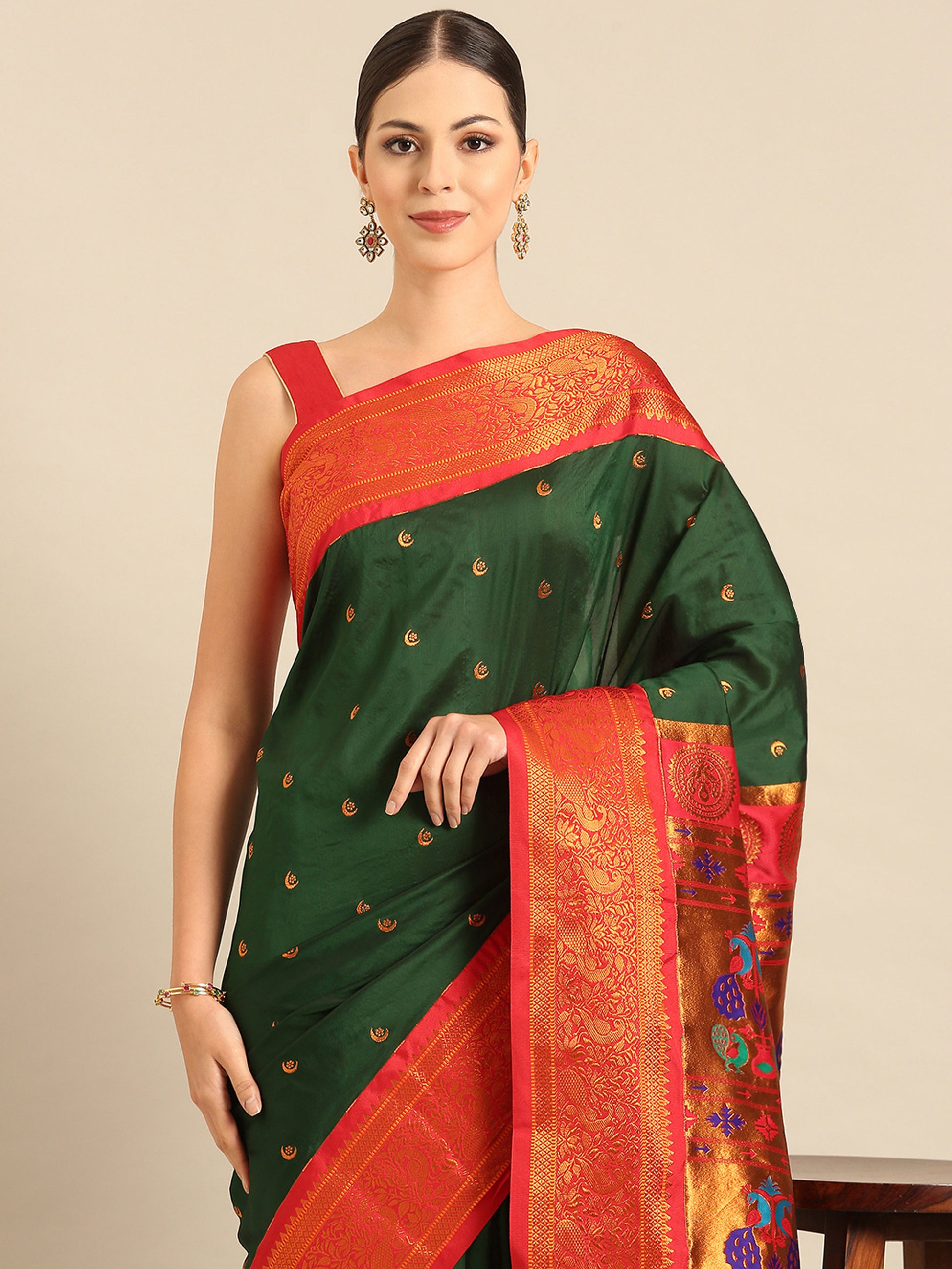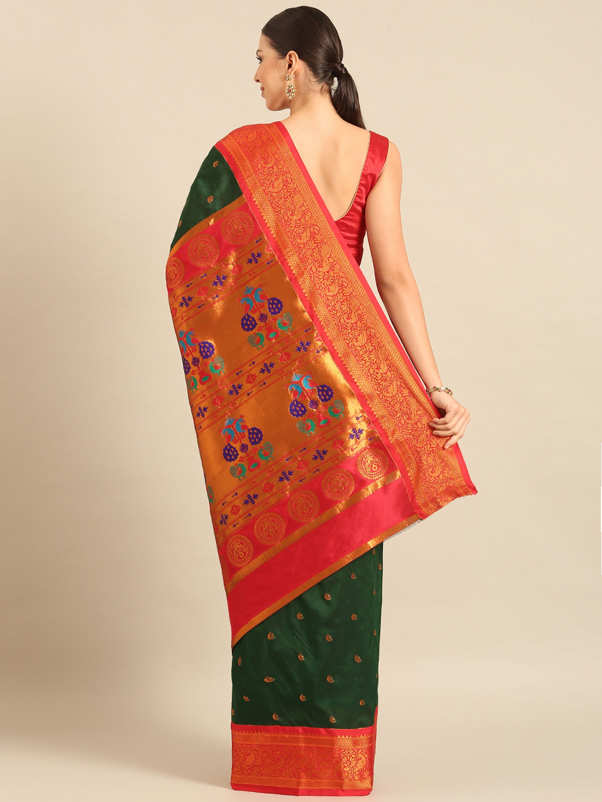 Chandrtara Bottle Green & Red Soft Silk Chandrakor Paithani Saree