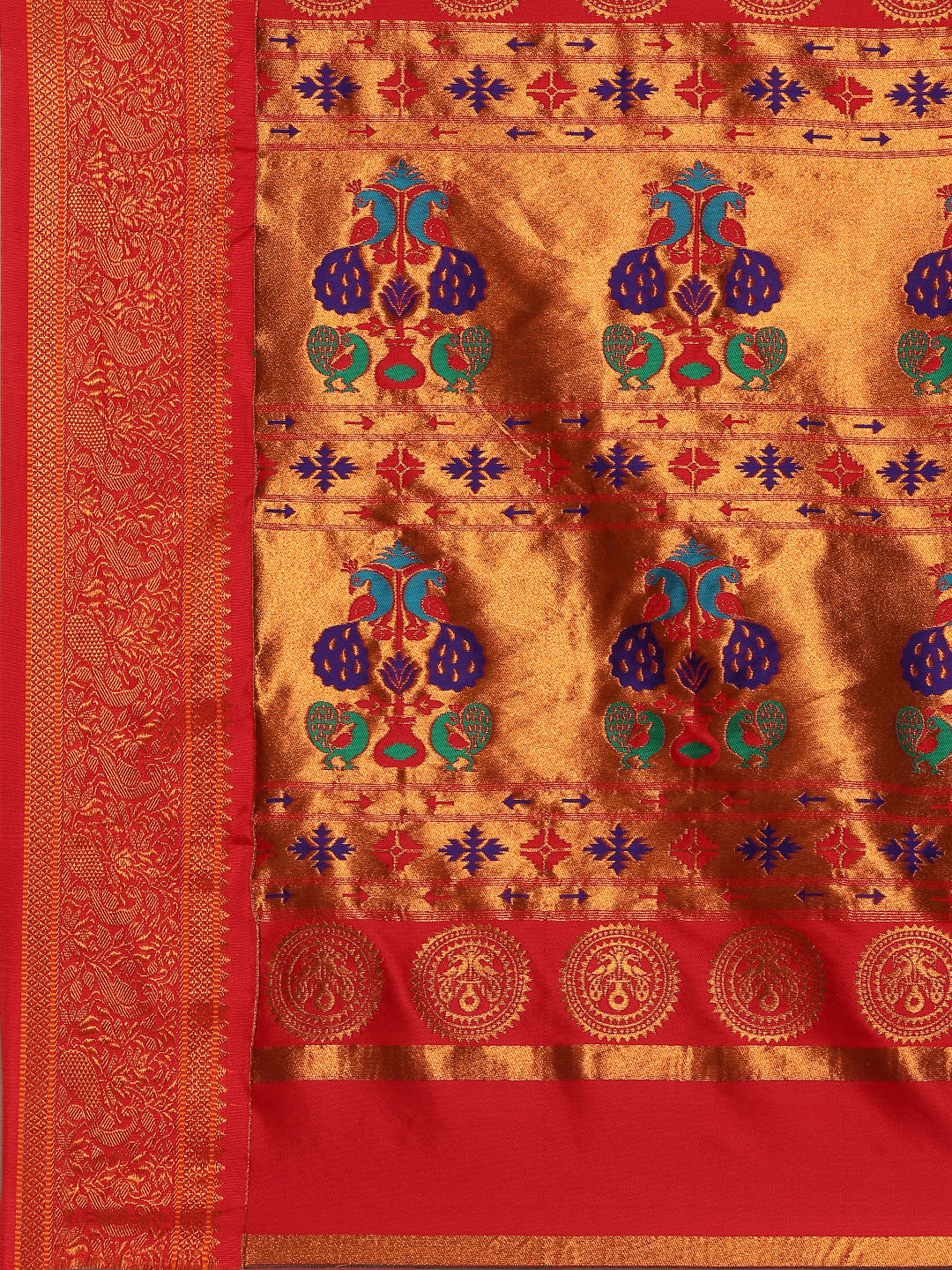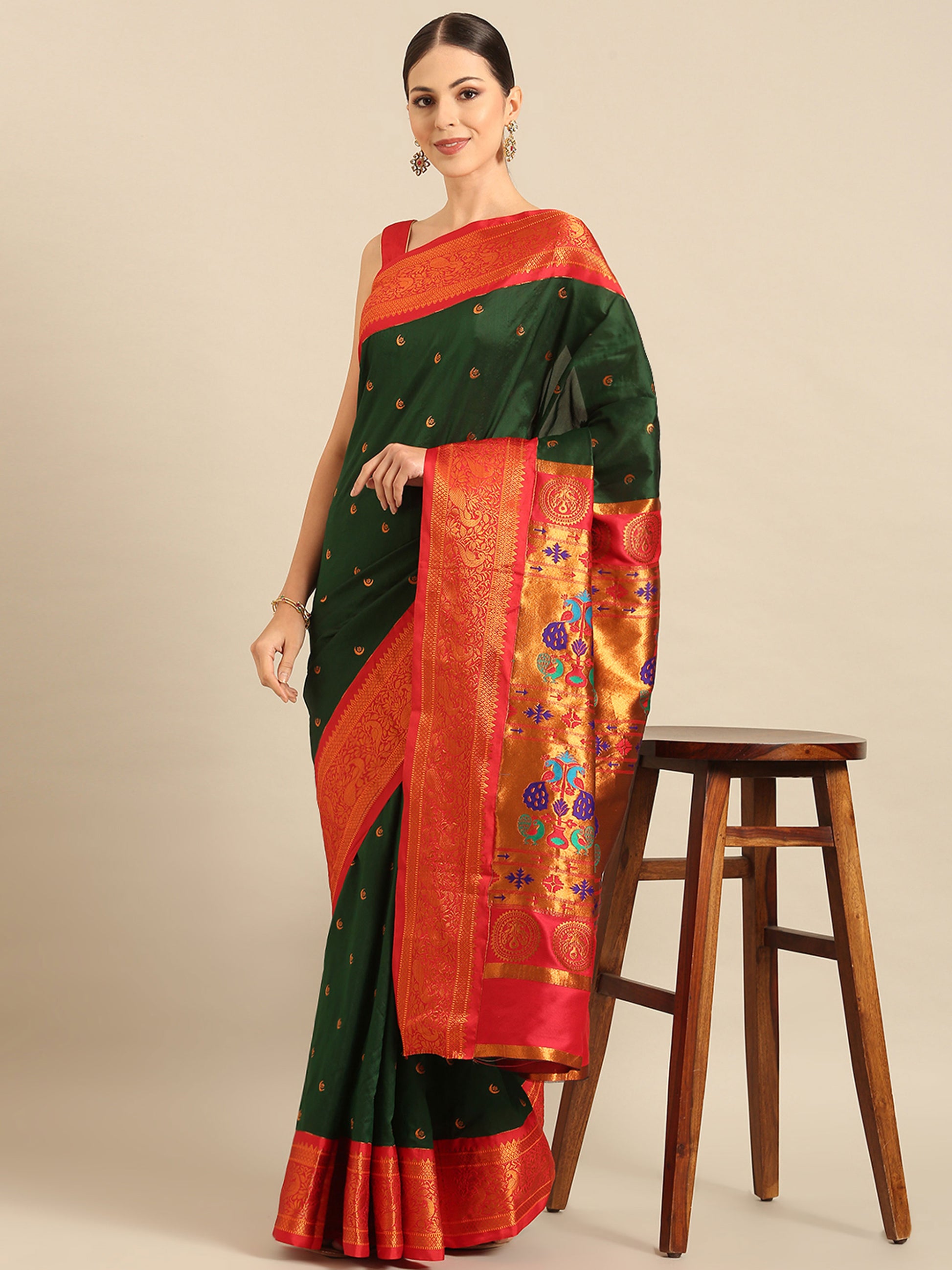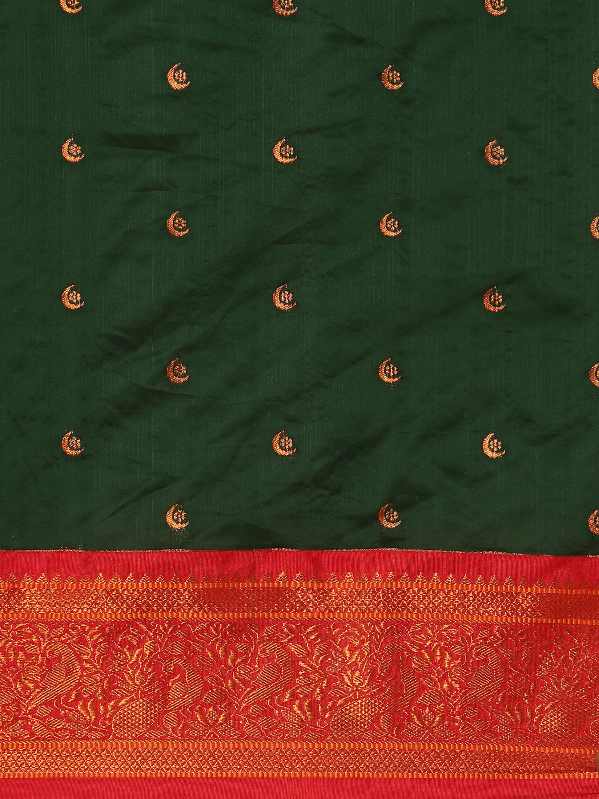 Chandrtara Bottle Green & Red Soft Silk Chandrakor Paithani Saree