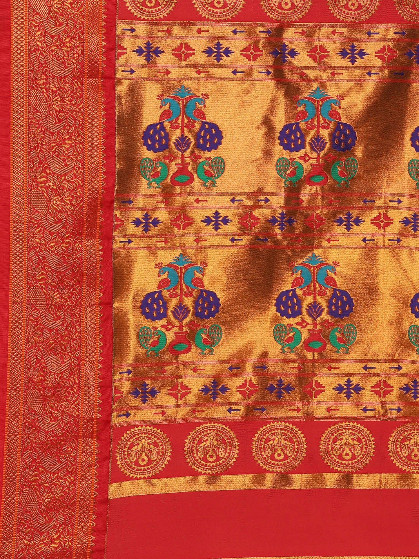 Chandrtara Chintamani & Red Soft Silk Chandrakor Paithani Saree