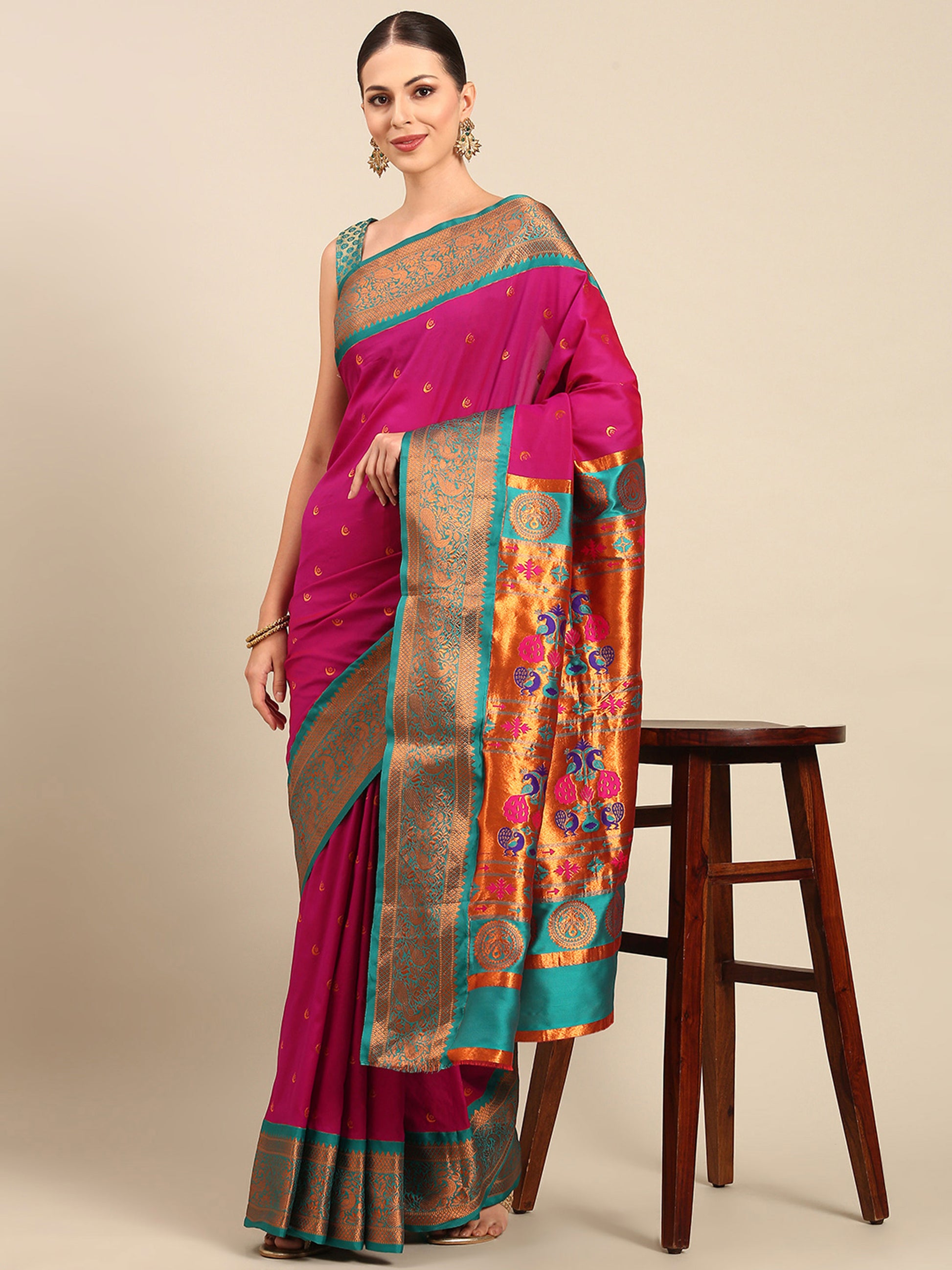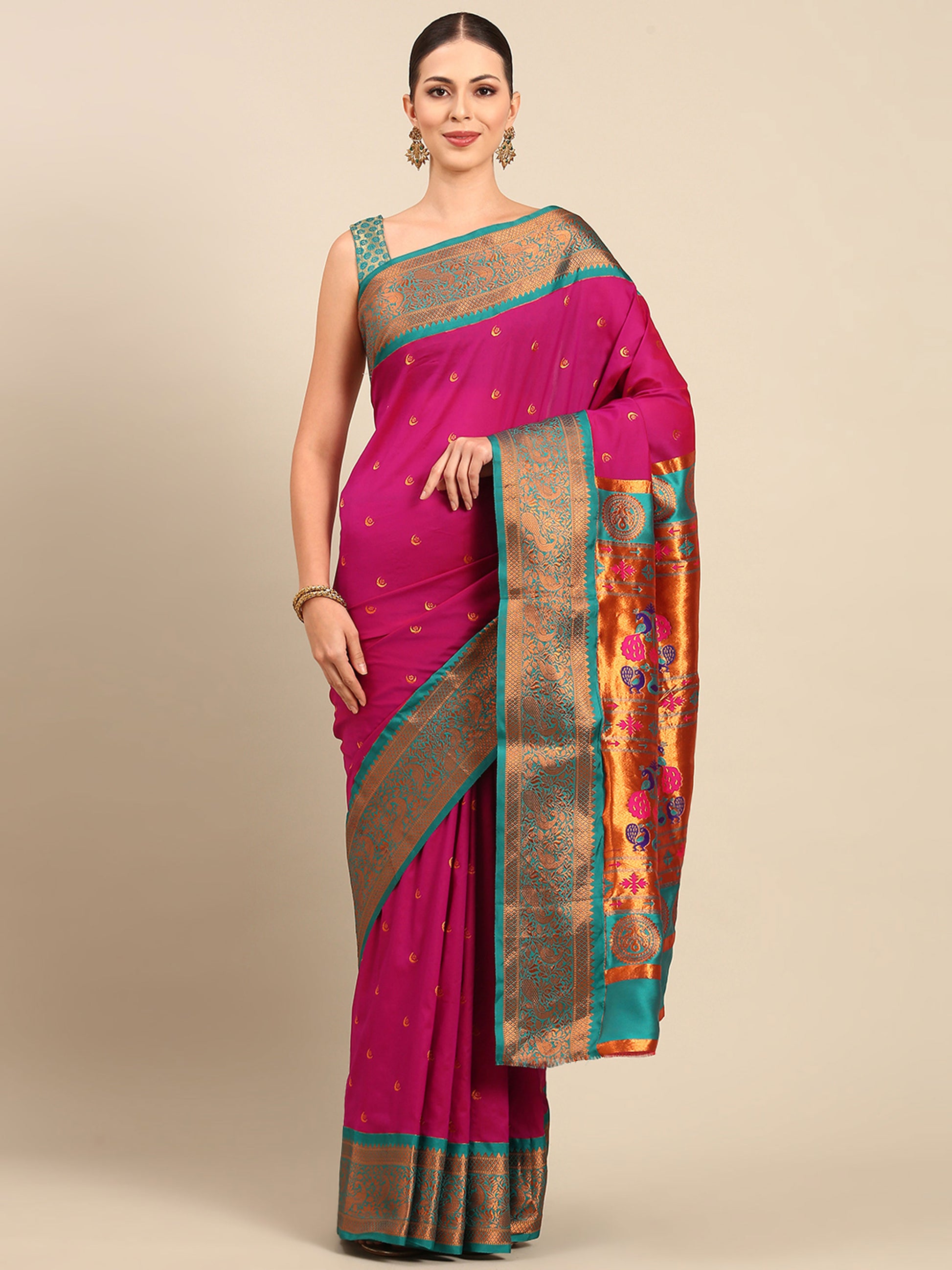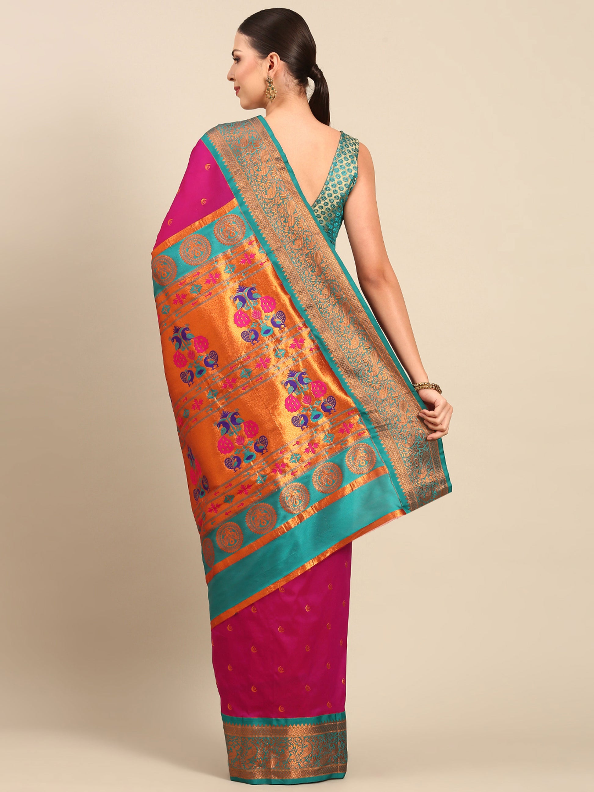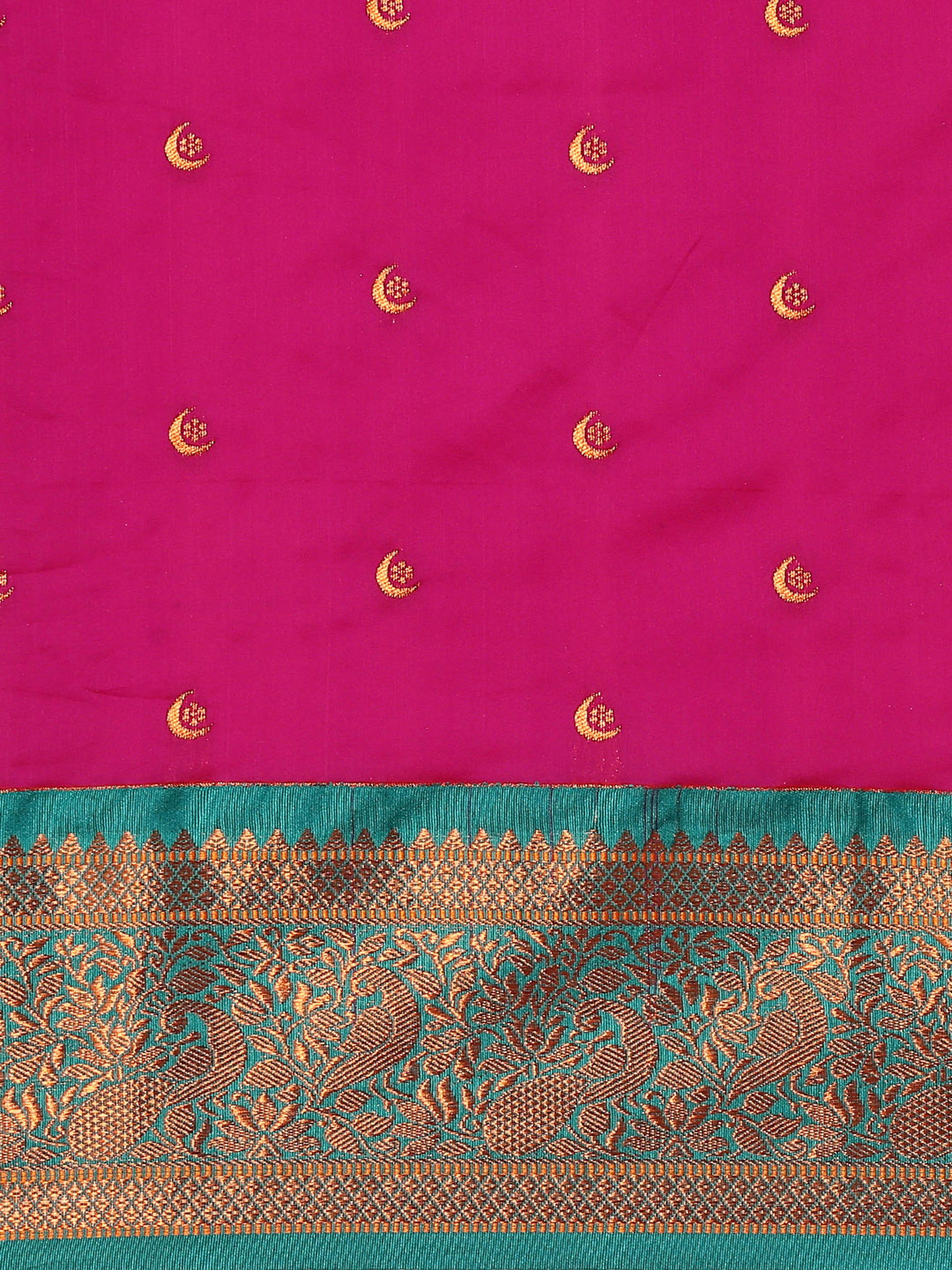 Chandrtara Magenta & Rama Soft Silk Chandrakor Paithani Saree