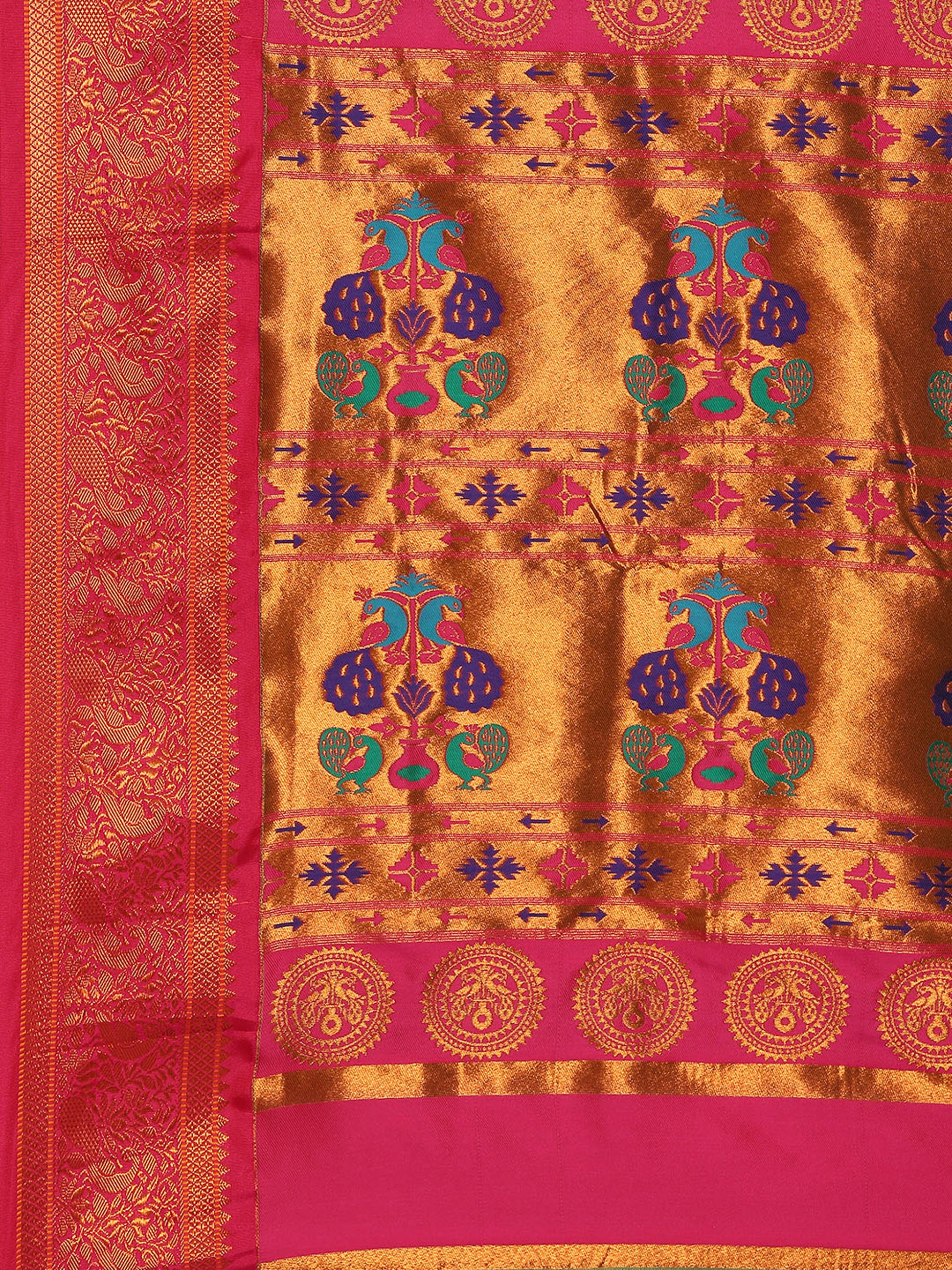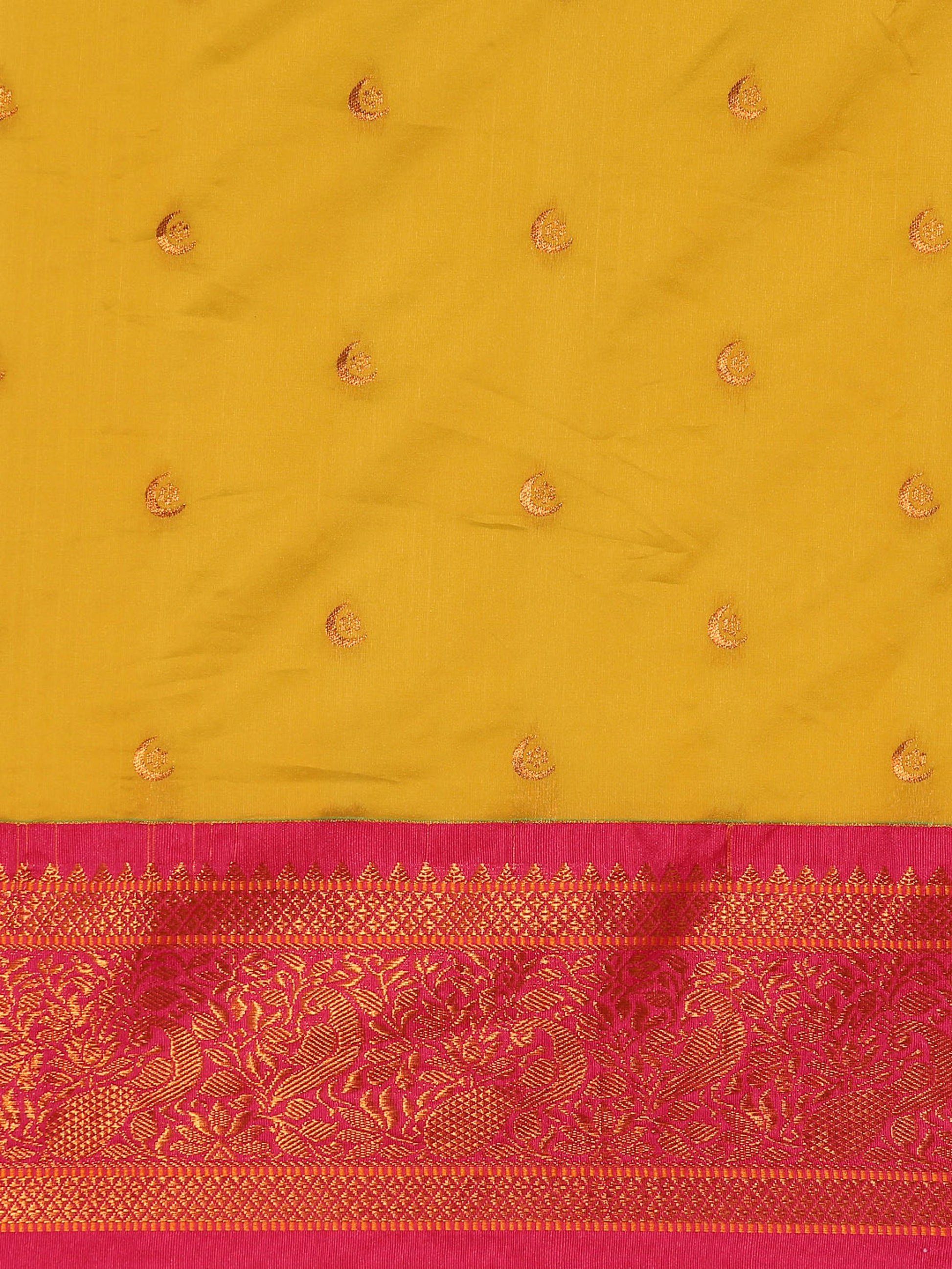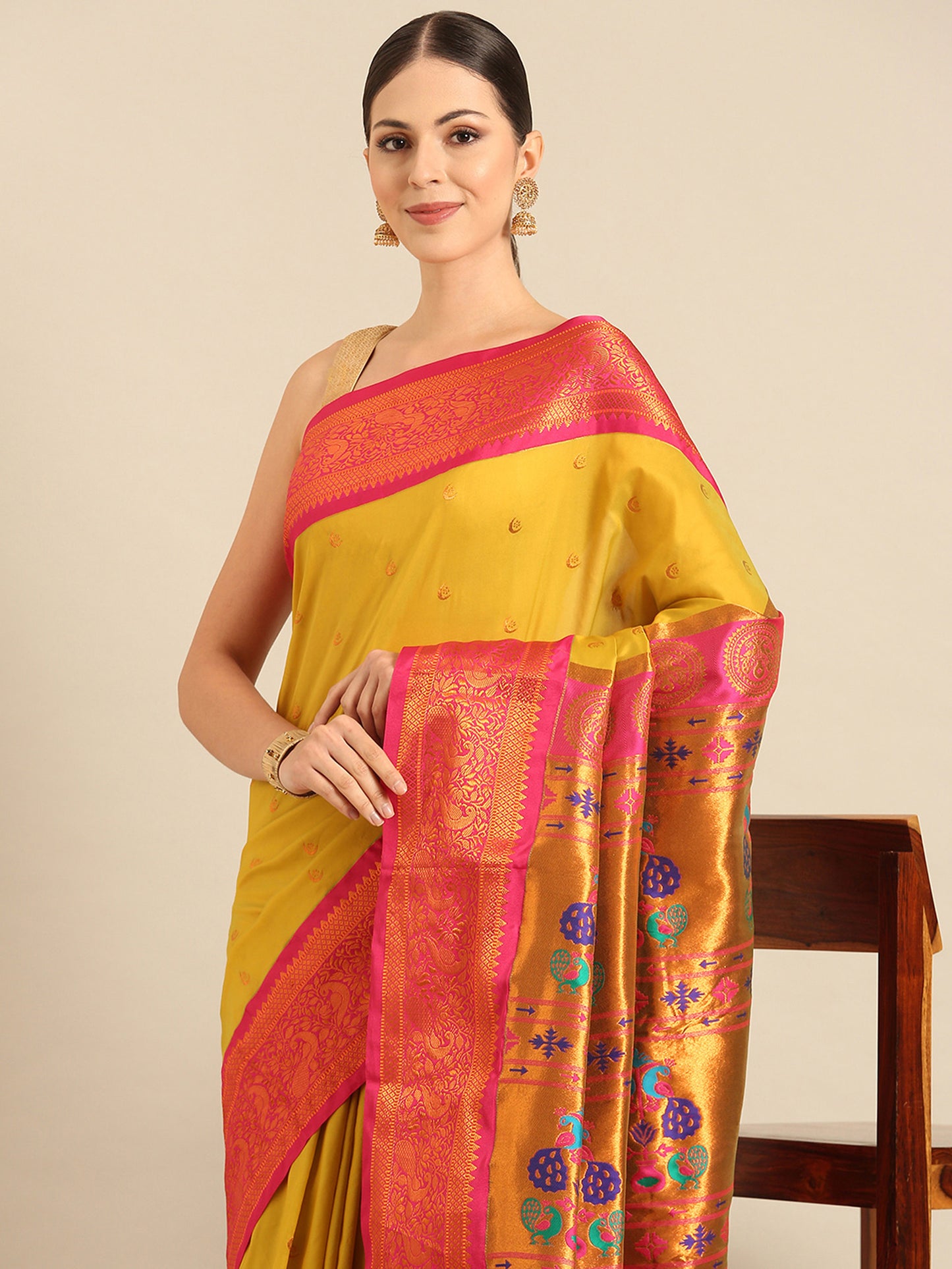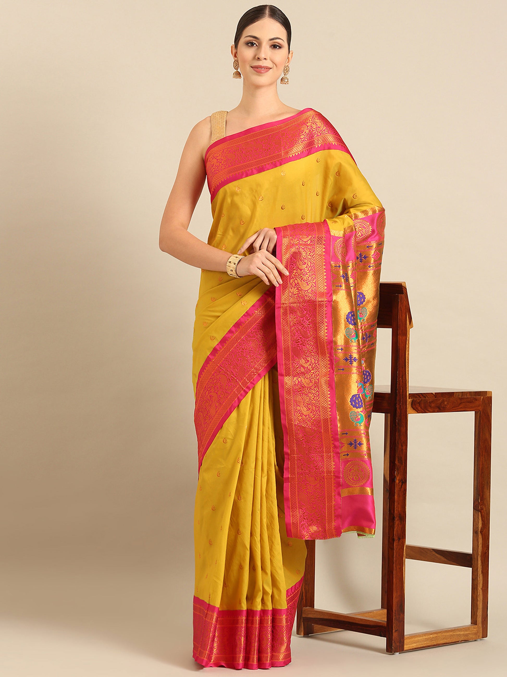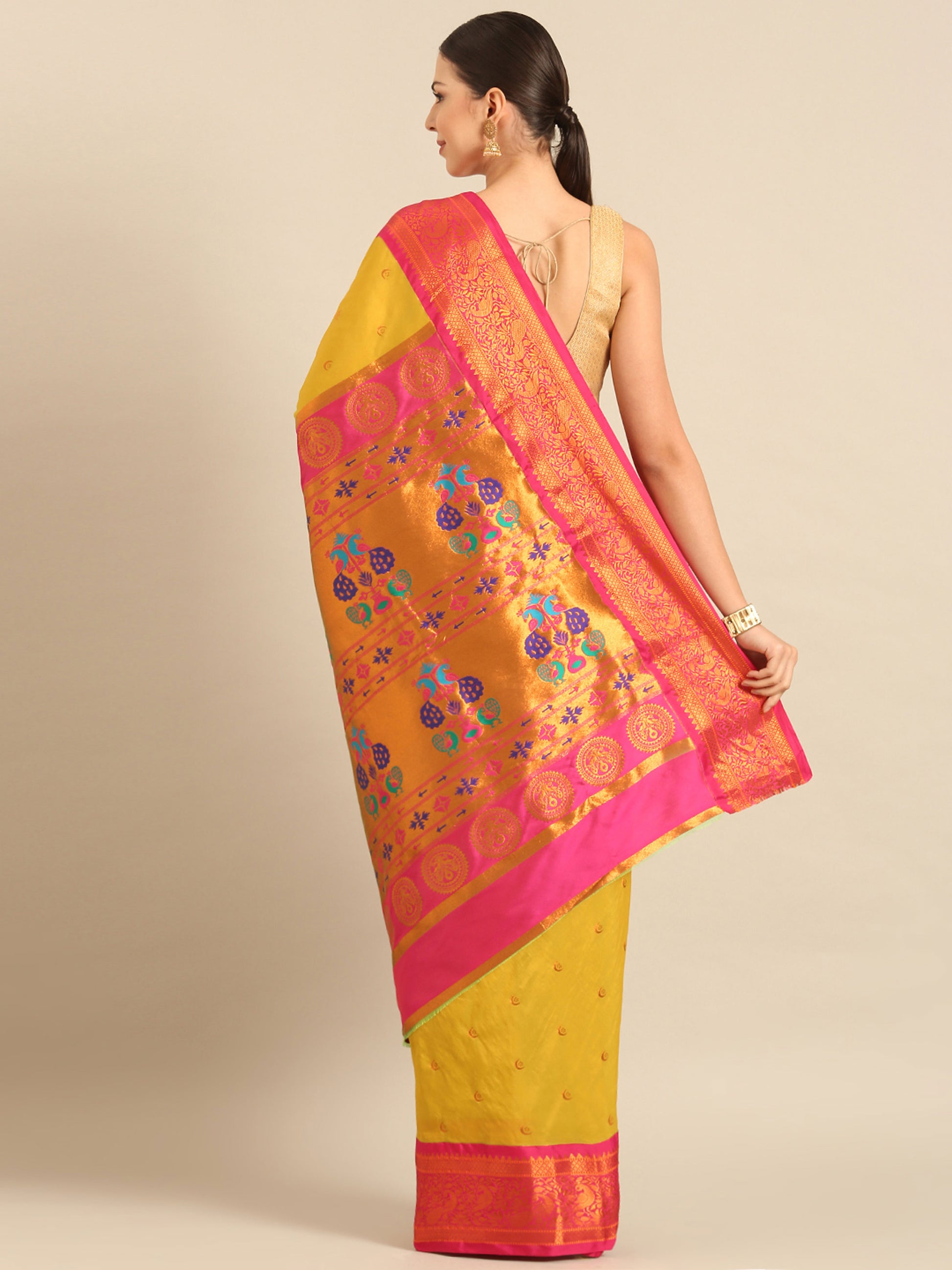Chandrtara Mustard & Pink Soft Silk Chandrakor Paithani Saree