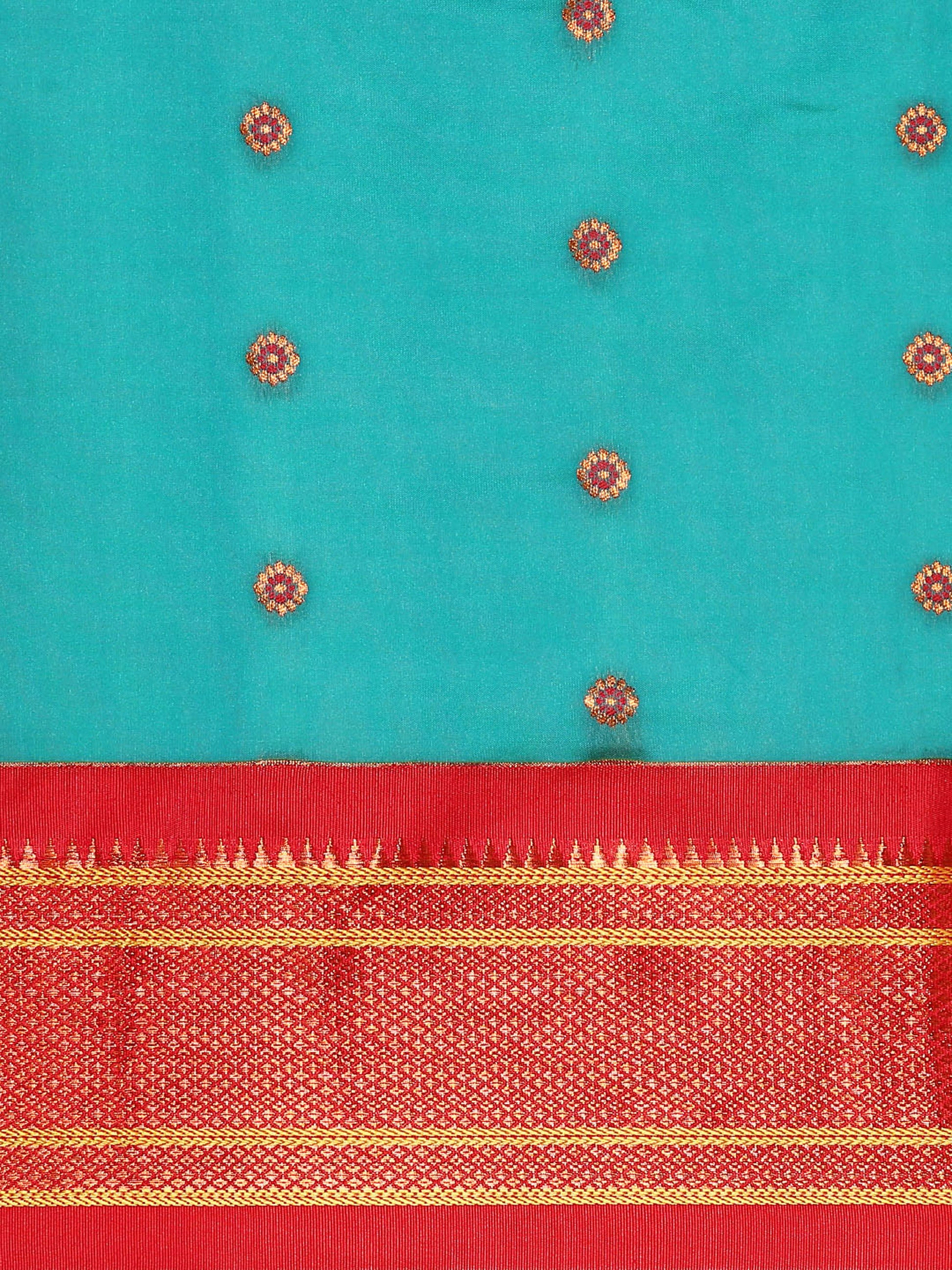 - Pallu Work Type: Copper Zari Woven Peacock Motifs