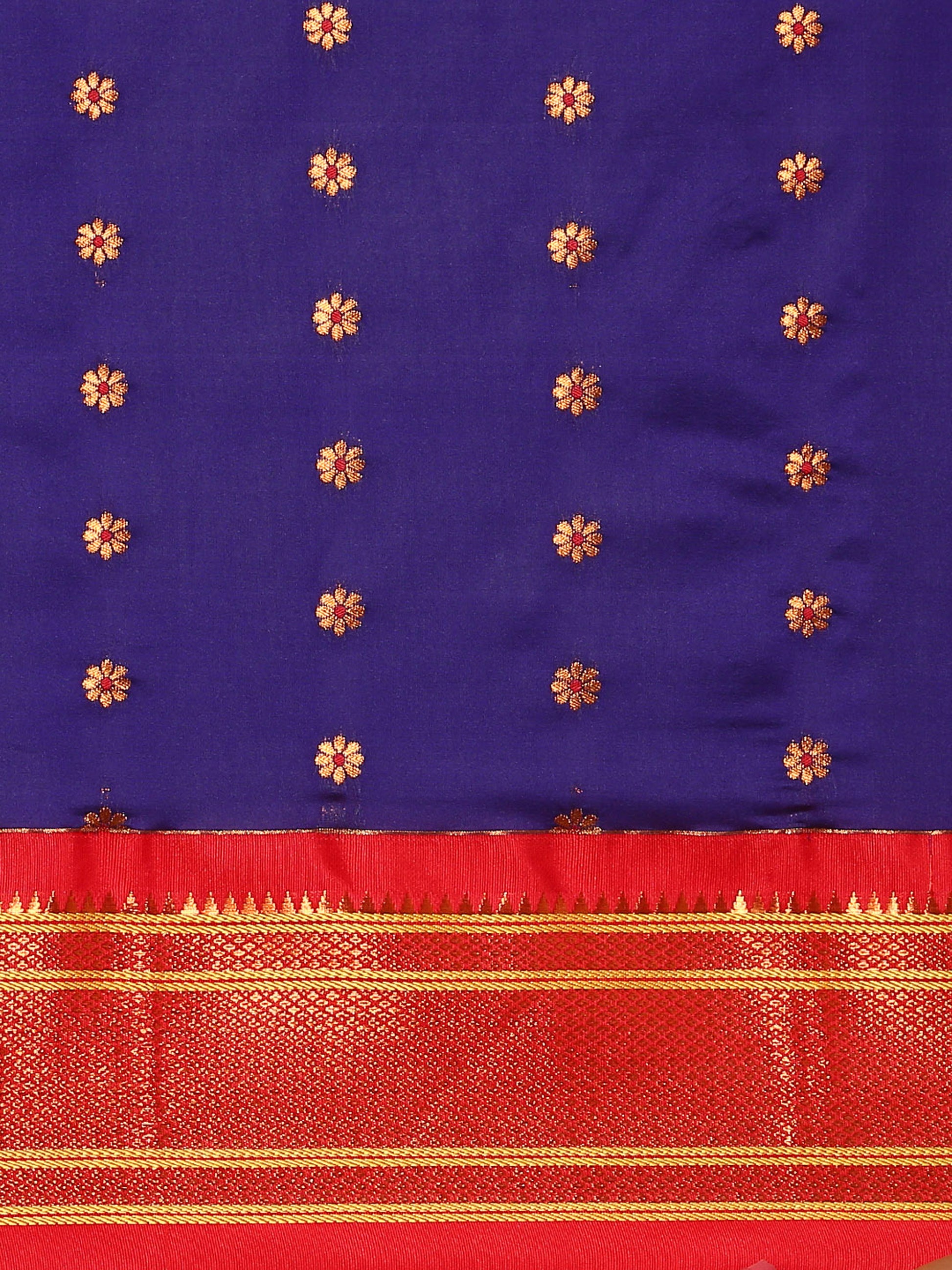 Gopi Indigo Blue & Red Soft Silk Fancy Pallu Paithani Saree