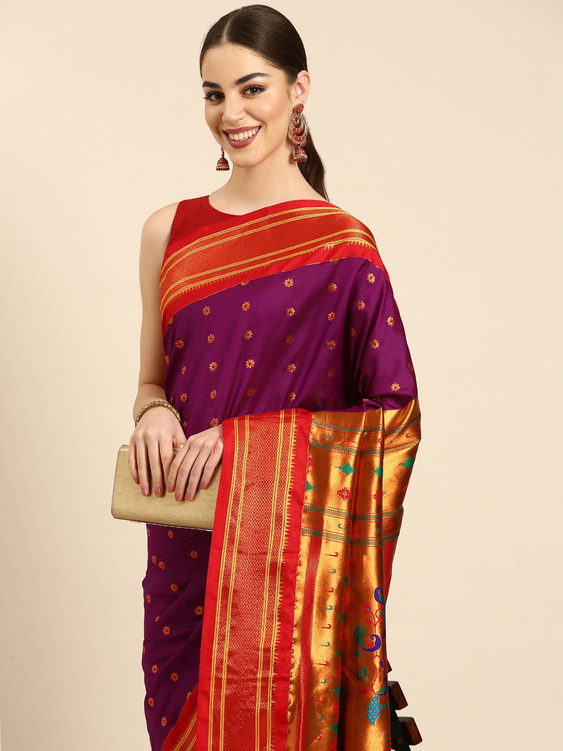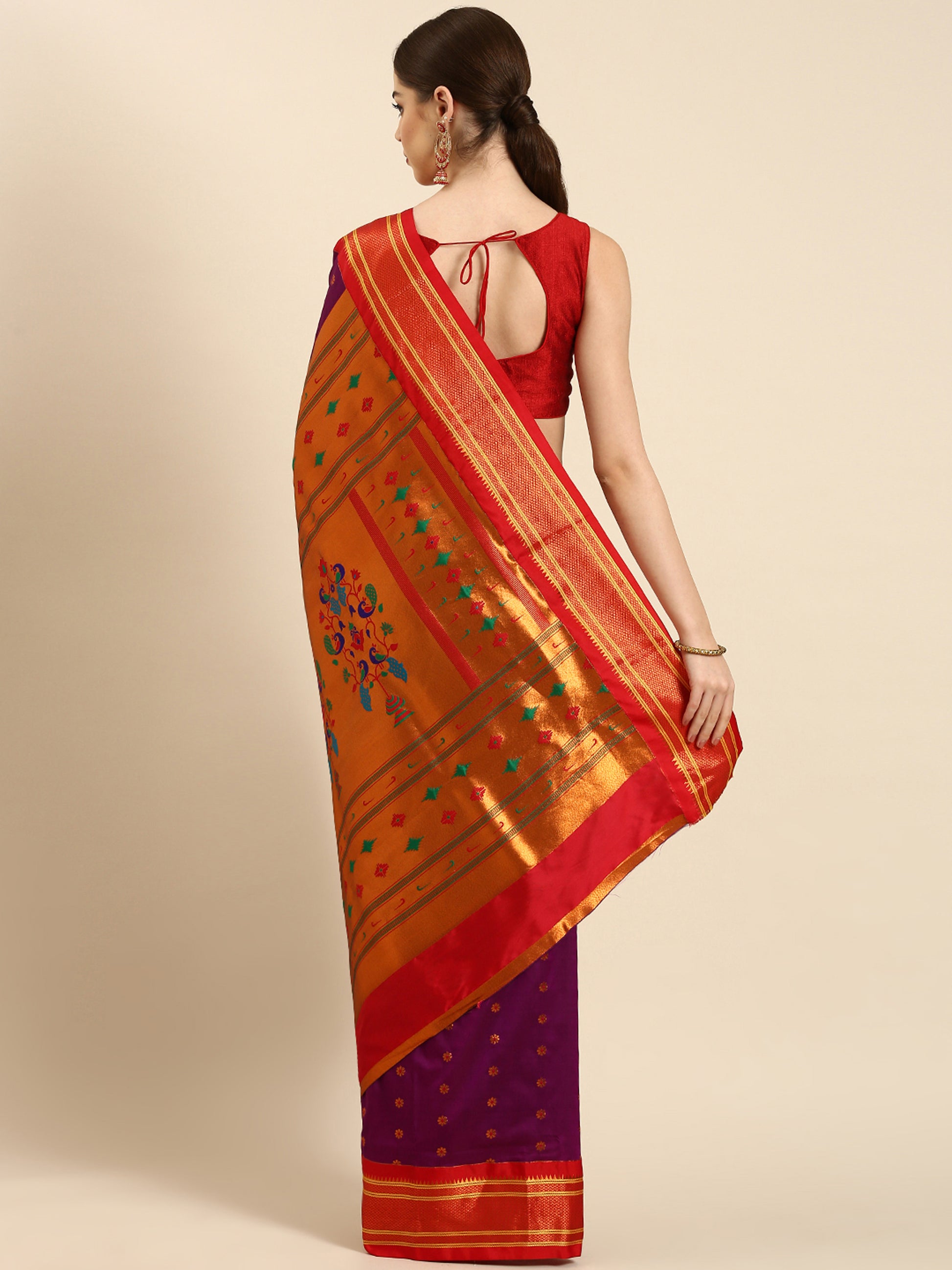 Gopi Purple & Red Soft Silk Fancy Pallu Paithani Saree