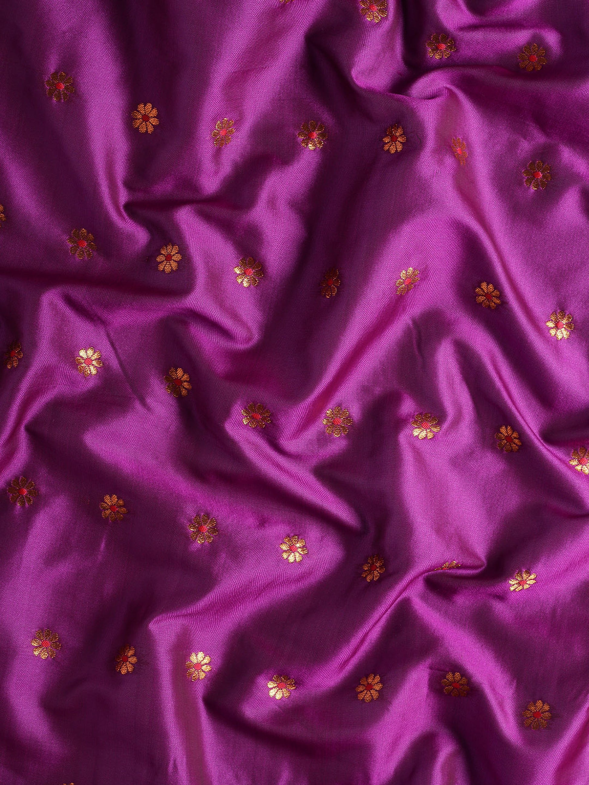 - Saree Work Type: Copper Zari Flower Meena Butti