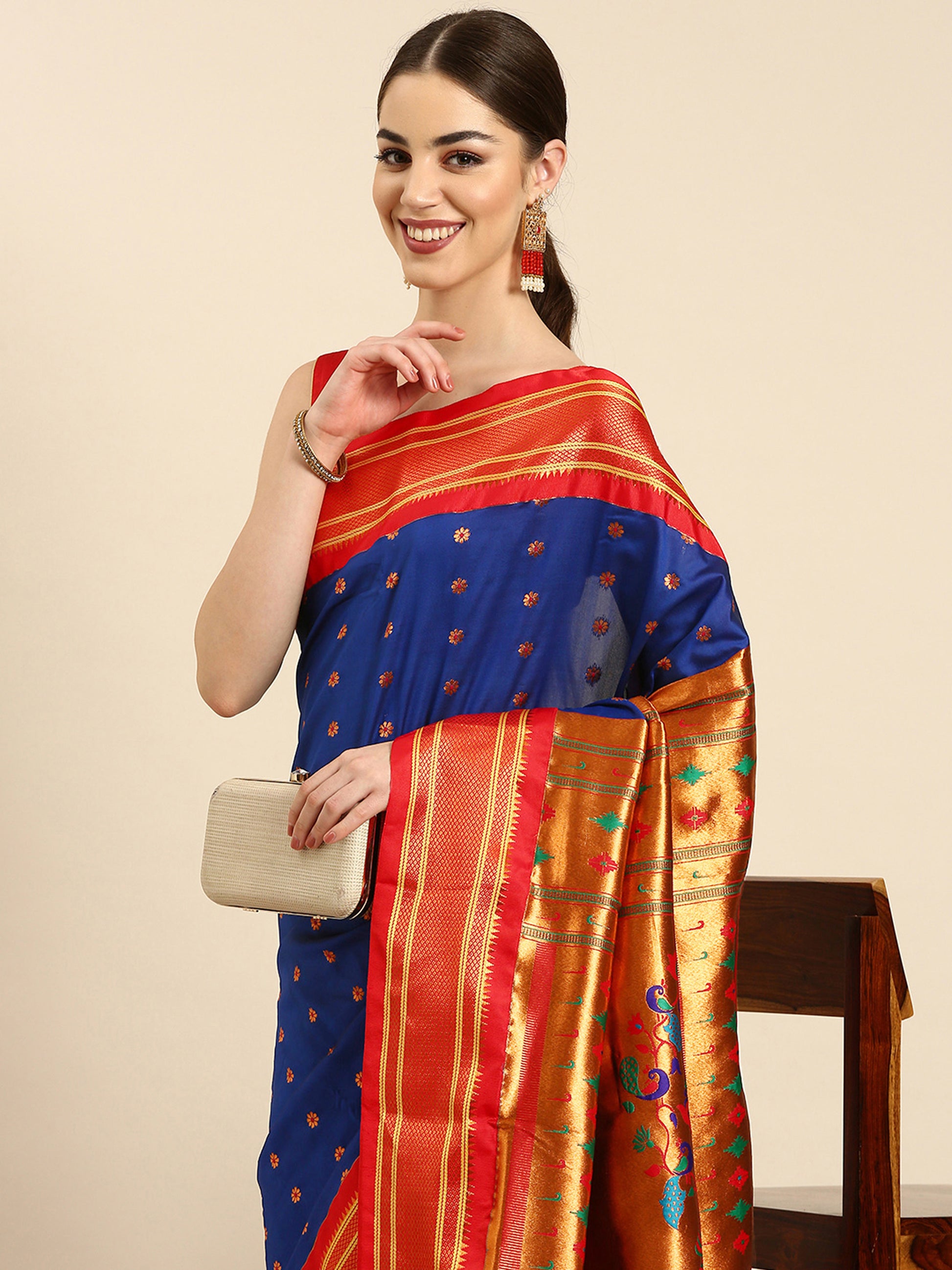 Gopi Royal Blue & Red Soft Silk Fancy Pallu Paithani Saree