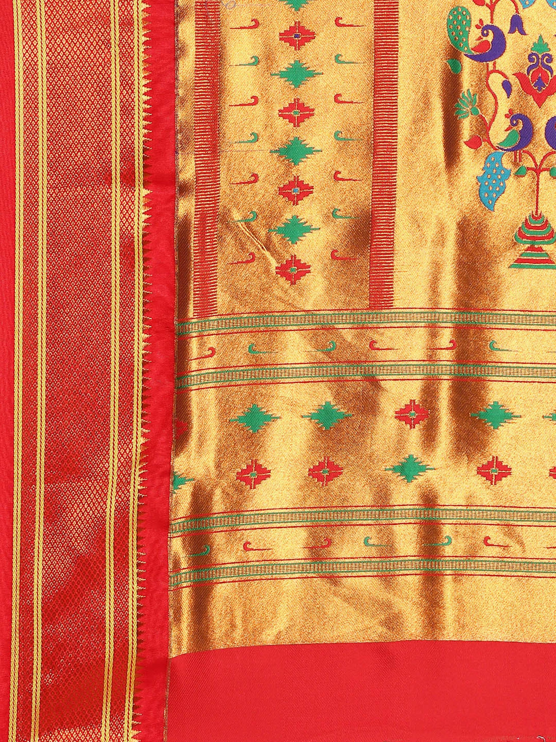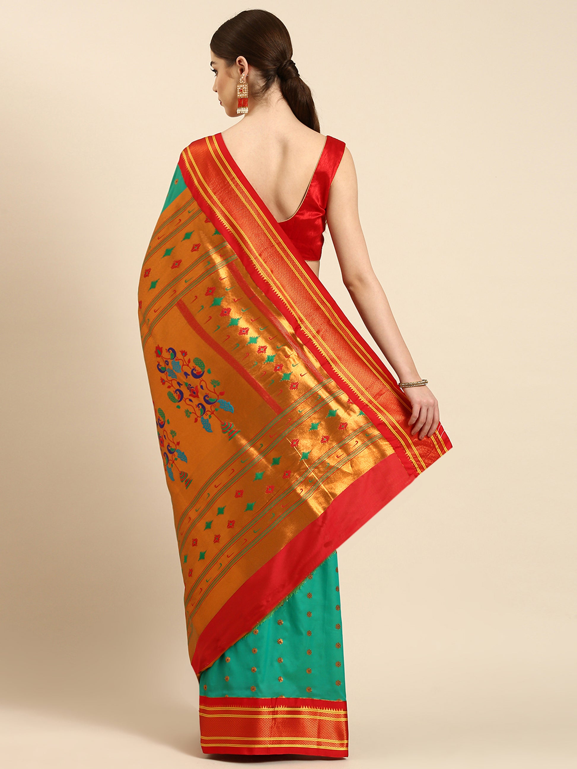 Gopi Sea Green & Red Soft Silk Fancy Pallu Paithani Saree
