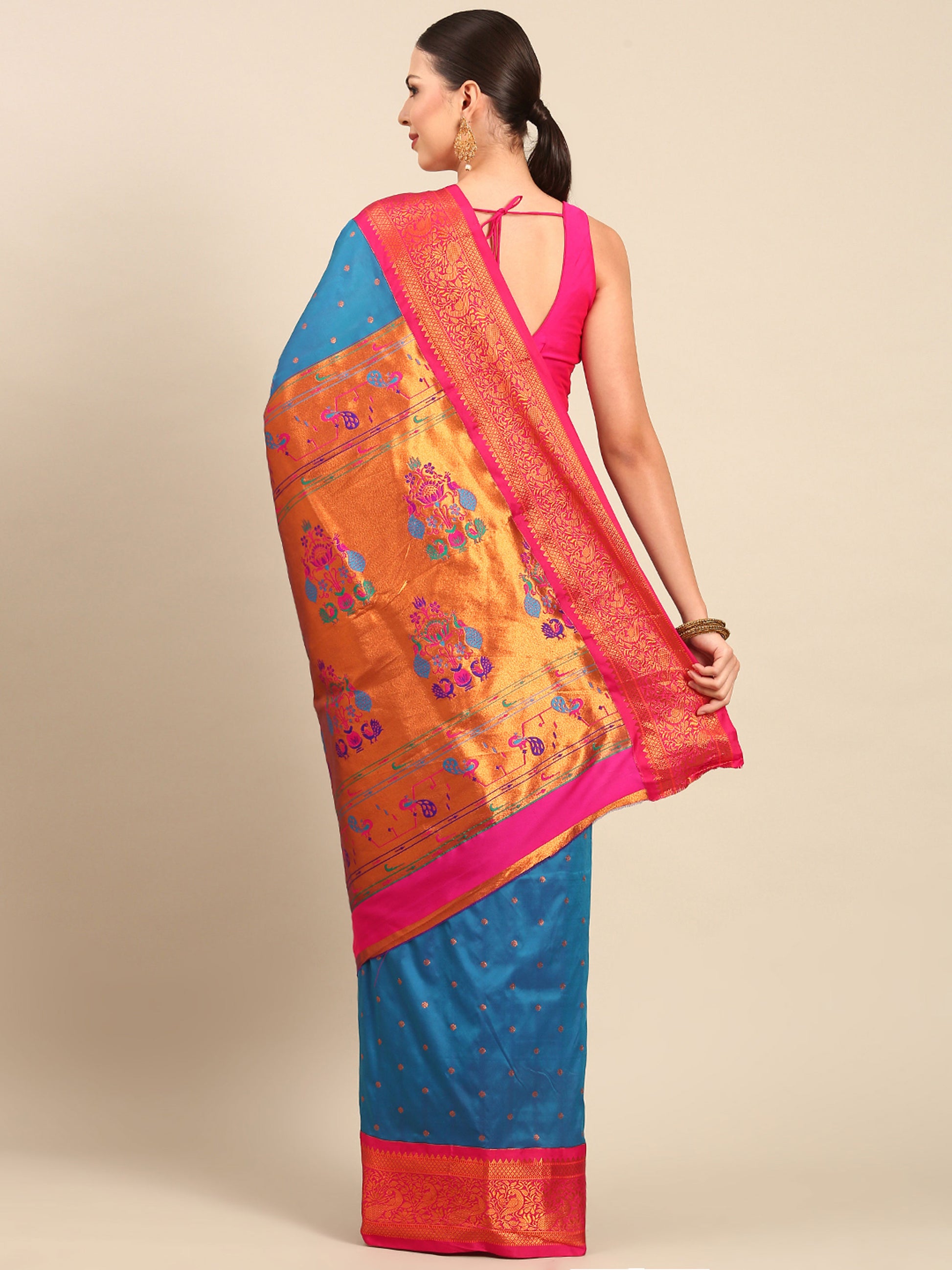Kanika Firozi & Pink Soft Silk Fancy Pallu Kadiyal Paithani Saree