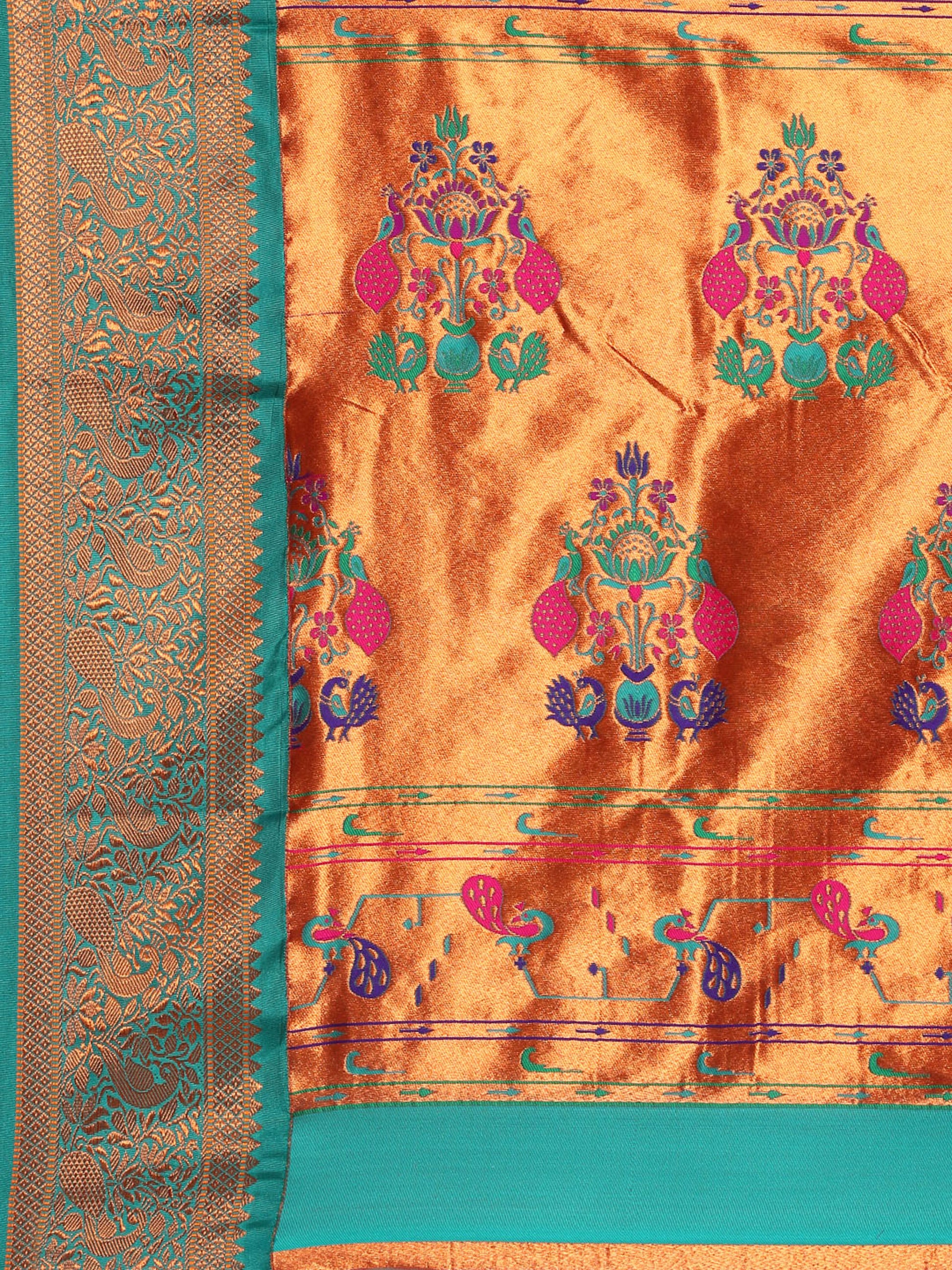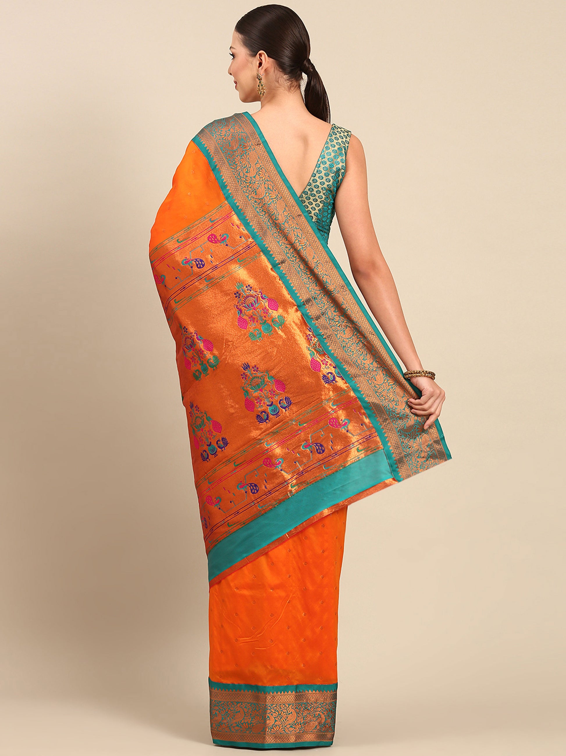 Kanika Orange & Rama Soft Silk Fancy Pallu Kadiyal Paithani Saree