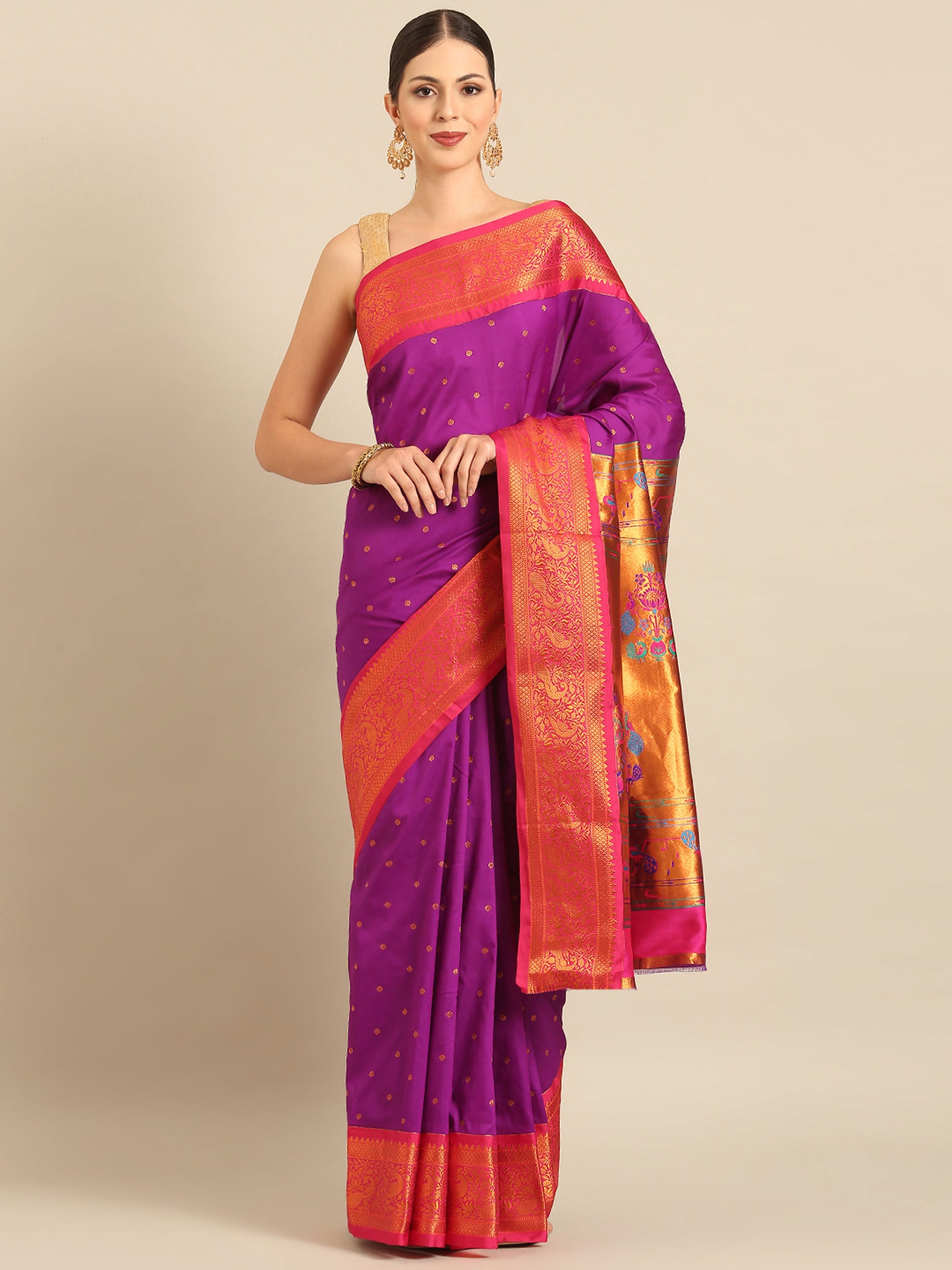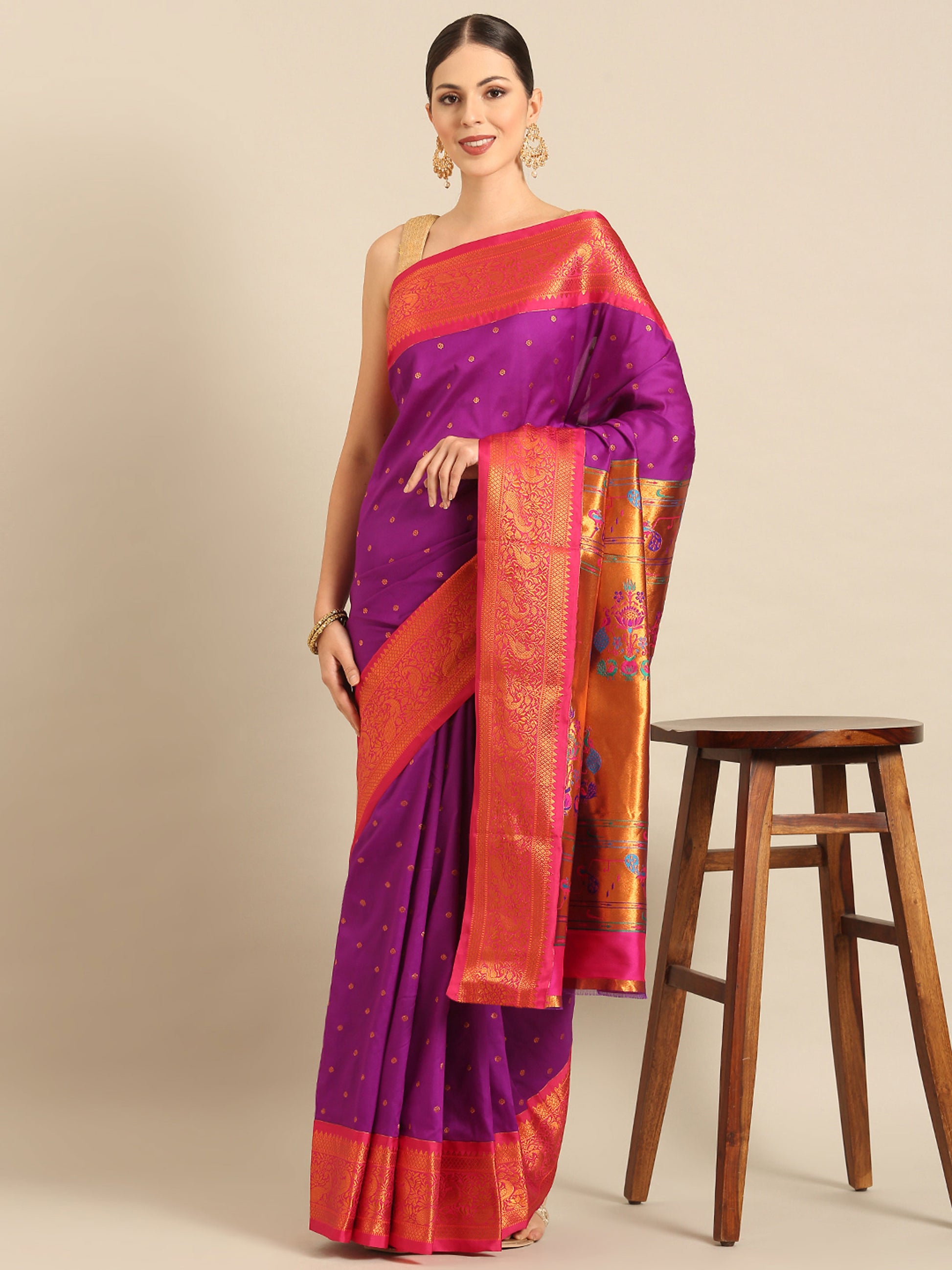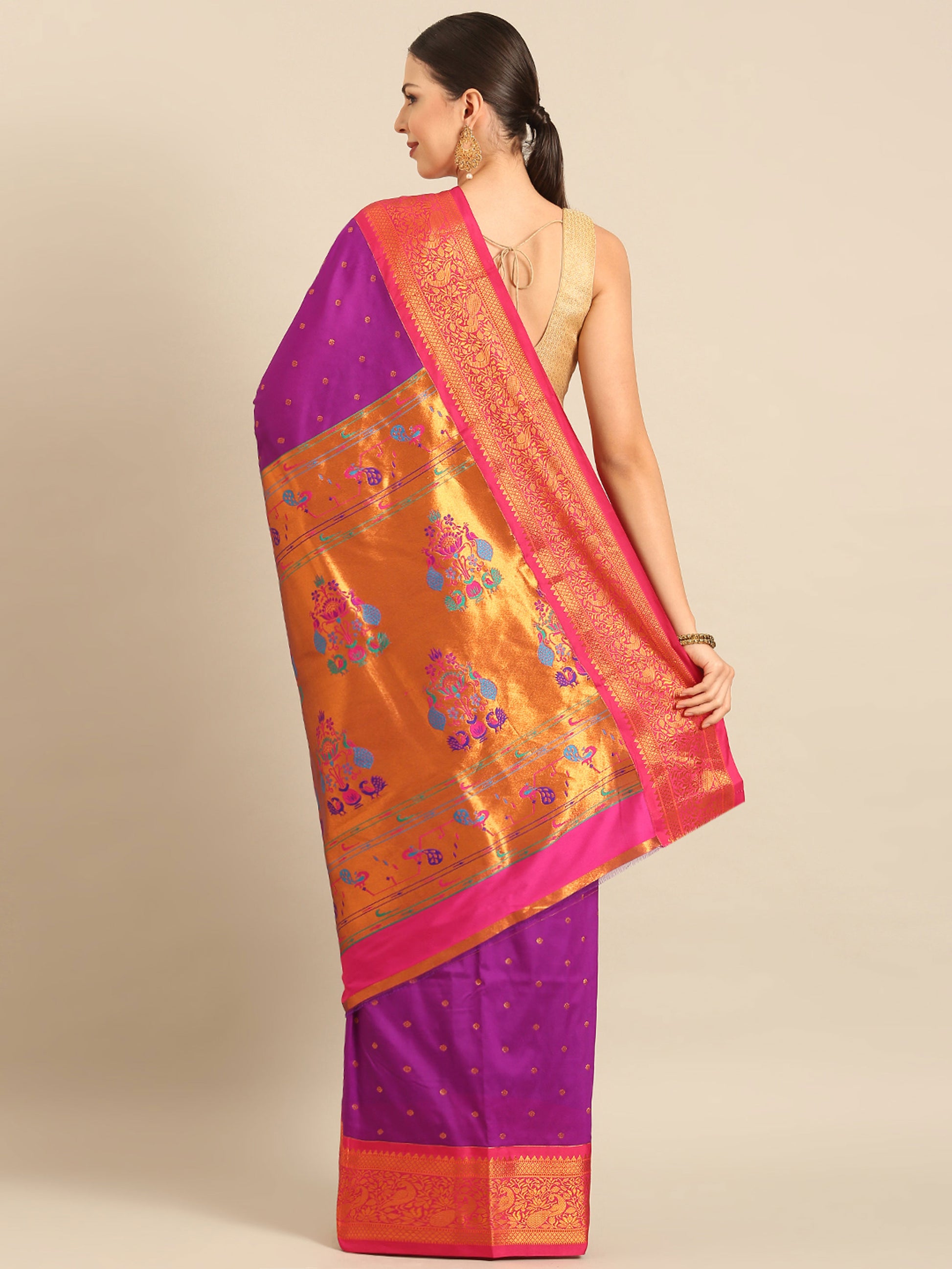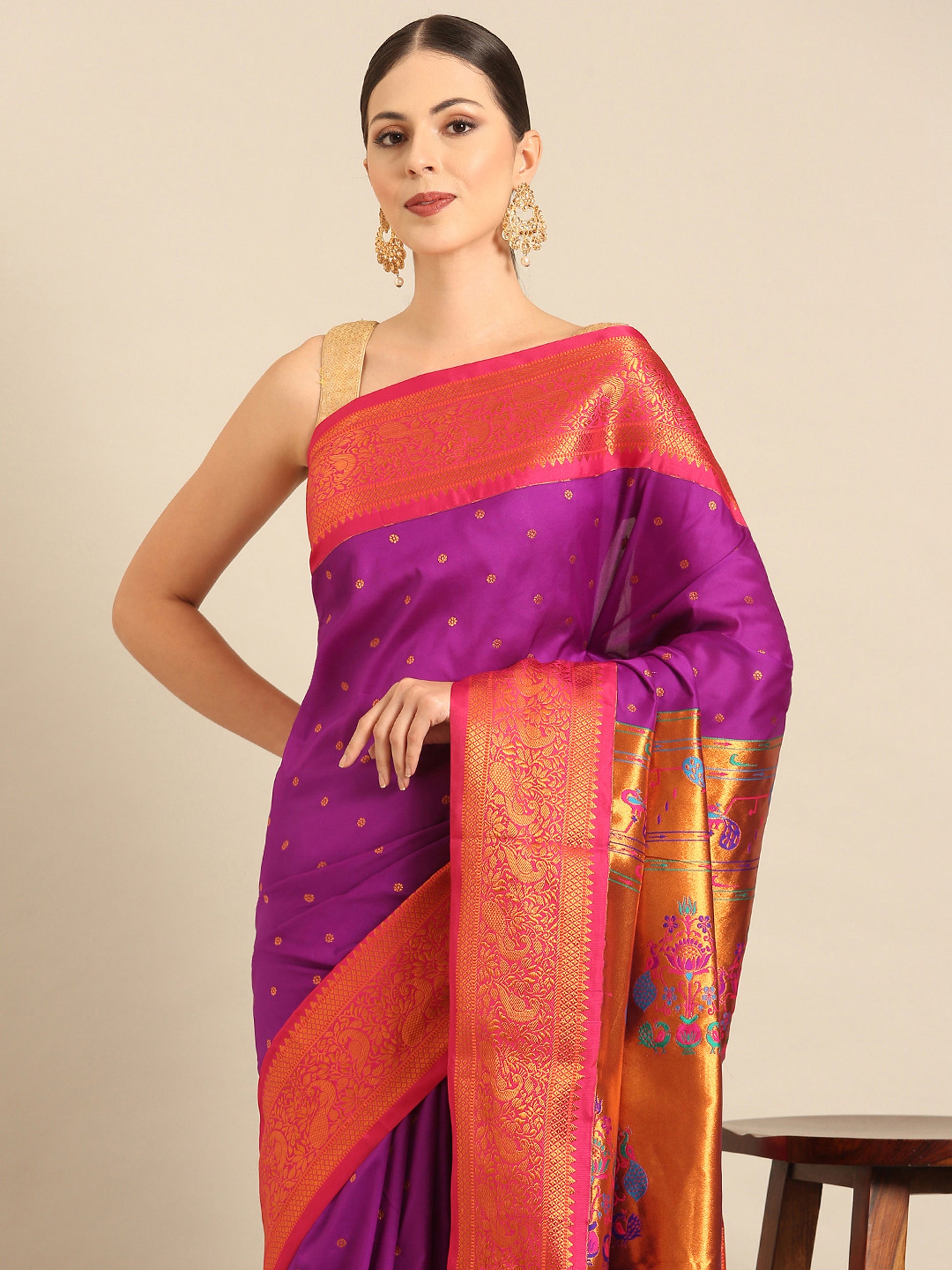 Kanika Purple & Pink Soft Silk Fancy Pallu Kadiyal Paithani Saree