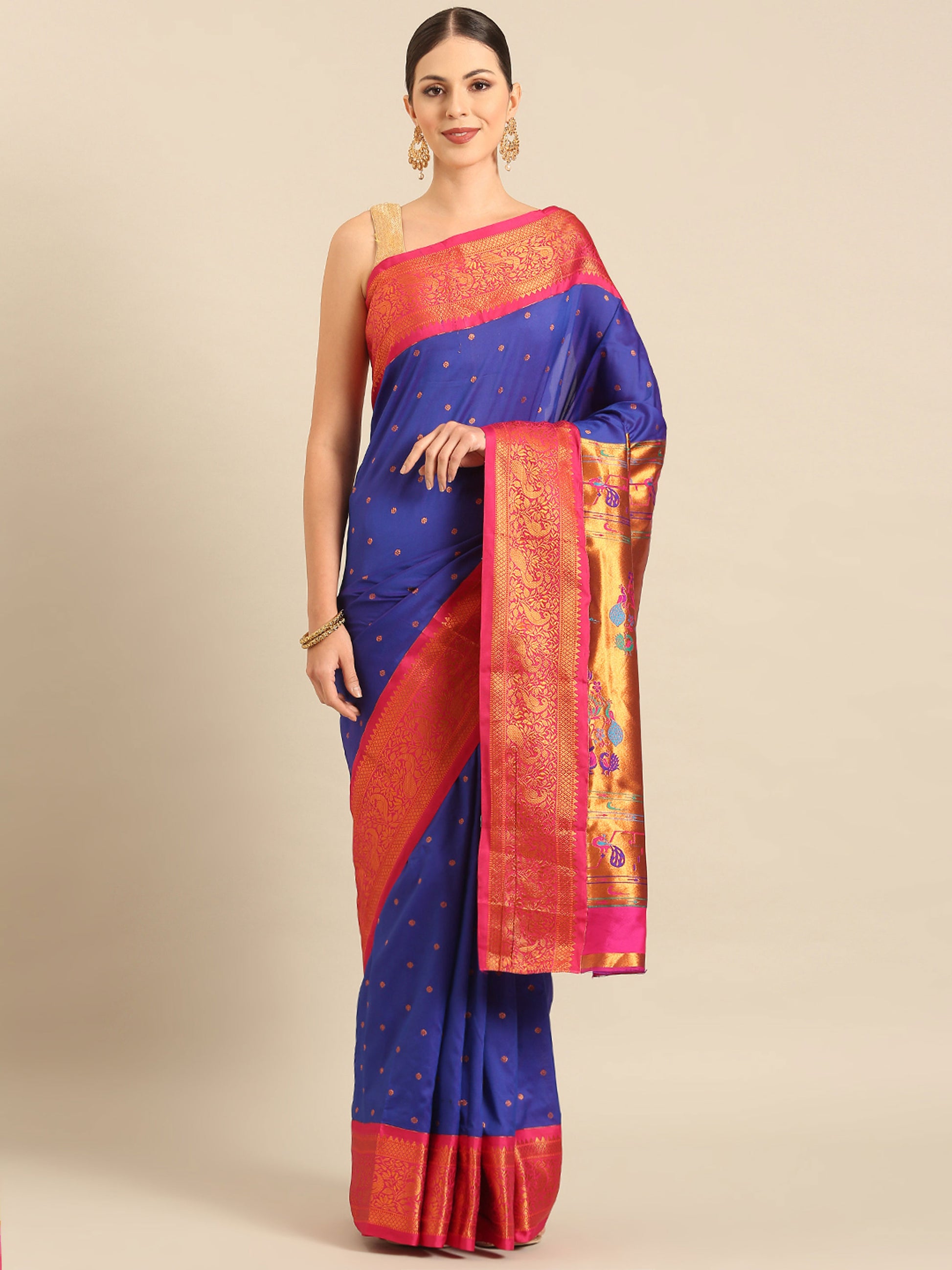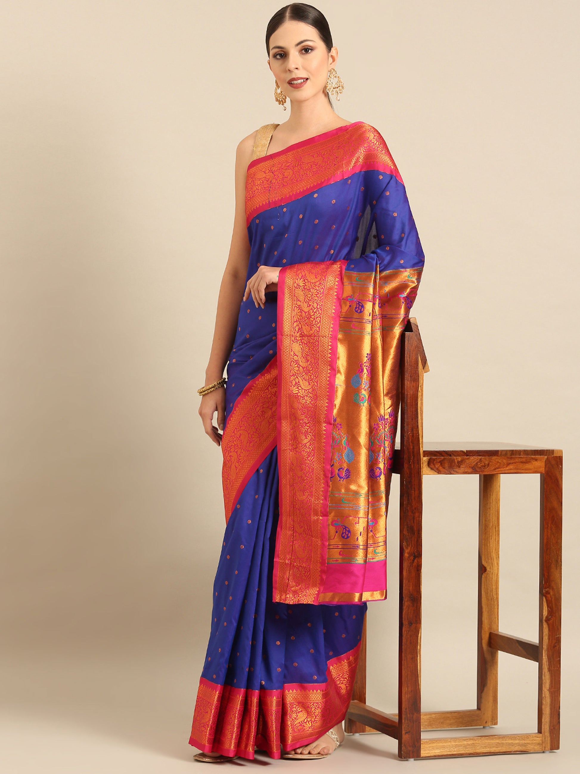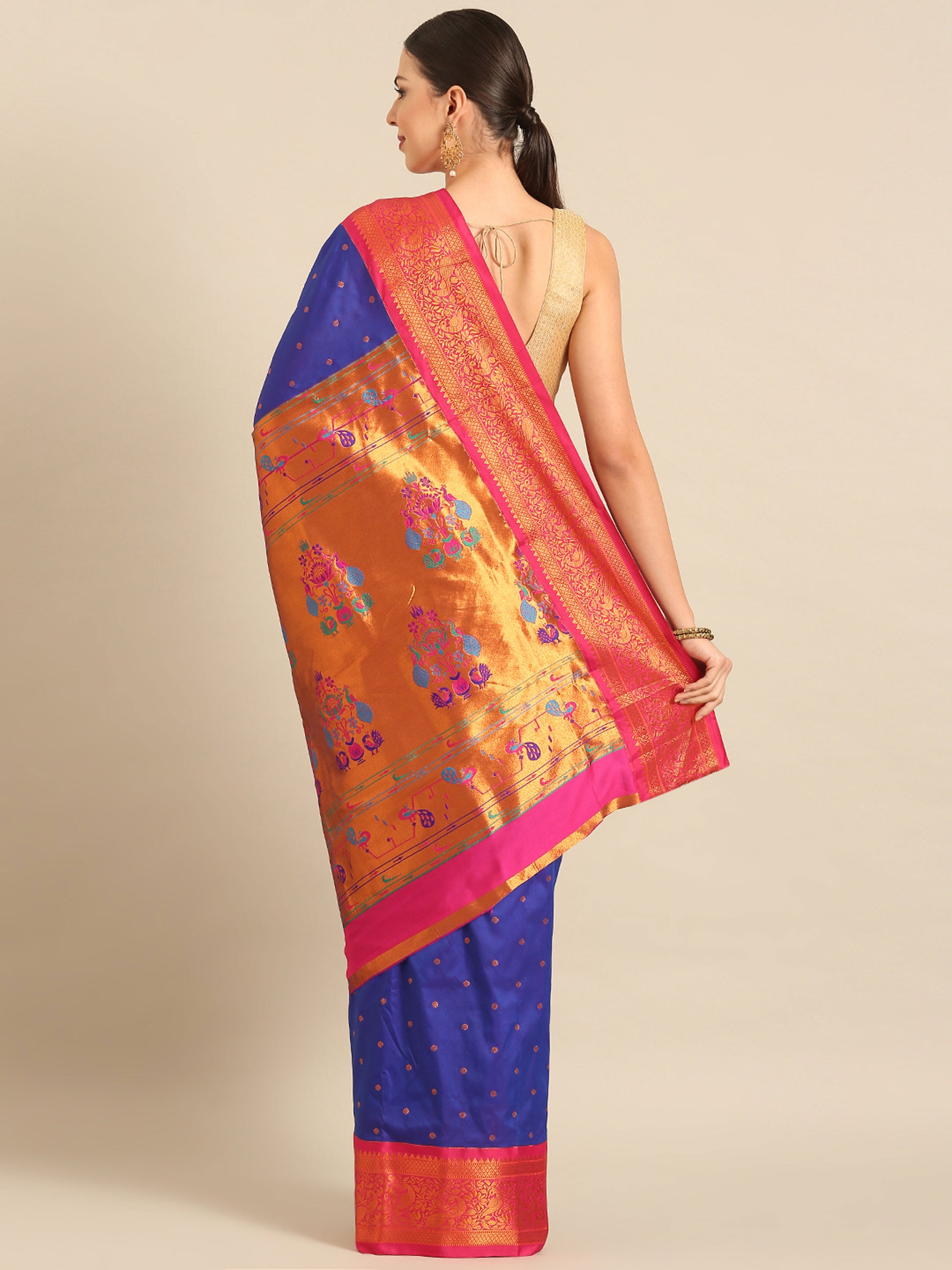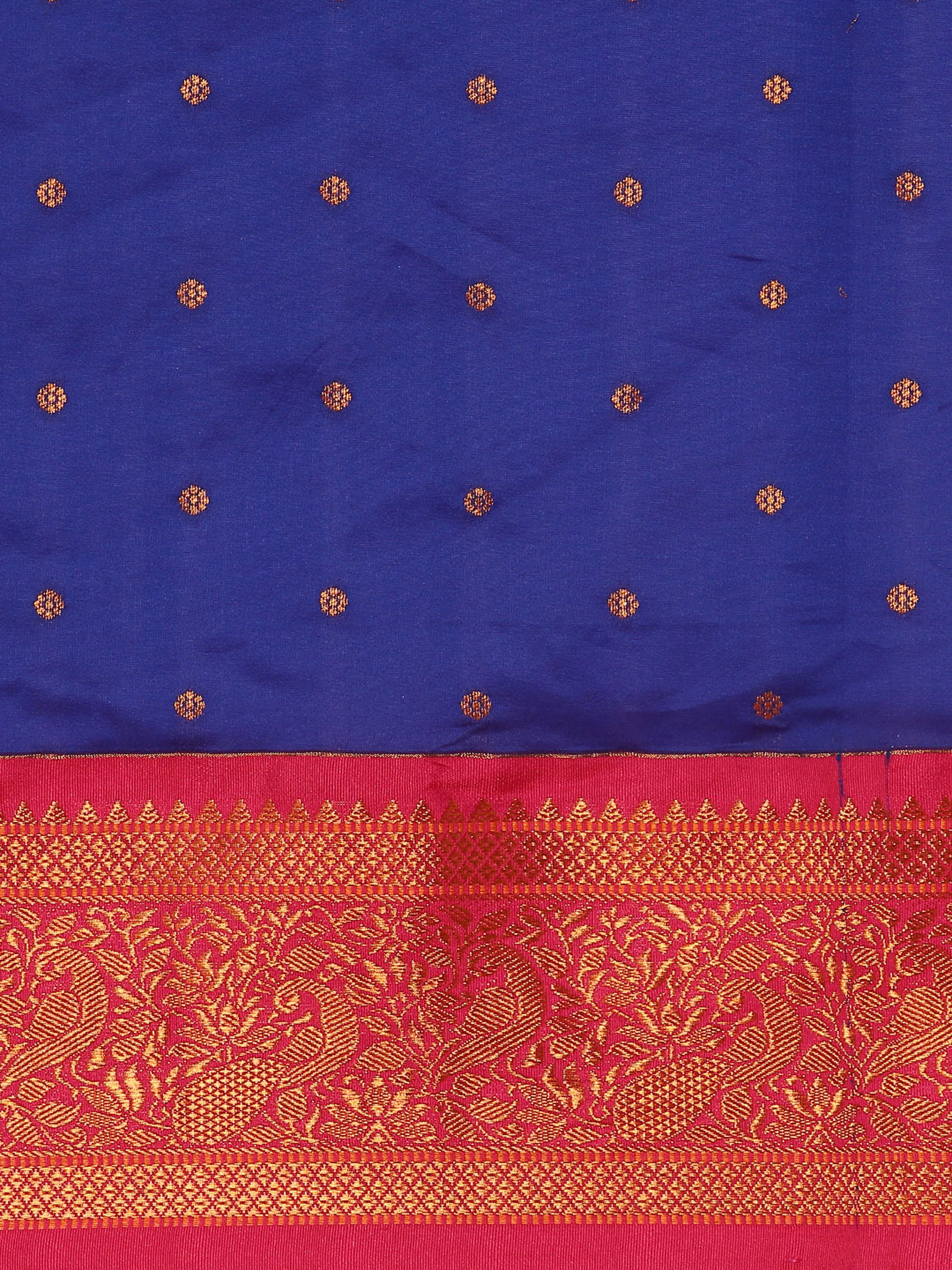 Kanika Royal Blue & Pink Soft Silk Fancy Pallu Kadiyal Paithani Saree