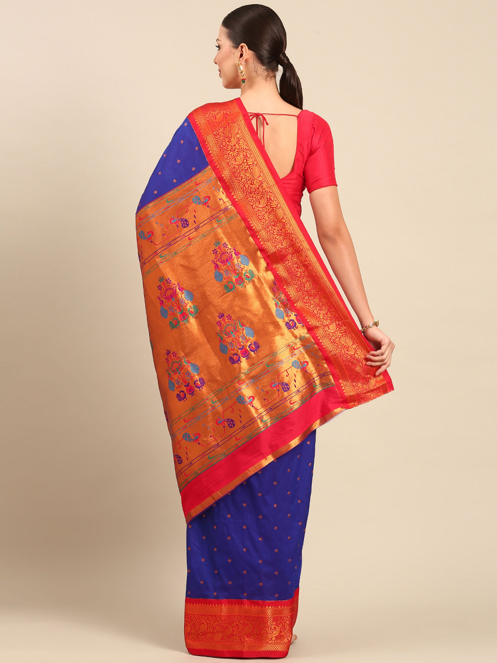 Kanika Royal Blue & Red Soft Silk Fancy Pallu Kadiyal Paithani Saree