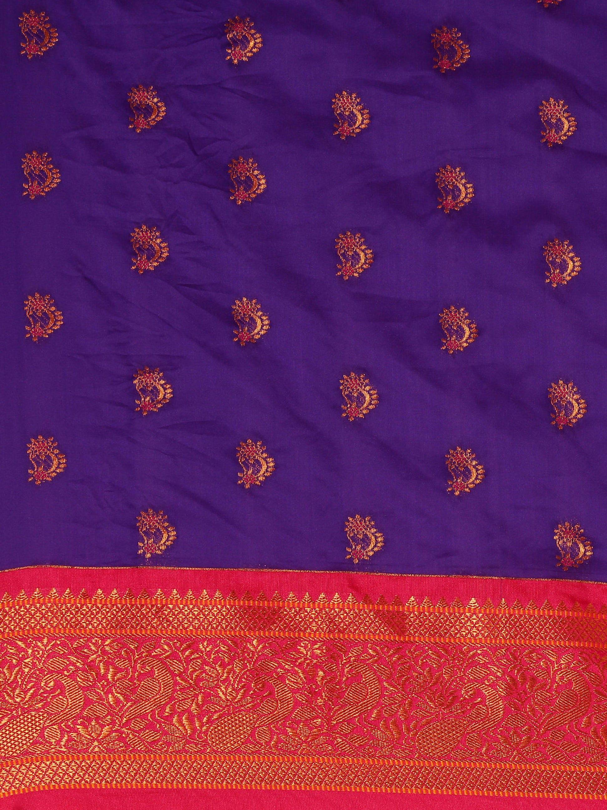 - Saree Color: Indigo Blue & Pink