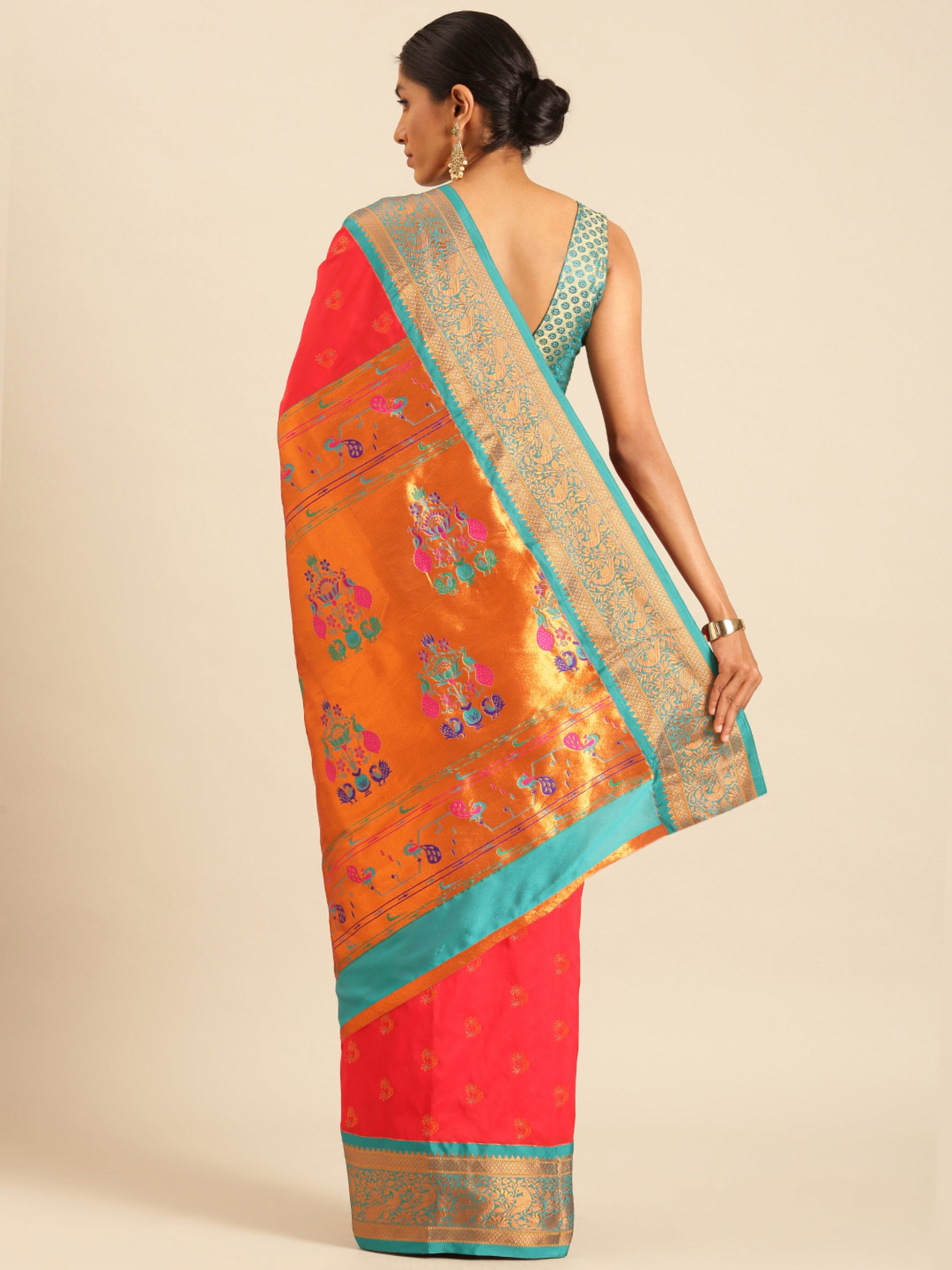 Mhalasa Red & Rama Soft Silk Peshwai Nath Paithani Saree
