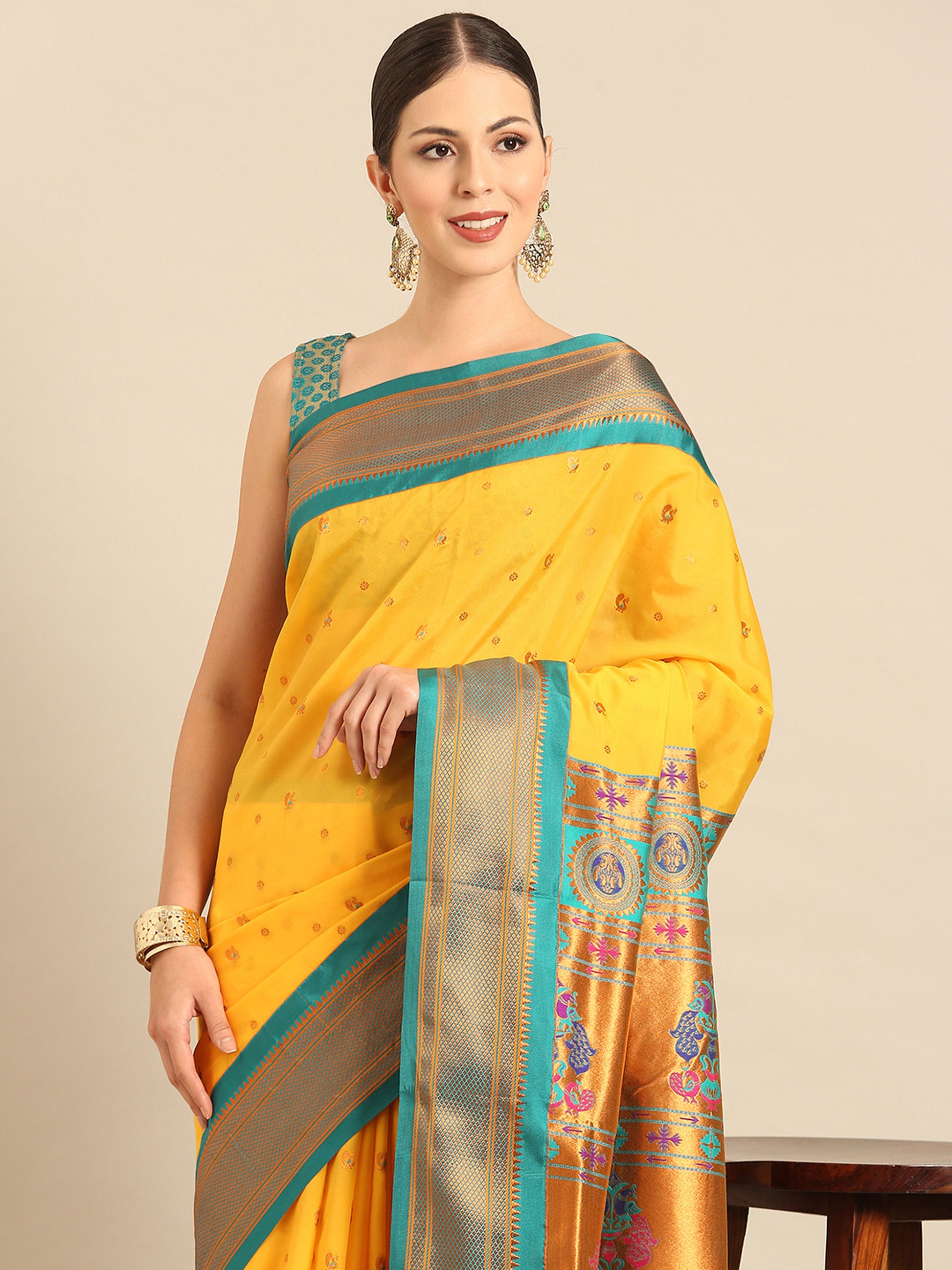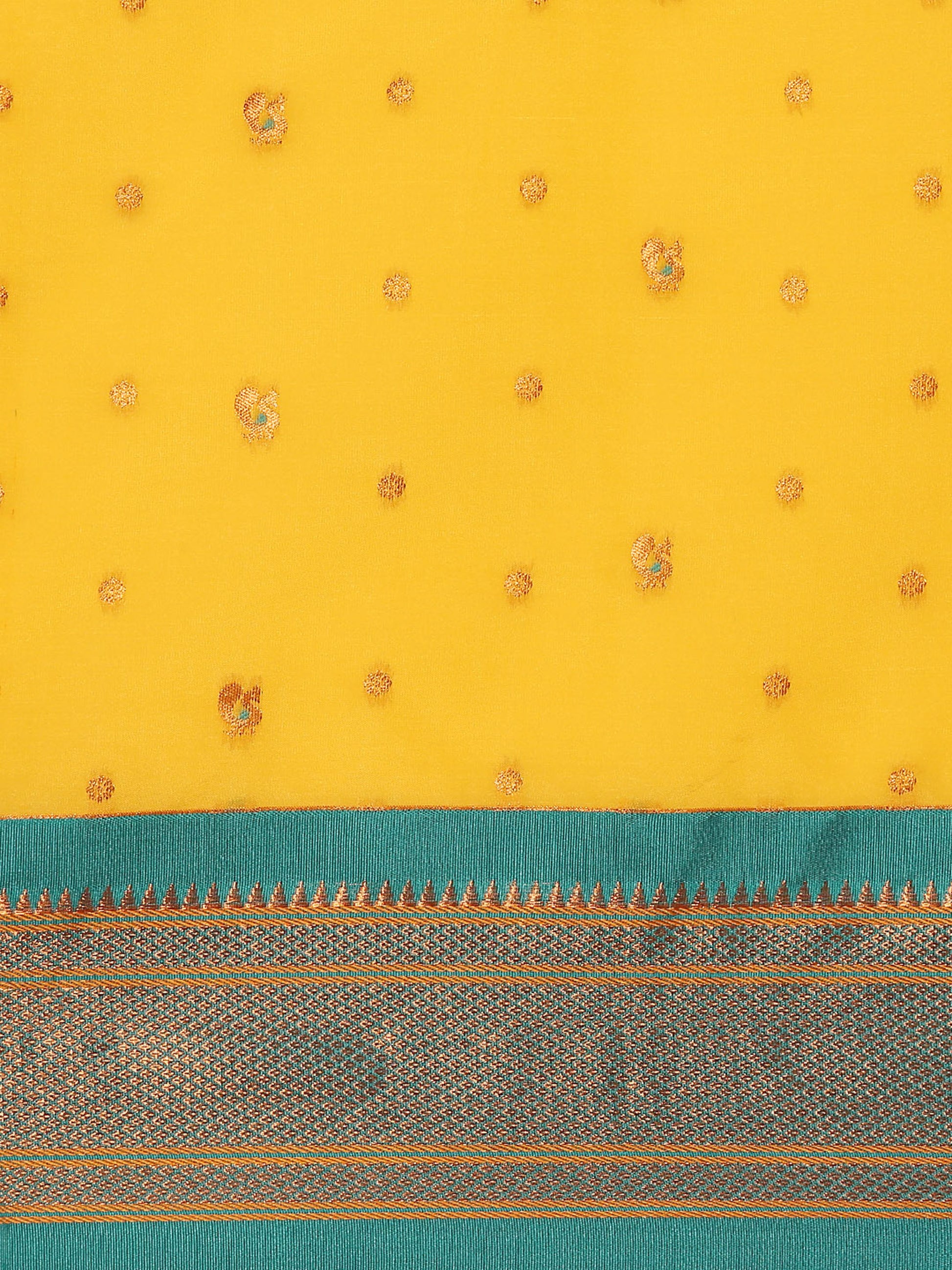 Mukta Haldi & Rama Soft Silk Kadiyal Maharani Paithani Saree