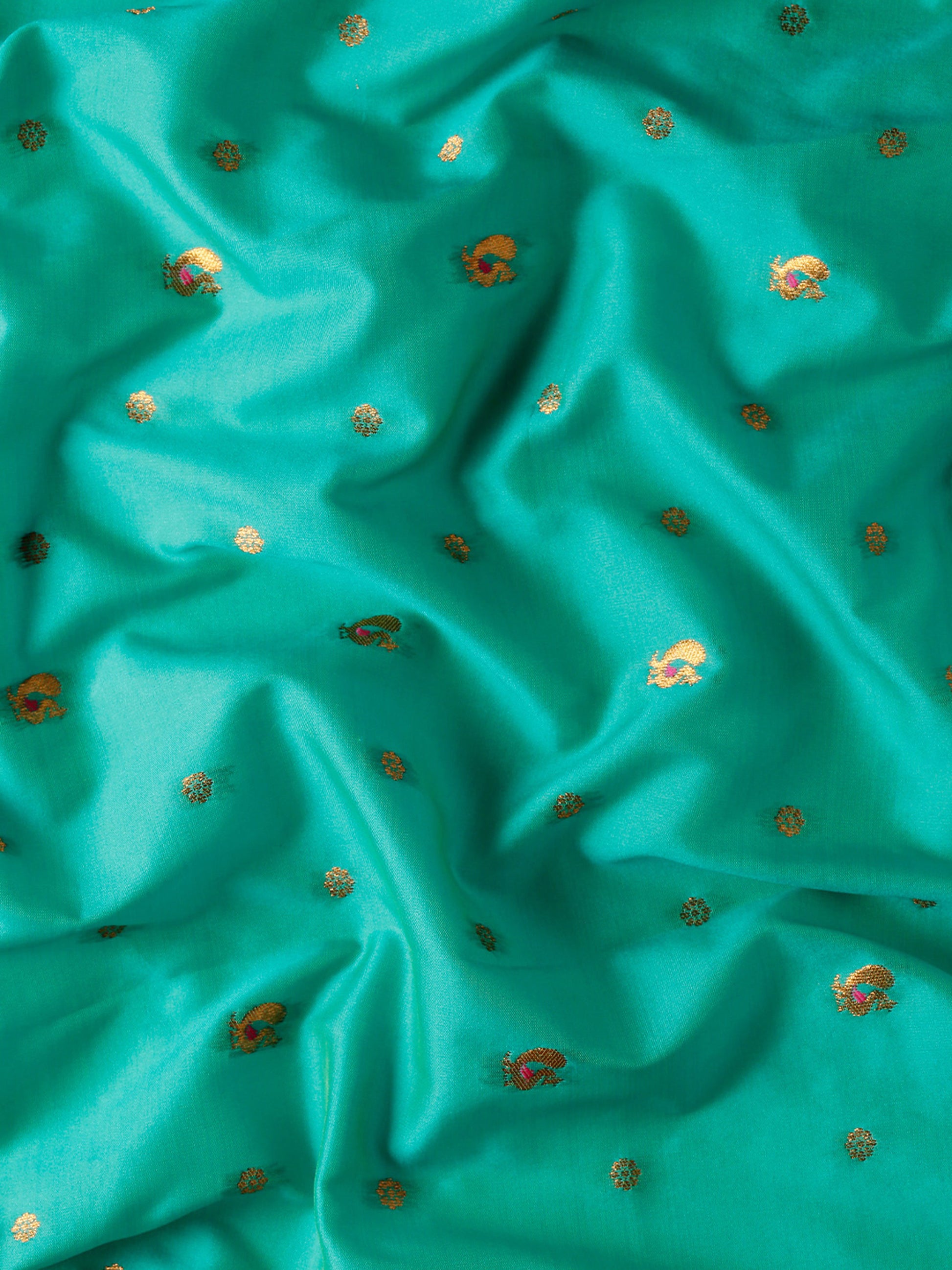 - Saree Work Type: Small Copper Zari and Peacock Motifs Butti