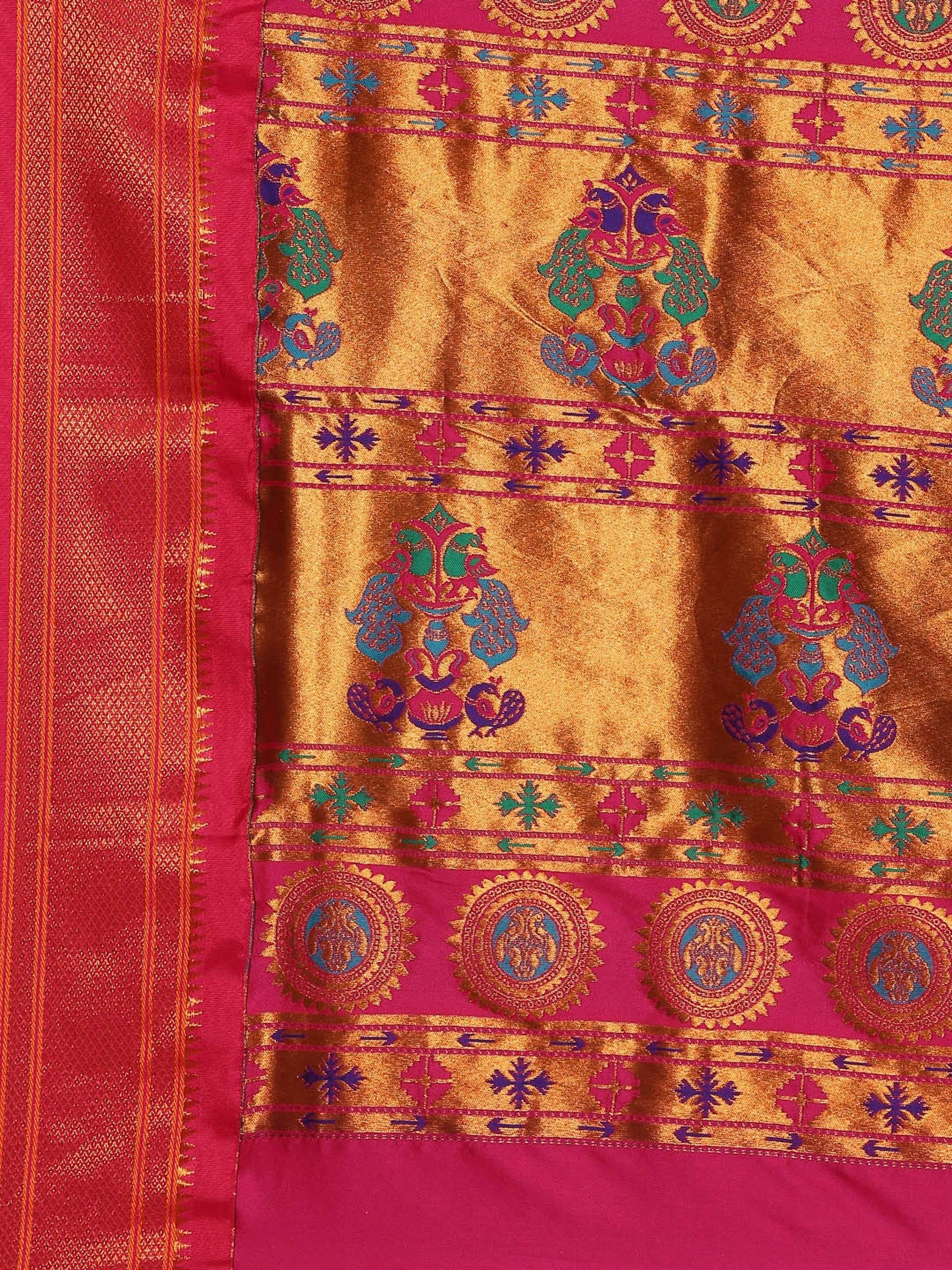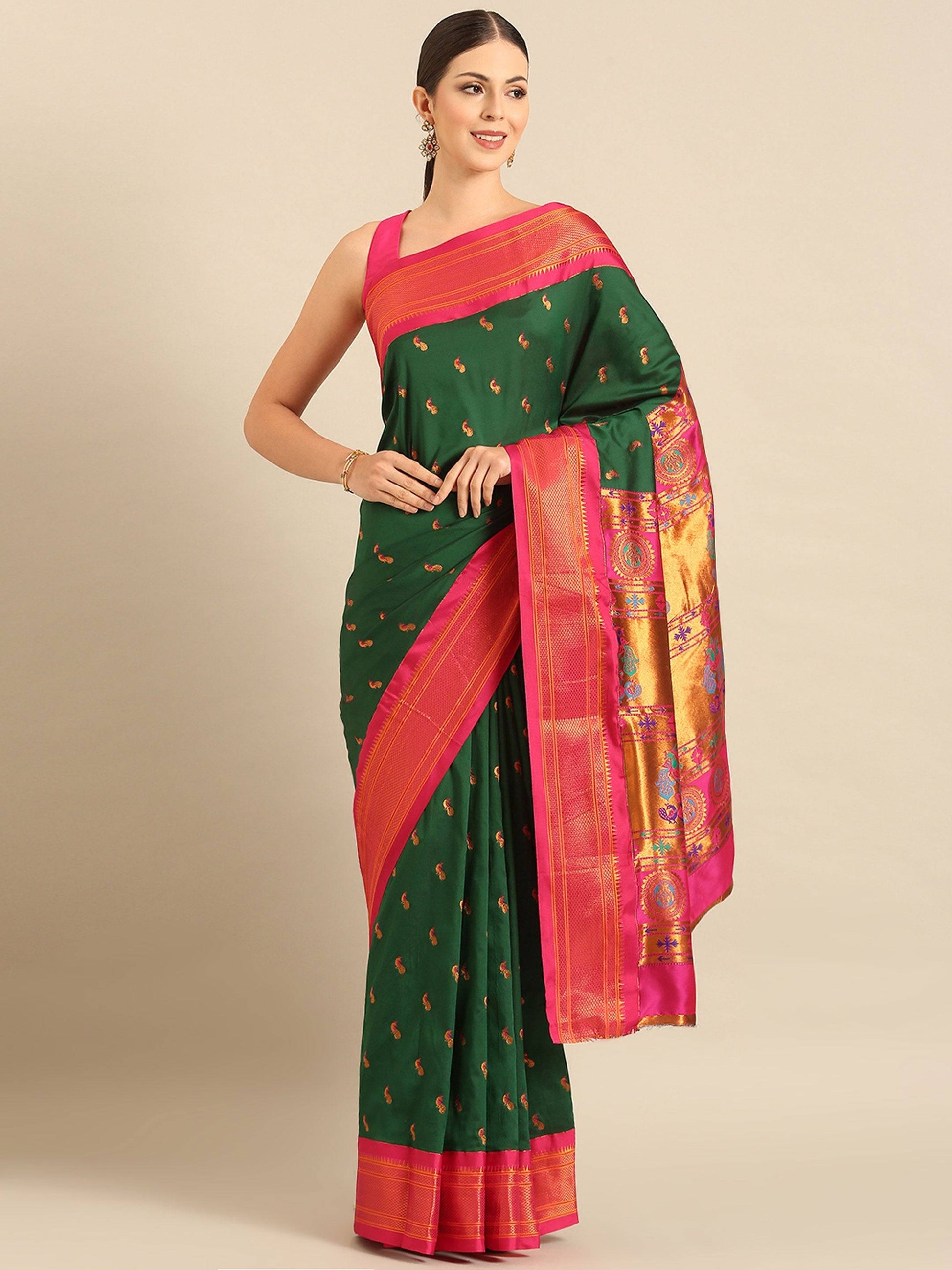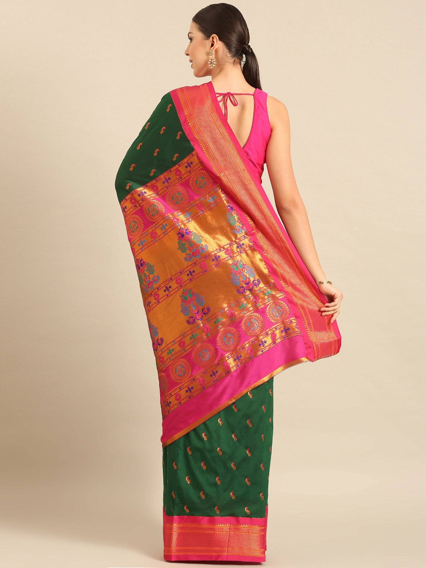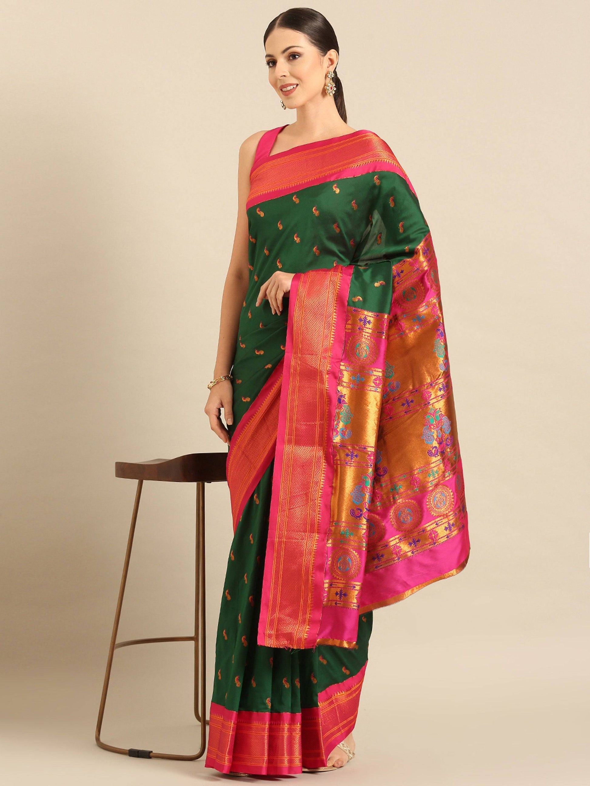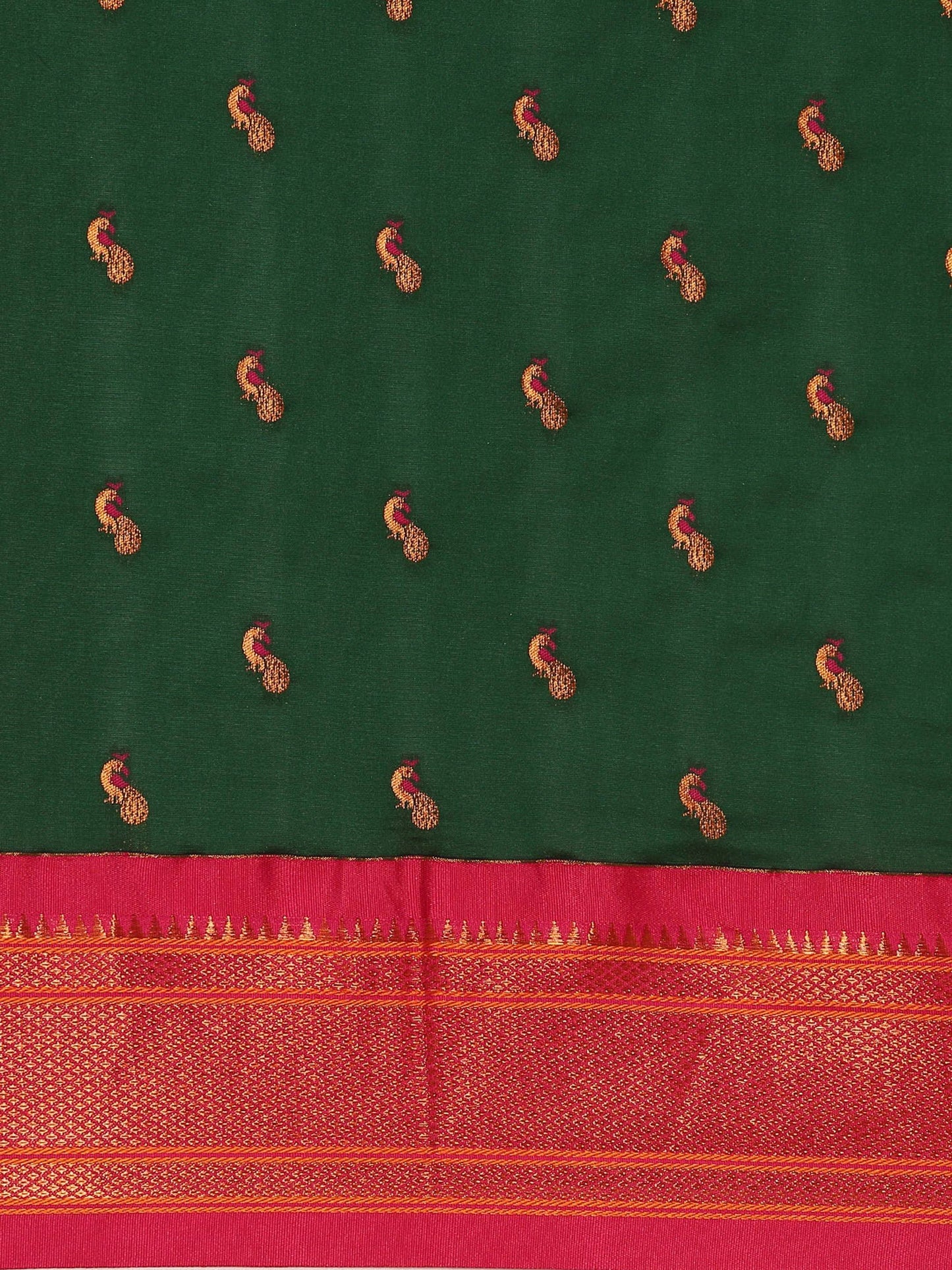 Myra Bottle Green & Pink Soft Silk Kadiyal Maharani Paithani Saree