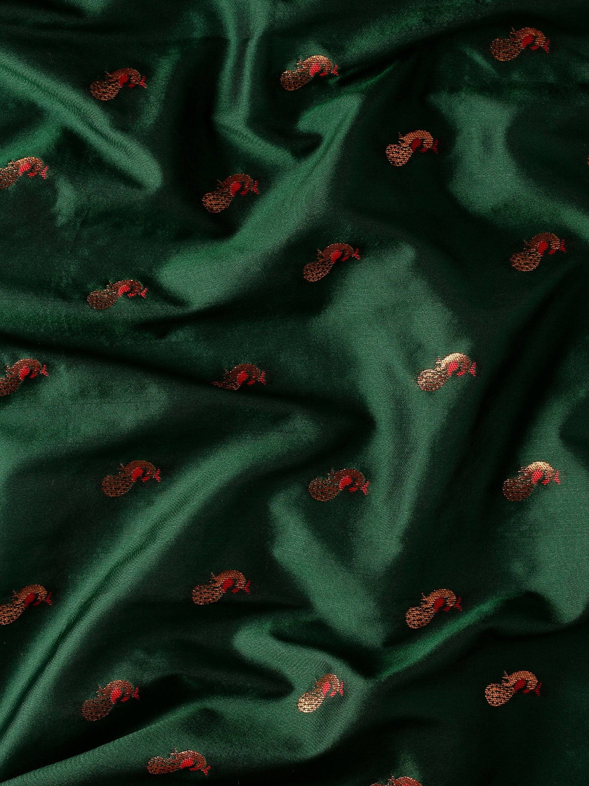 Explore The Collection Of Beautifully Designed Bottle Green & Pink Soft Silk Fancy Pallu Paithani Saree With Blouse Piece From Varkala Silk Sarees. This Luxurious Fancy Paithani Saree, Crafted In A Soft Silk Blend With 70% Polyester And 30% Silk, Is Perfect For Special Occasions Like Weddings, Parties, And Festivals. The Saree Measures 5.5 Meters With A 0.8-Meter Blouse Piece And Has A Graceful Width Of 1.16 Meters. Its Stunning Kadiyal Border Features Intricate Checks, While The Body Is Adorned With Delicate Copper Zari Peacock Motifs. The Woven Pallu Showcases Resplendent Zari And Multicolor Resham Silk Thread Work, Embodying Traditional Elegance. For Best Results, Dry Clean For The First Wash, Followed By A Gentle Hand Wash.