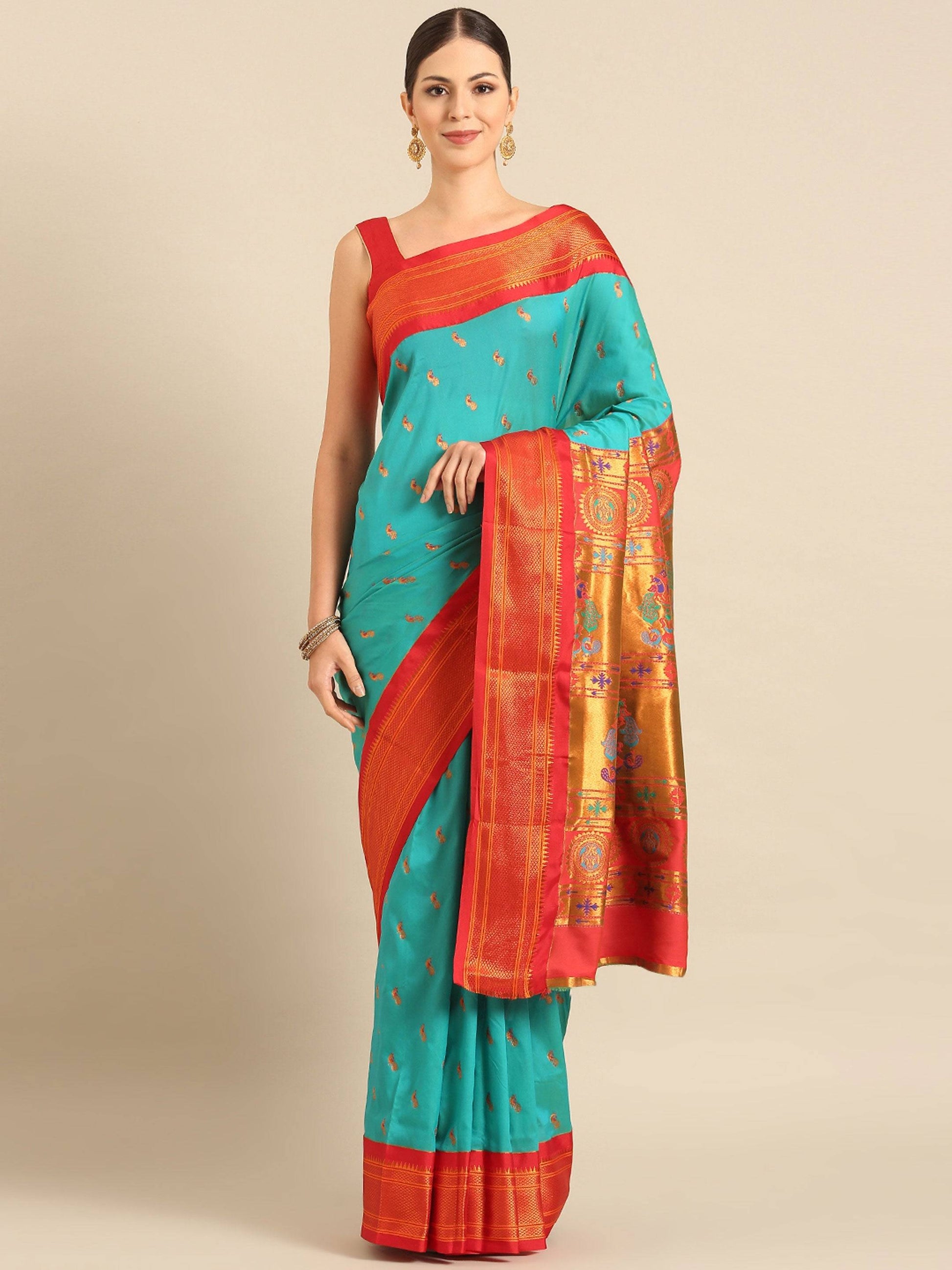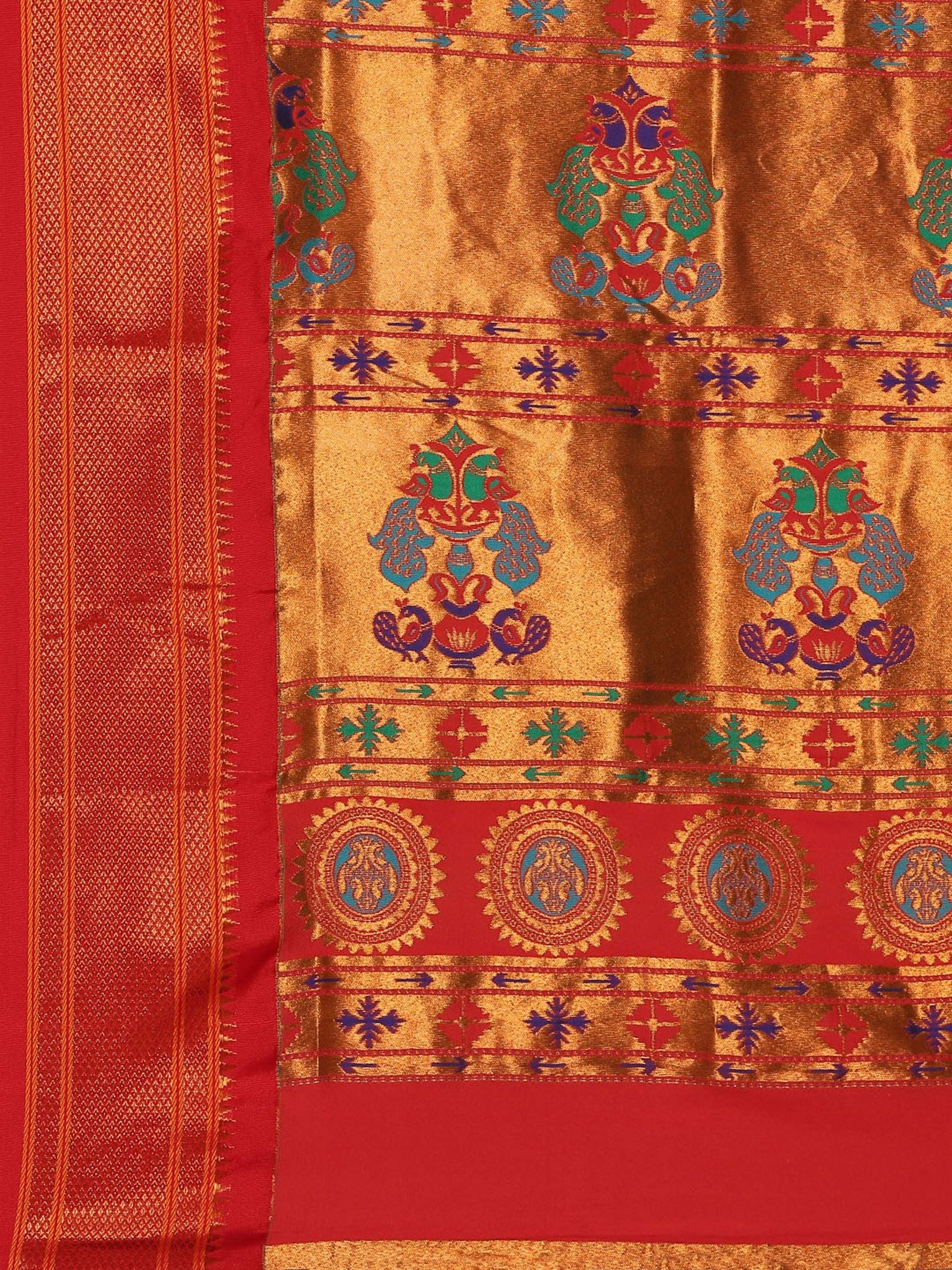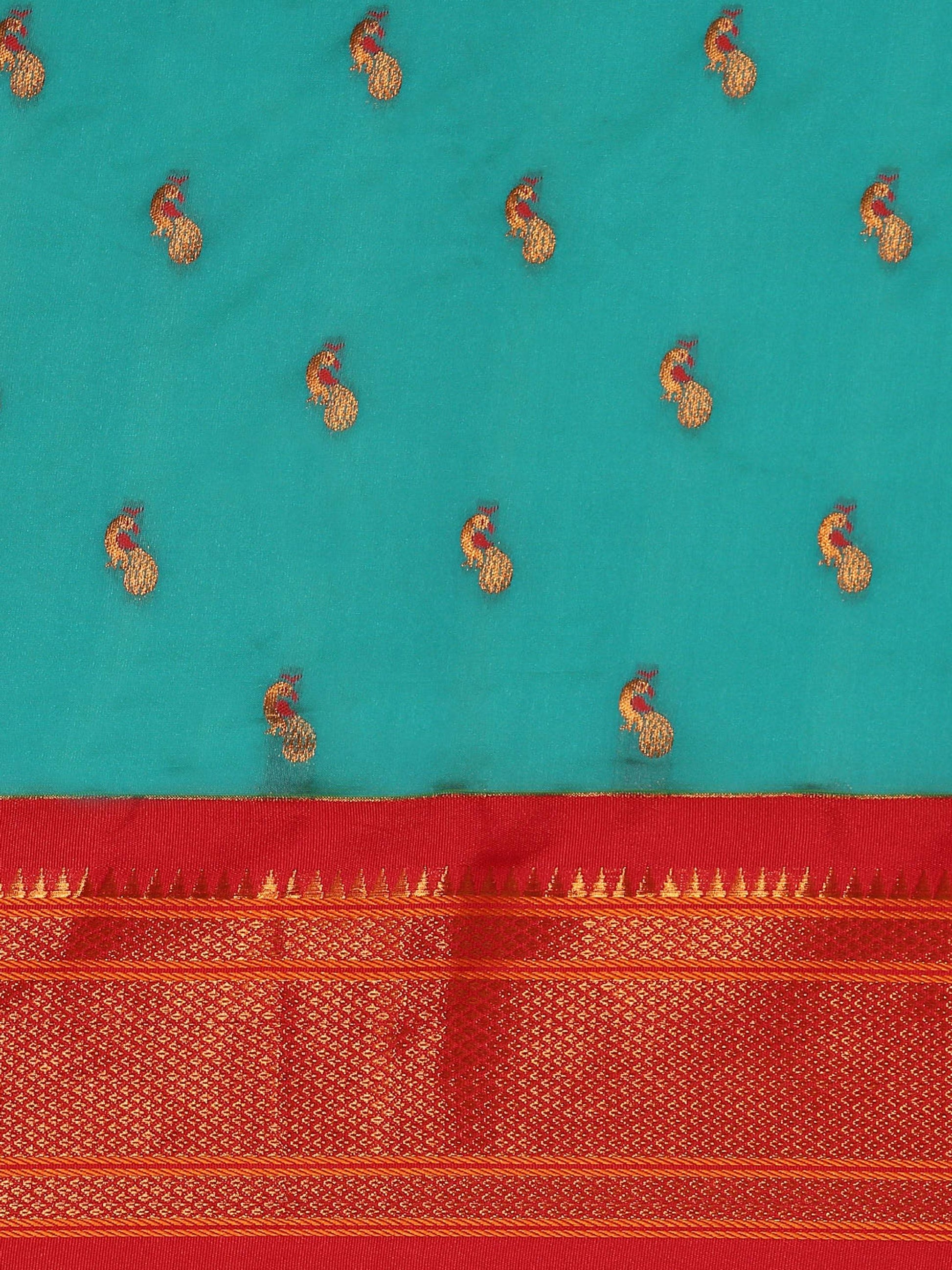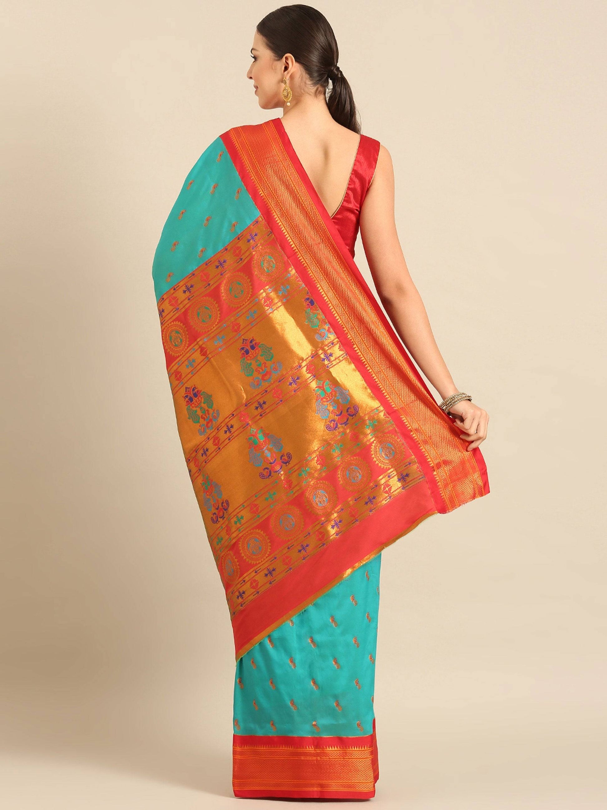 Myra Chintamani Blue & Red Soft Silk Kadiyal Maharani Paithani Saree