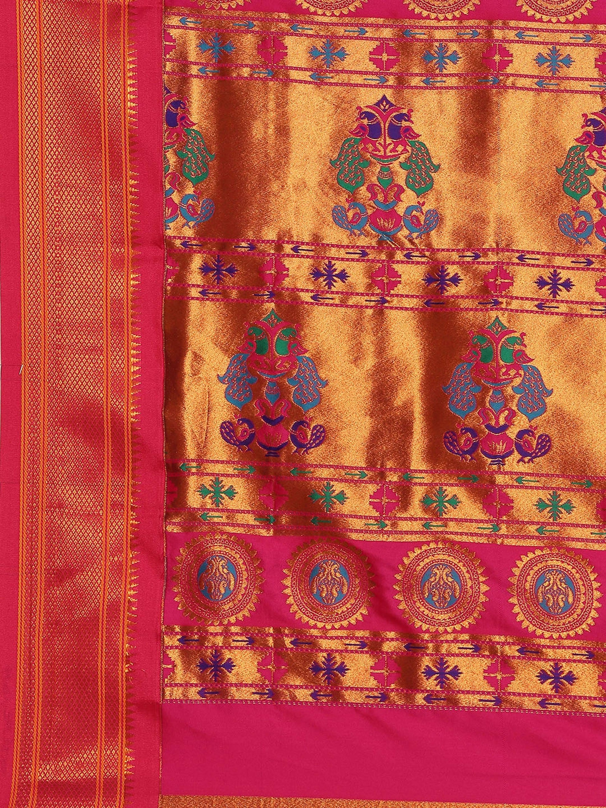Myra Firozi & Pink Soft Silk Kadiyal Maharani Paithani Saree