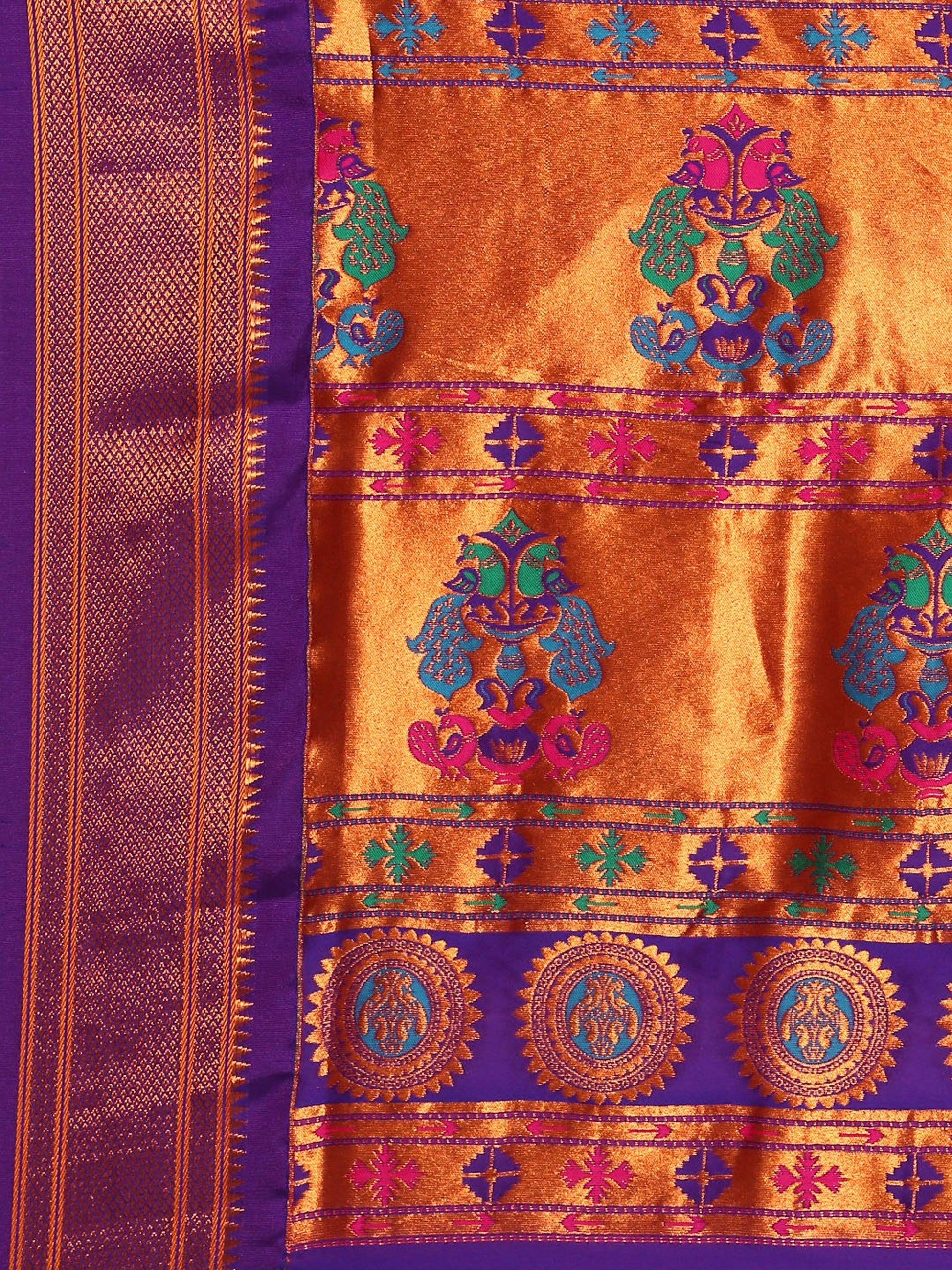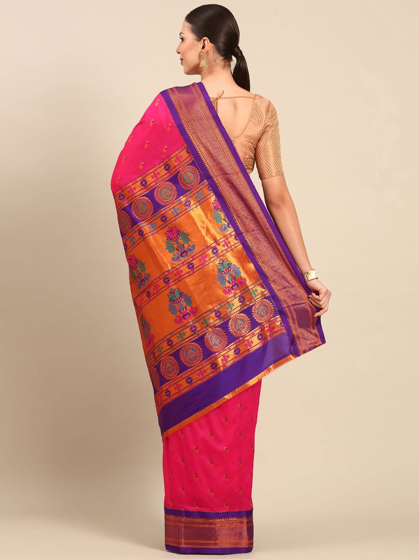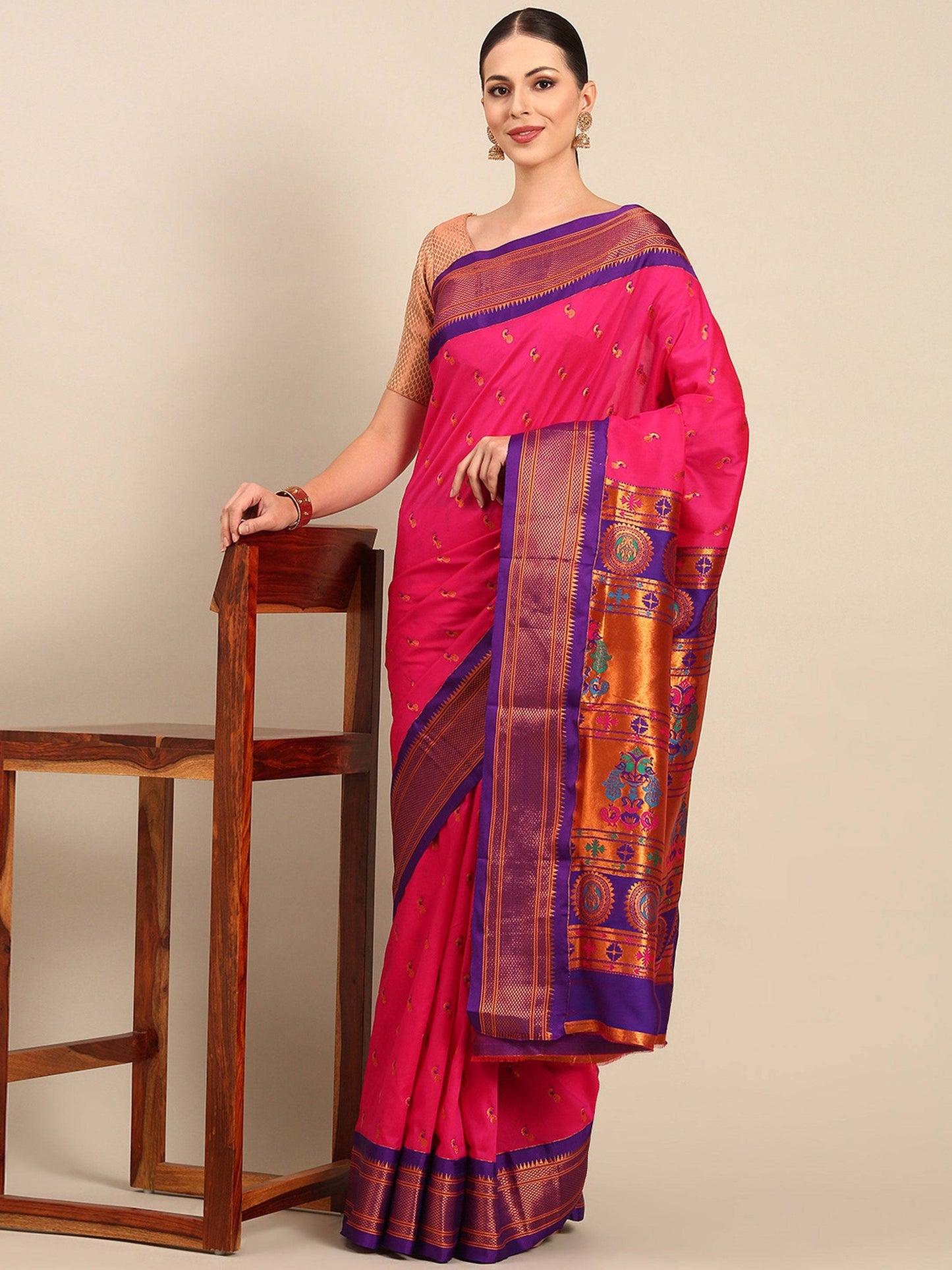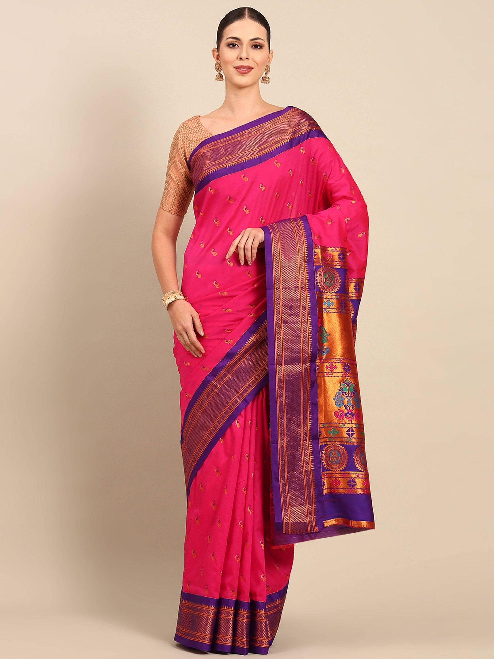 Myra Hot Pink & Violet Soft Silk Kadiyal Maharani Paithani Saree