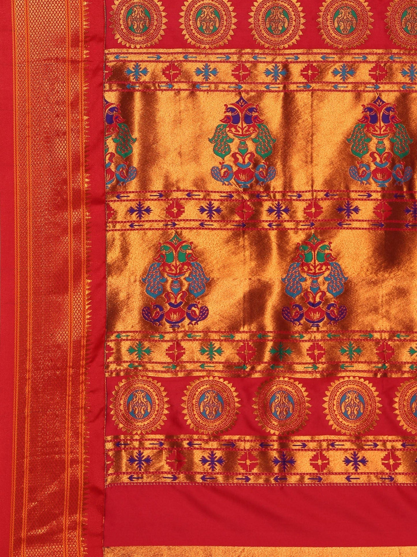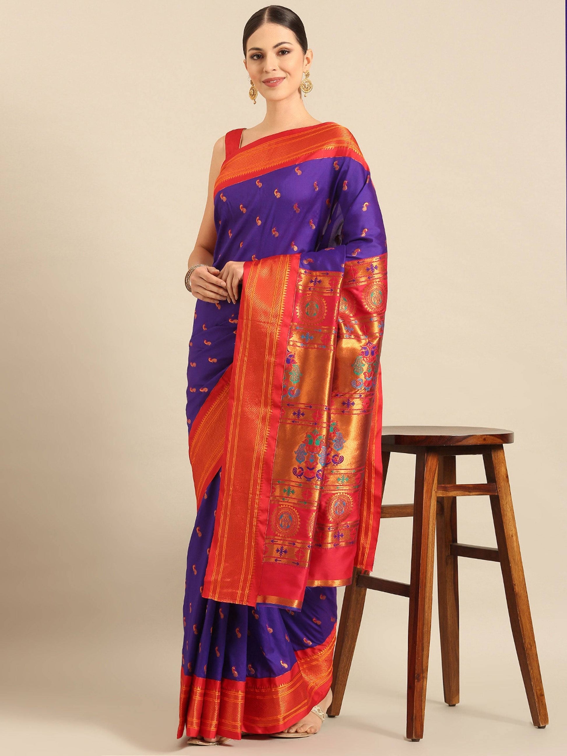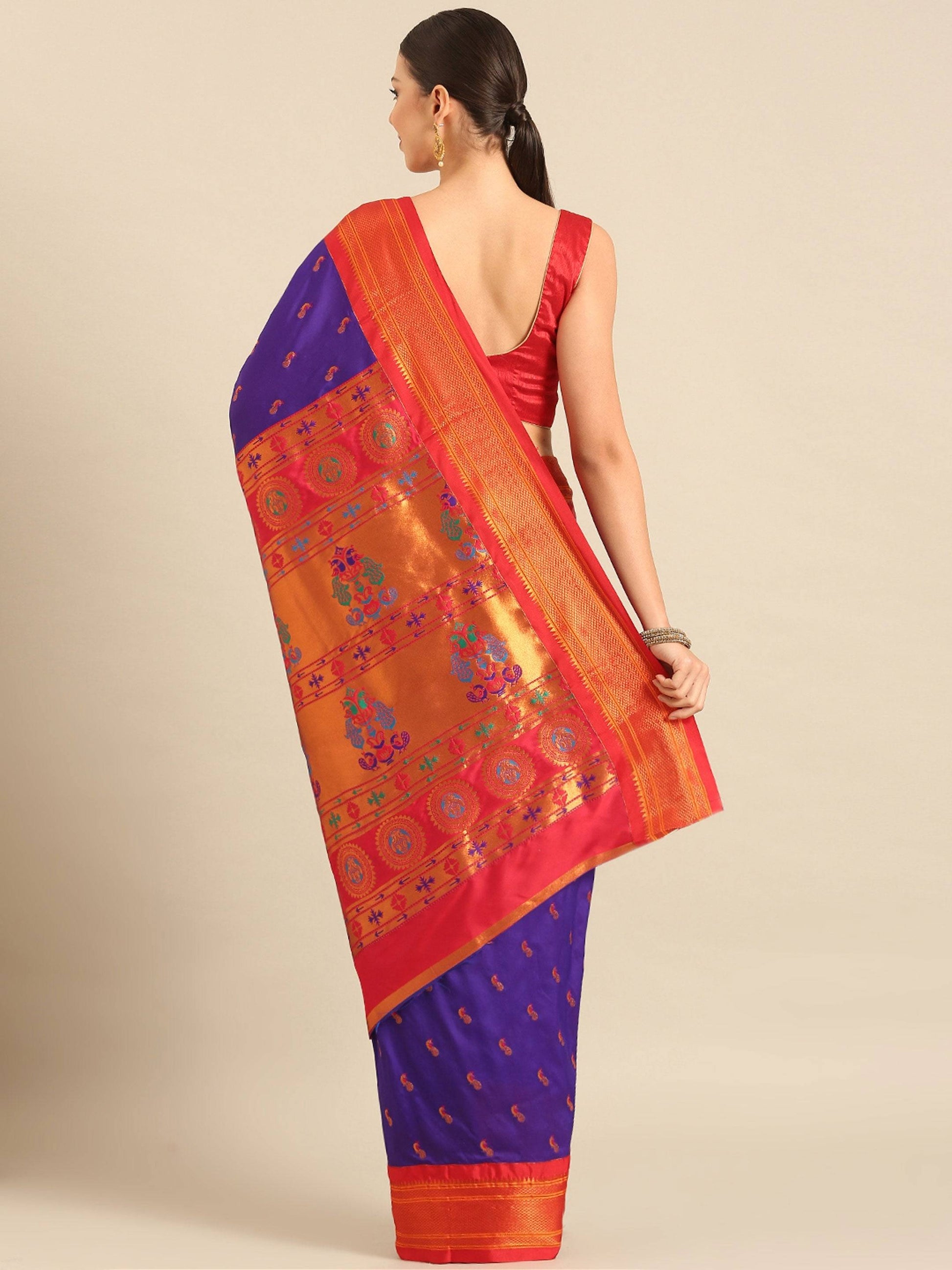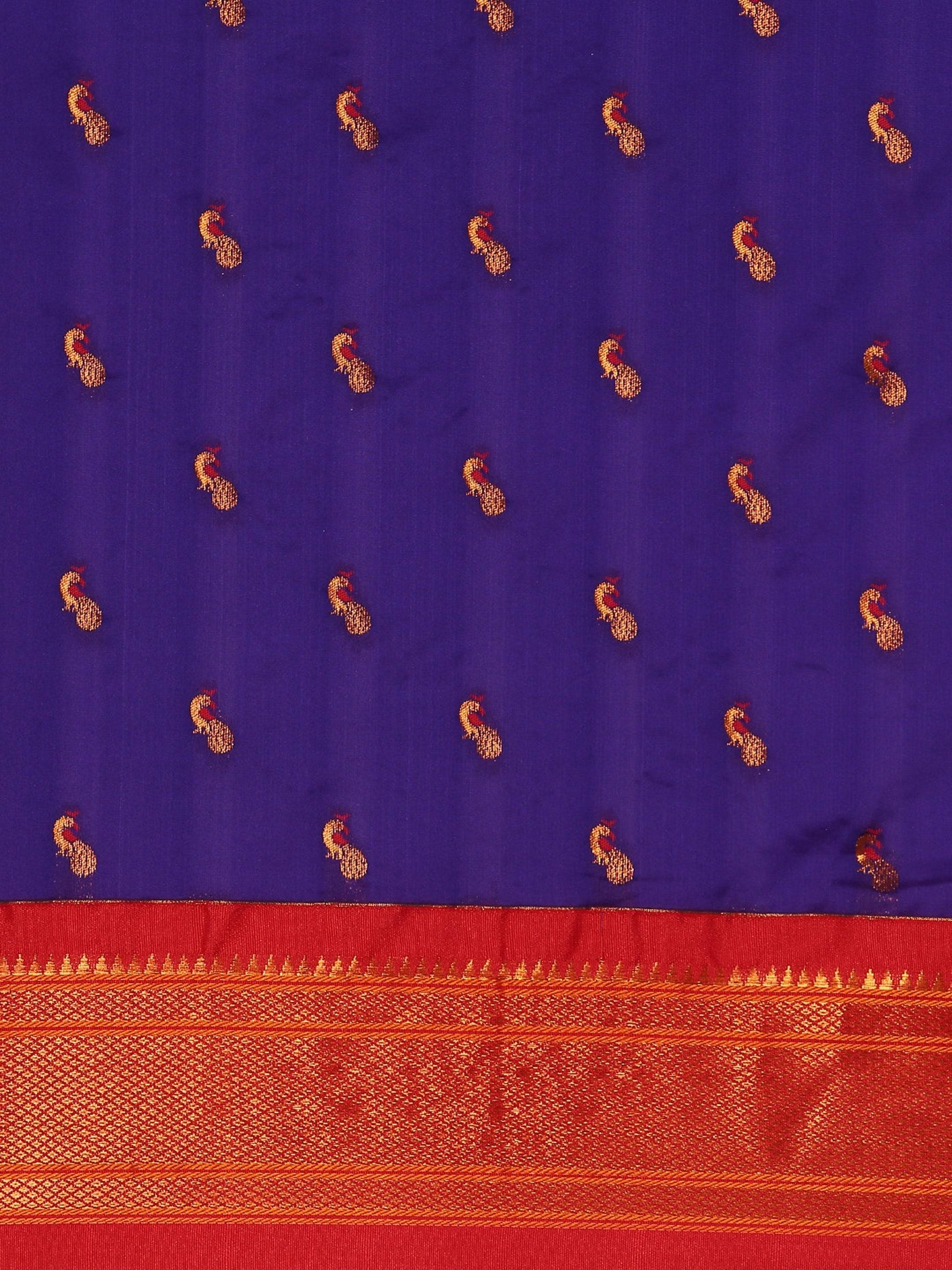 Myra Indigo Blue & Red Soft Silk Kadiyal Maharani Paithani Saree