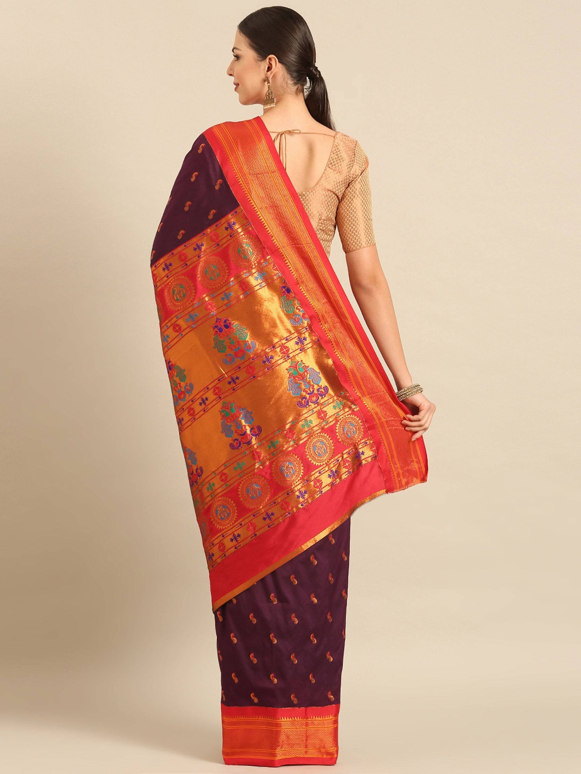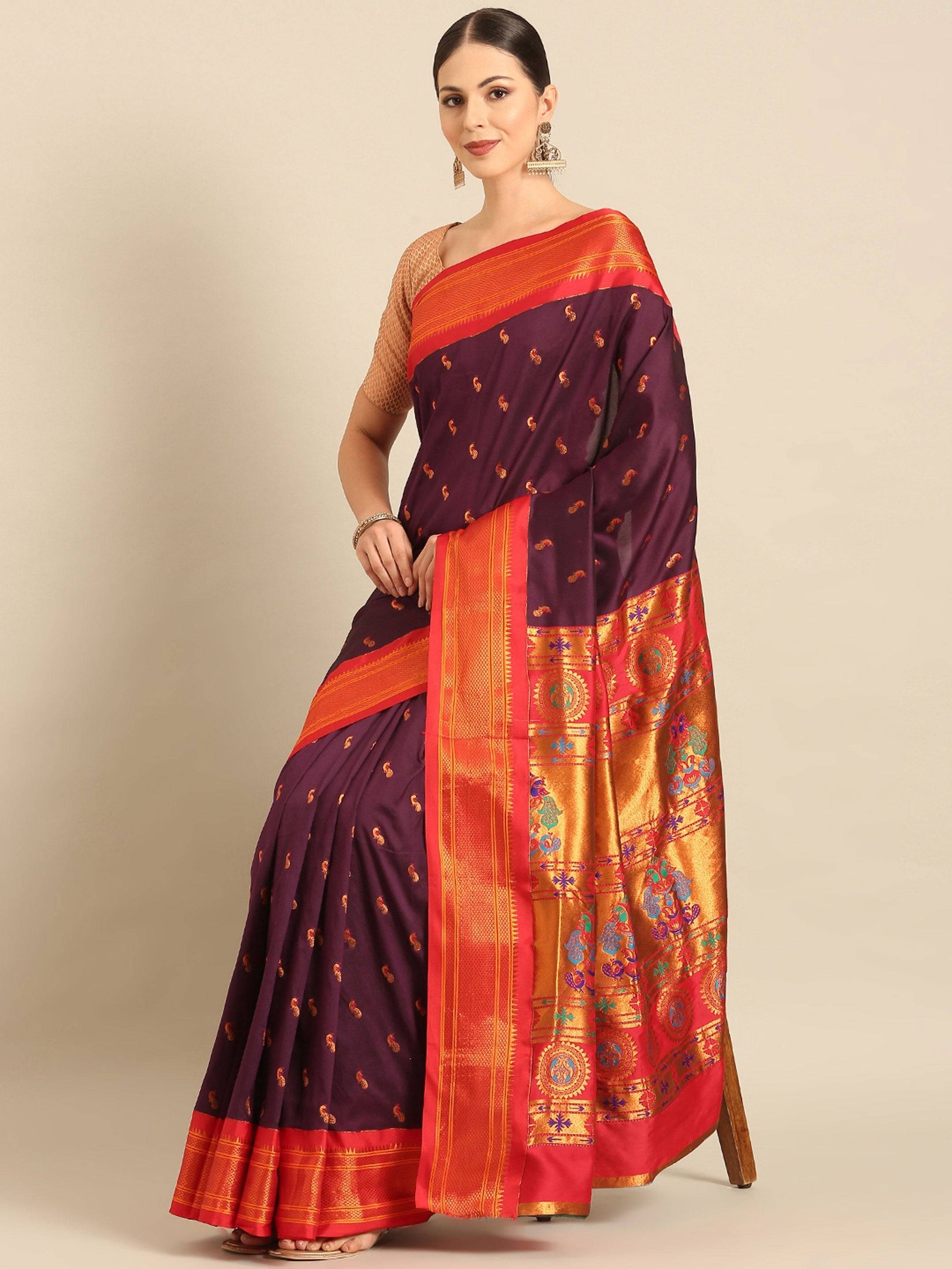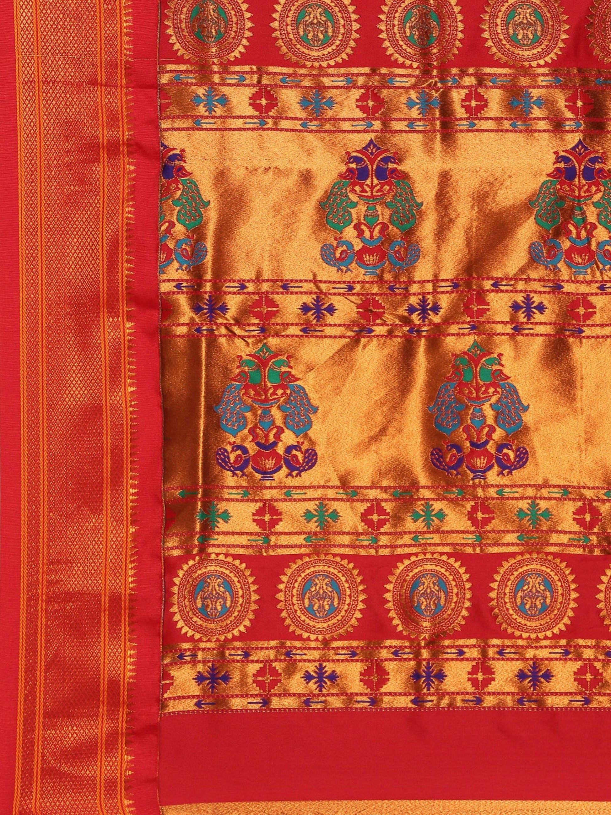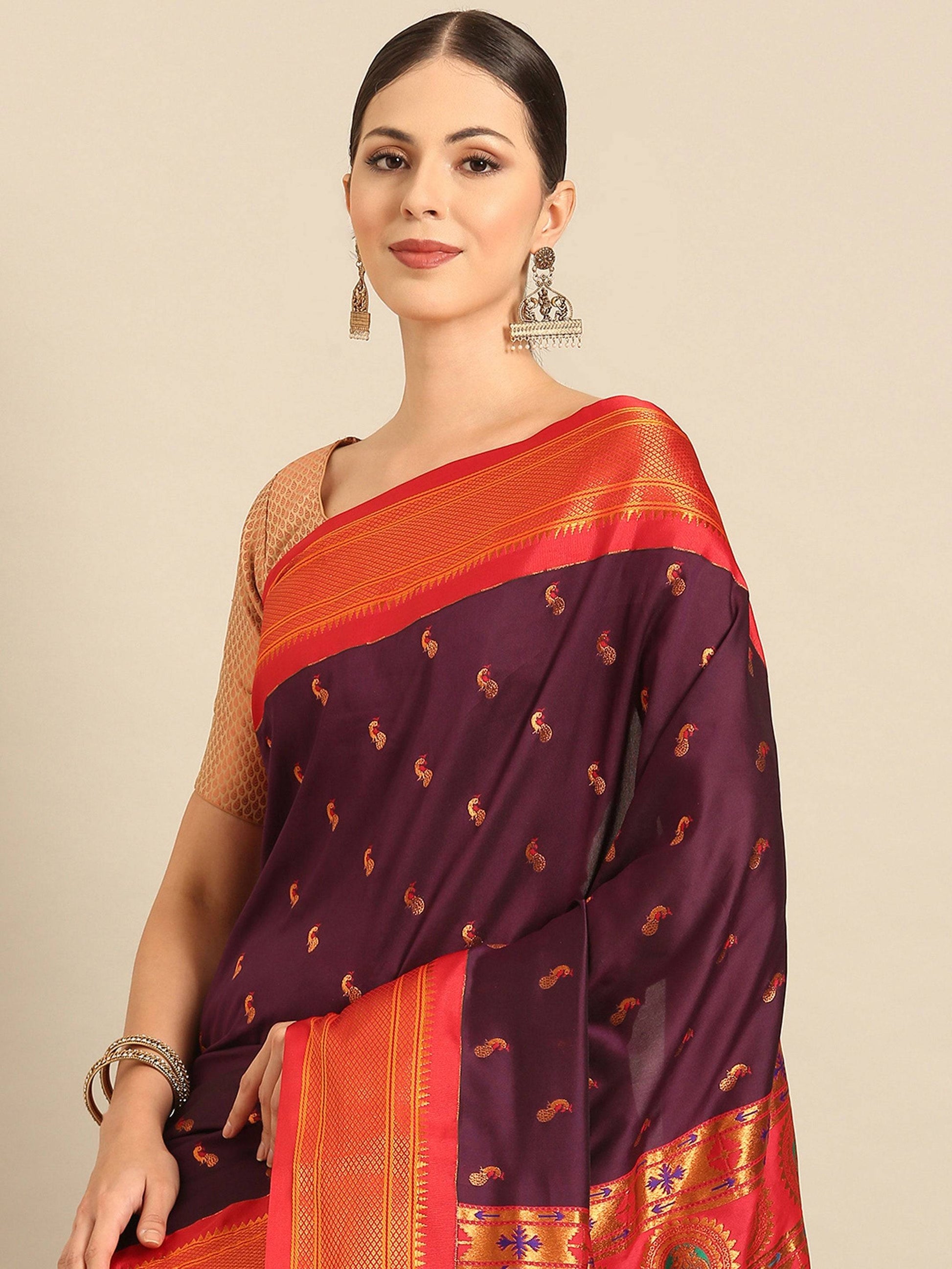 Myra Maroon & Red Soft Silk Kadiyal Maharani Paithani Saree