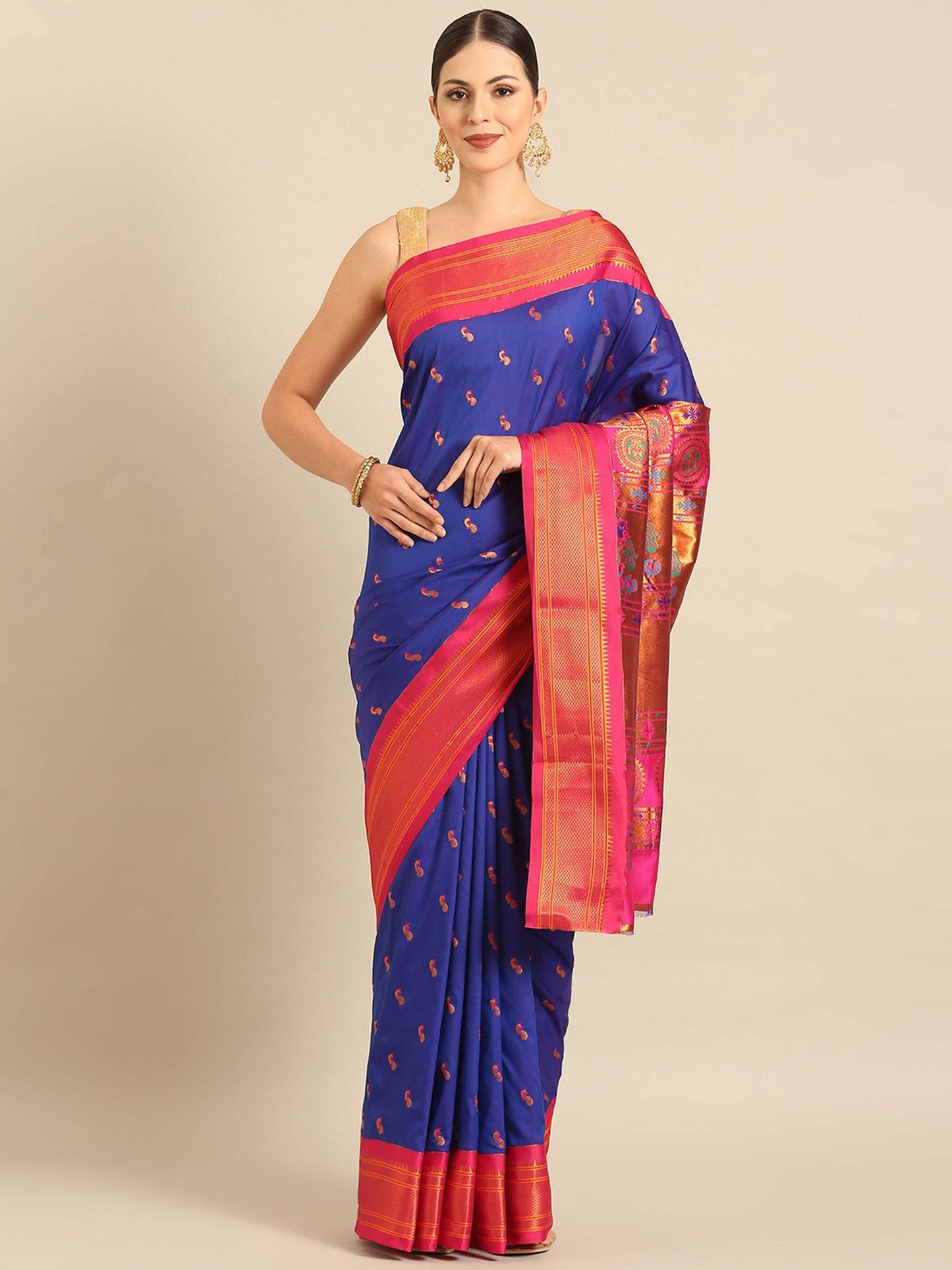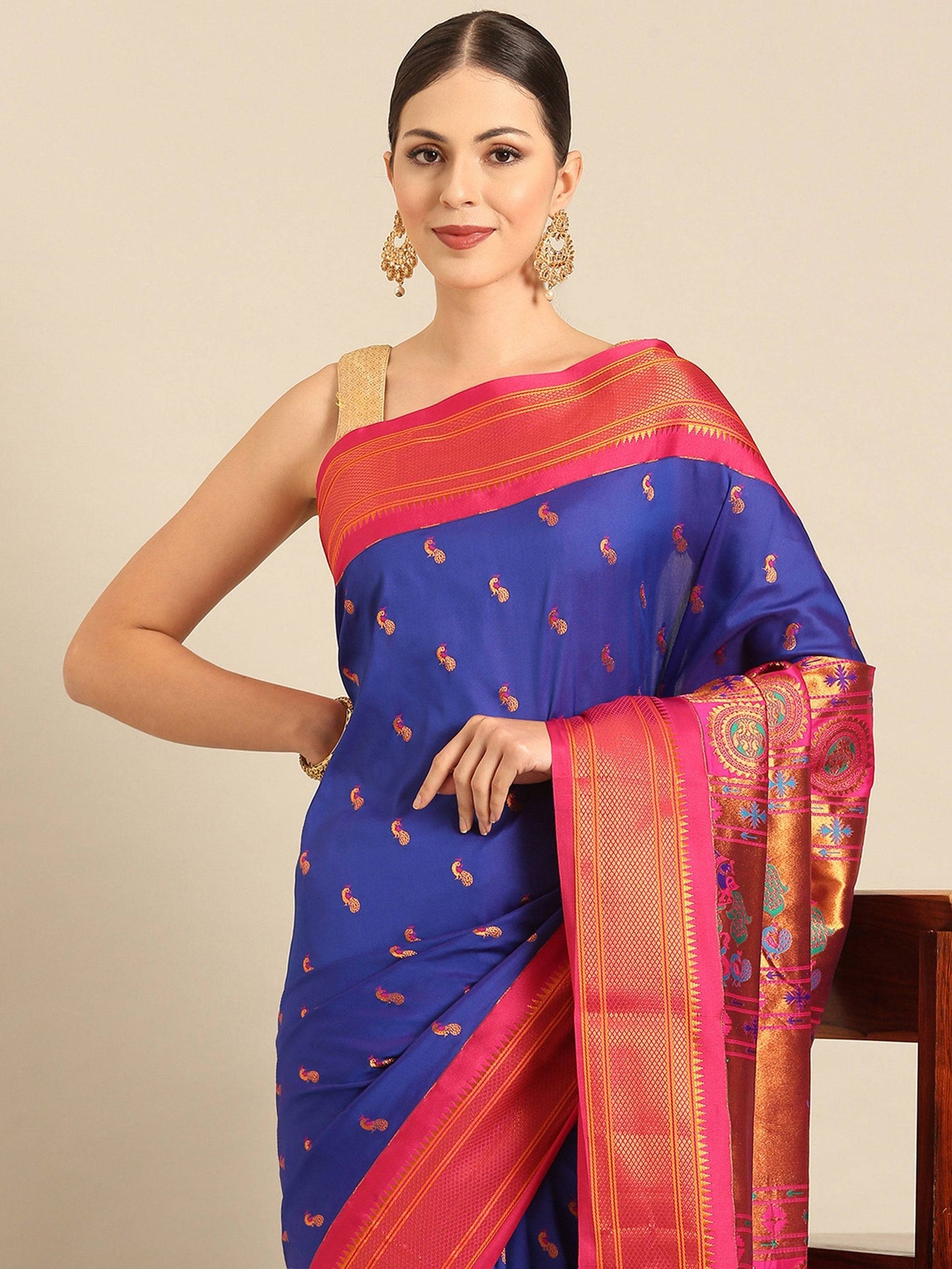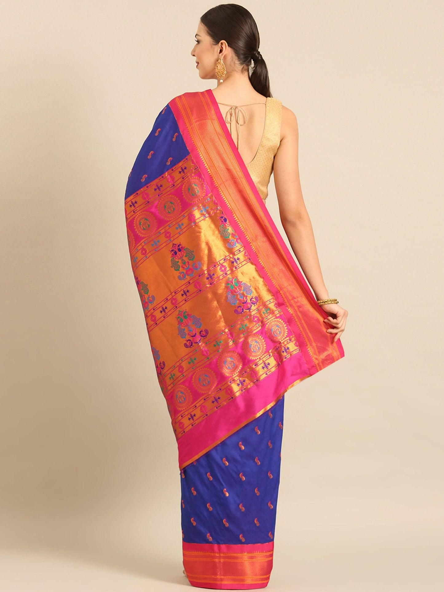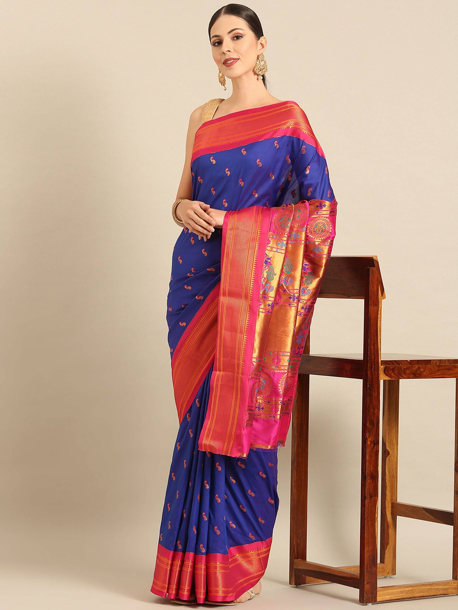 Myra Royal Blue & Pink Soft Silk Kadiyal Maharani Paithani Saree