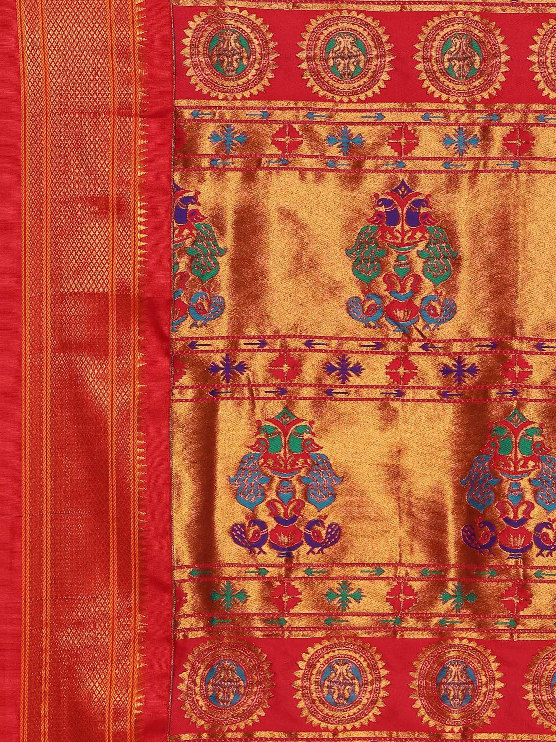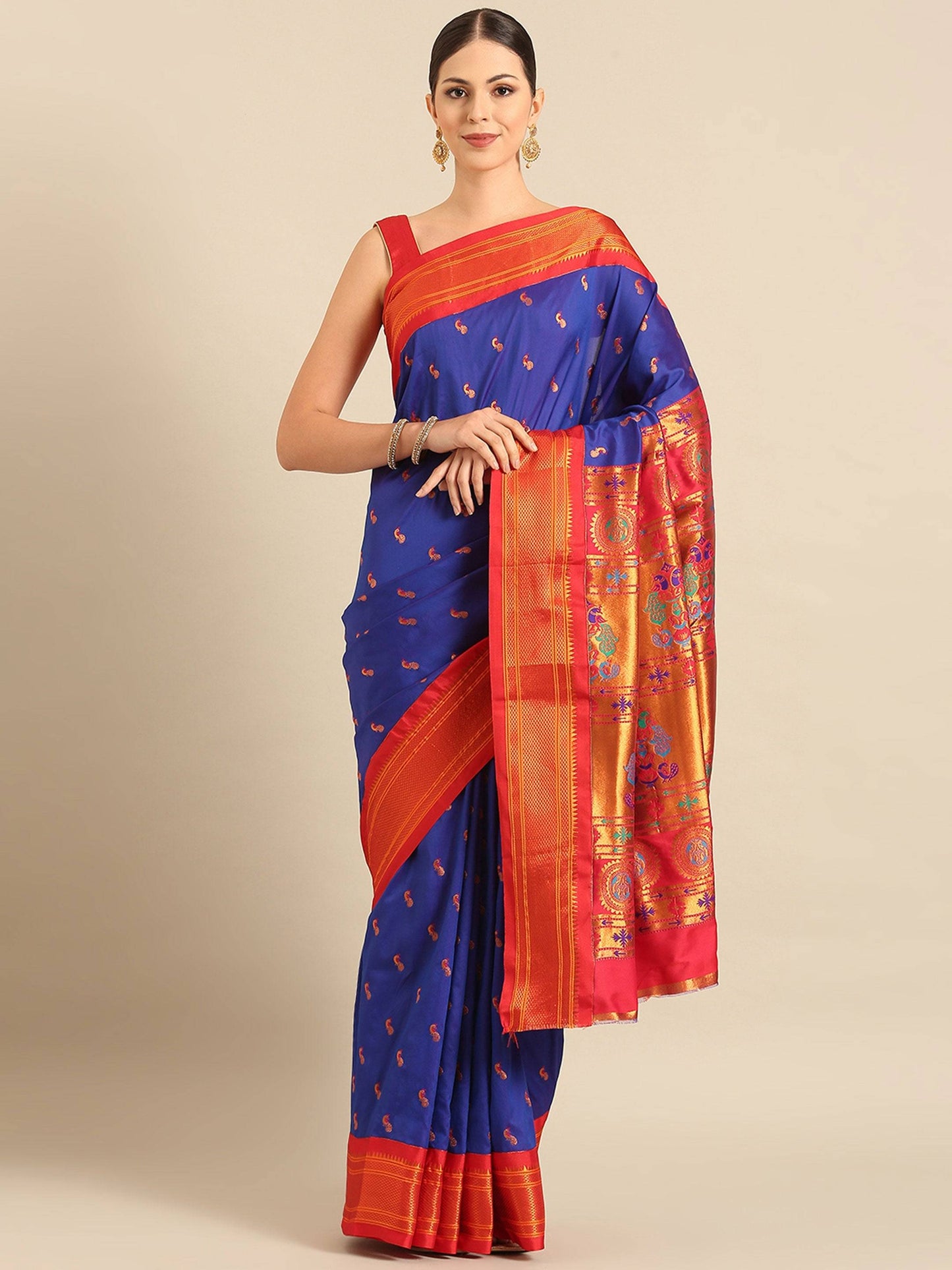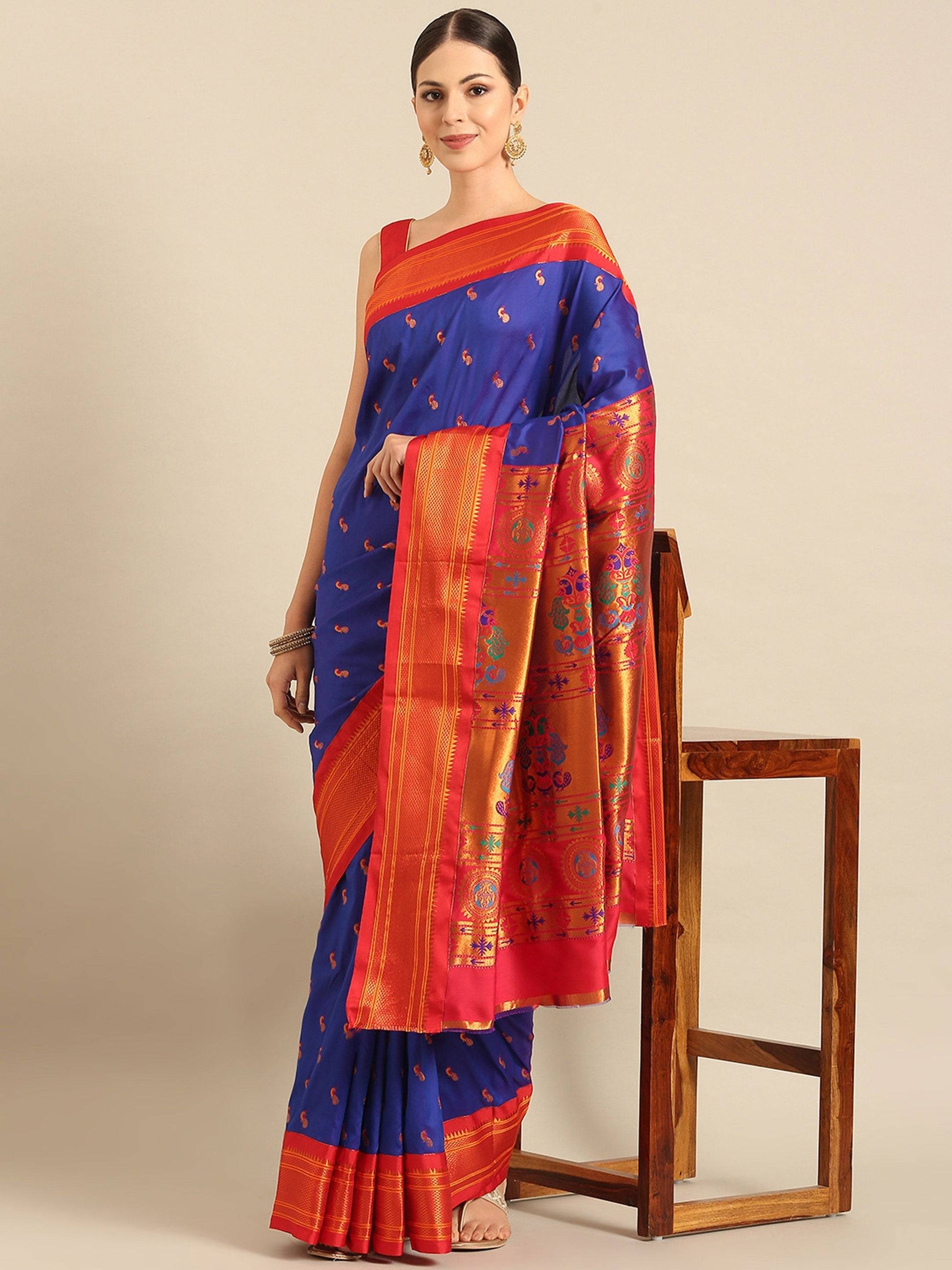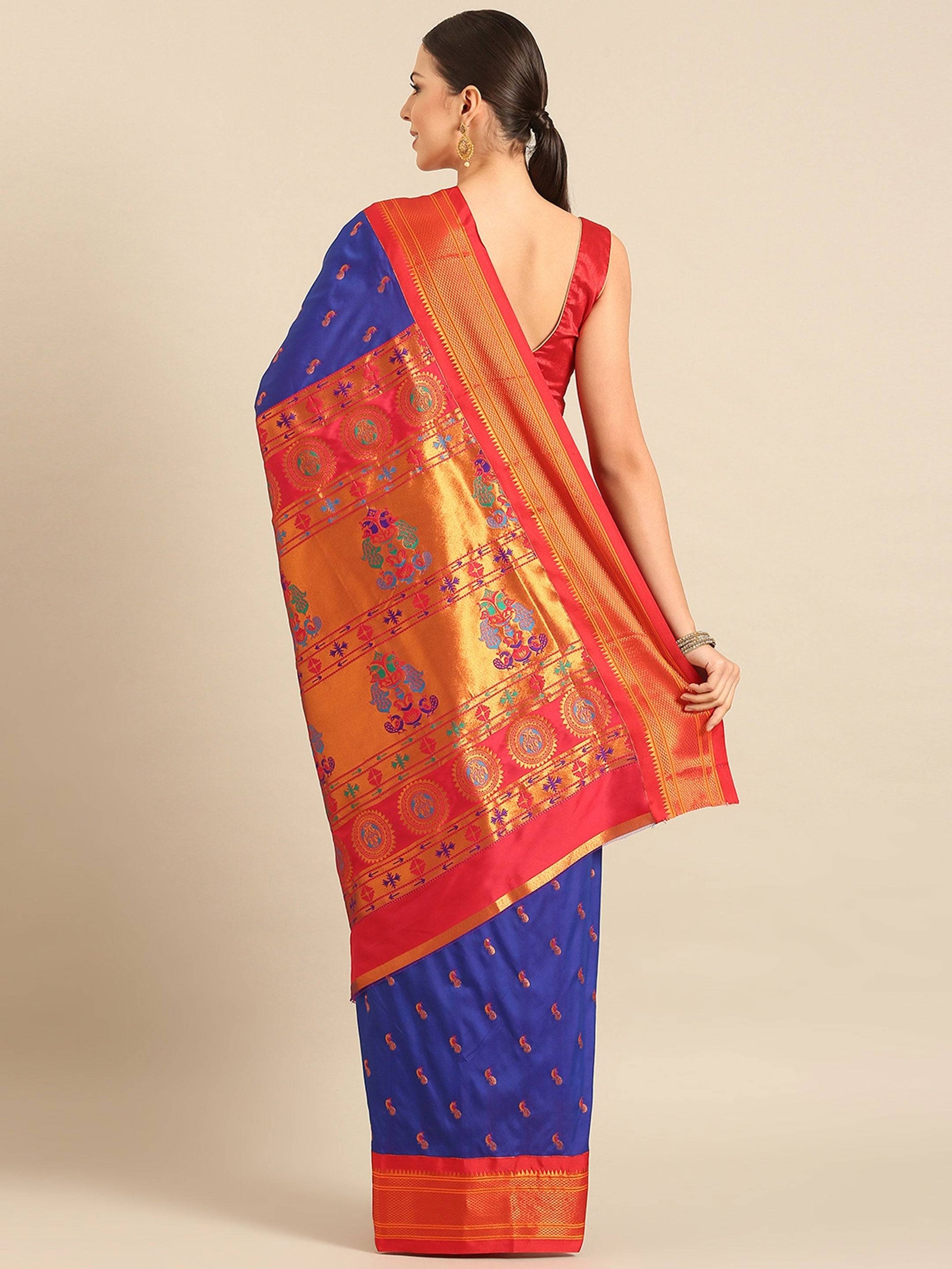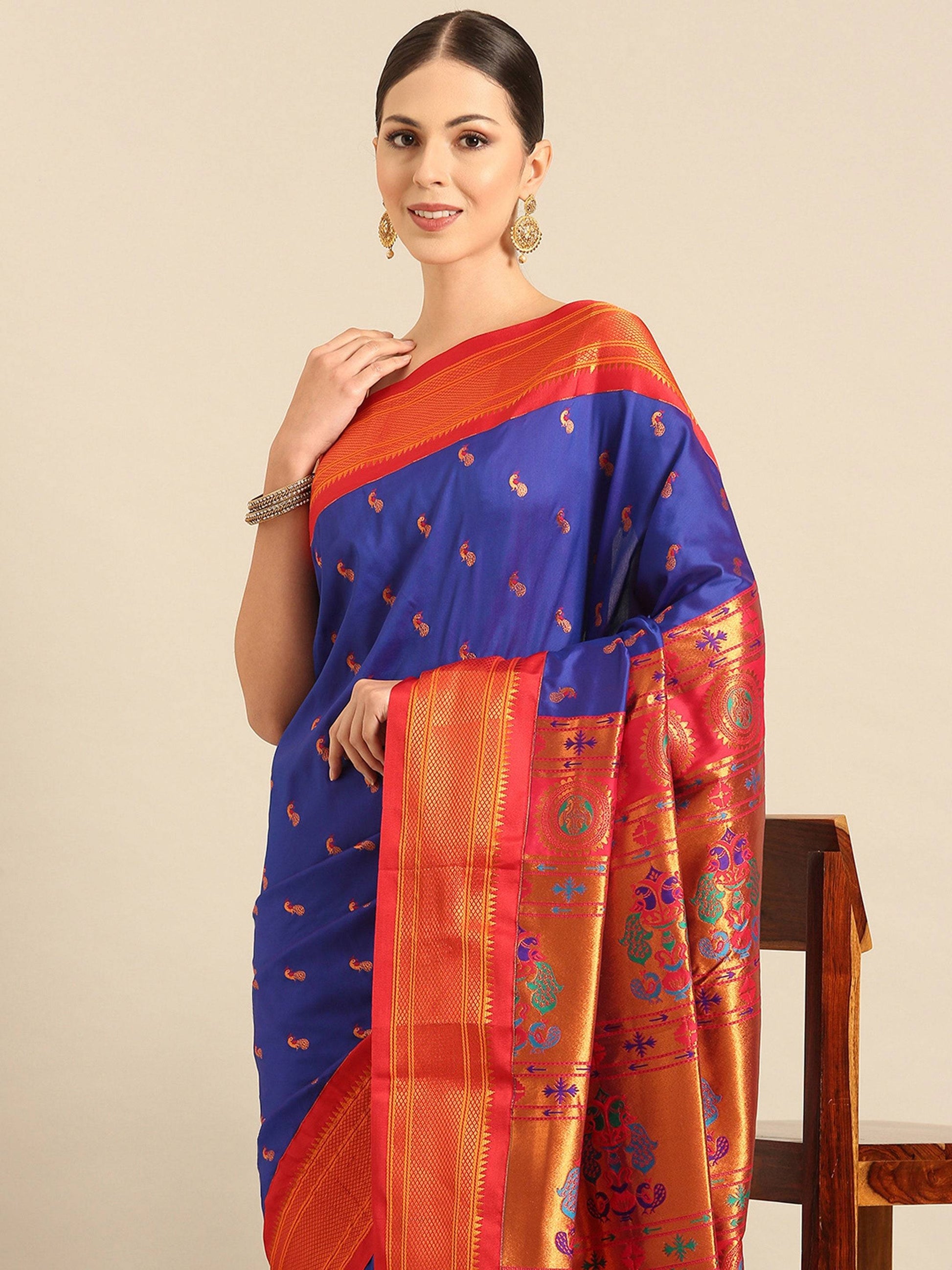 Myra Royal Blue & Red Soft Silk Kadiyal Maharani Paithani Saree