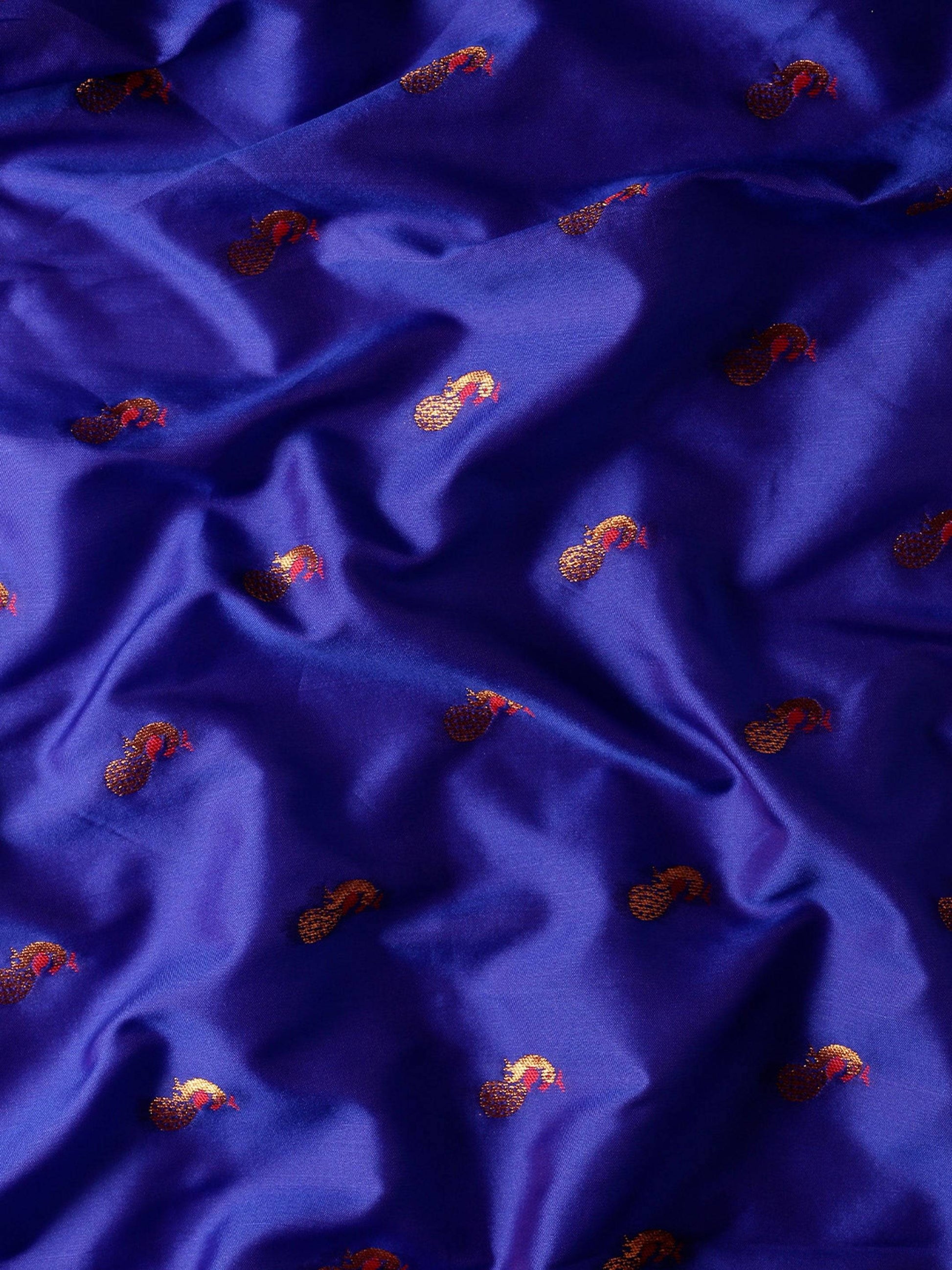 Explore The Collection Of Beautifully Designed Royal Blue & Red Soft Silk Fancy Pallu Paithani Saree With Blouse Piece From Varkala Silk Sarees. This Luxurious Fancy Paithani Saree, Crafted In A Soft Silk Blend With 70% Polyester And 30% Silk, Is Perfect For Special Occasions Like Weddings, Parties, And Festivals. The Saree Measures 5.5 Meters With A 0.8-Meter Blouse Piece And Has A Graceful Width Of 1.16 Meters. Its Stunning Kadiyal Border Features Intricate Checks, While The Body Is Adorned With Delicate Copper Zari Peacock Motifs. The Woven Pallu Showcases Resplendent Zari And Multicolor Resham Silk Thread Work, Embodying Traditional Elegance. For Best Results, Dry Clean For The First Wash, Followed By A Gentle Hand Wash.
