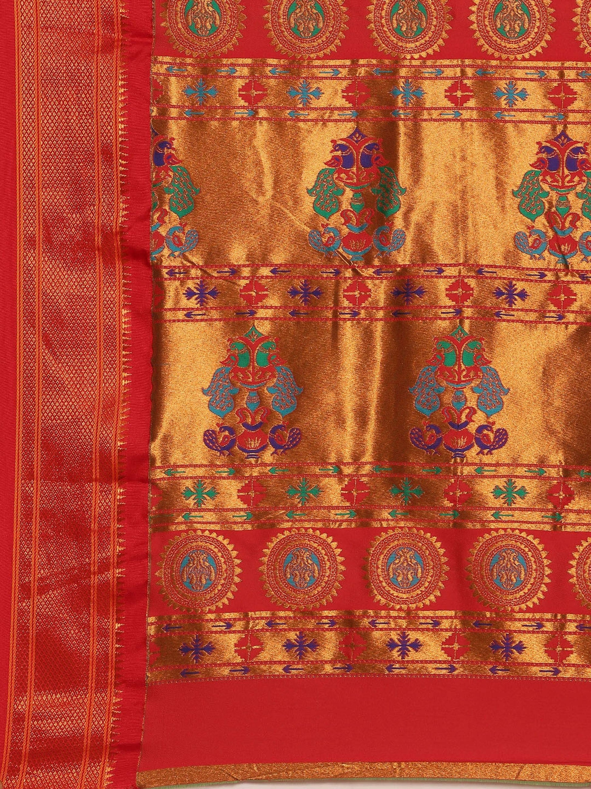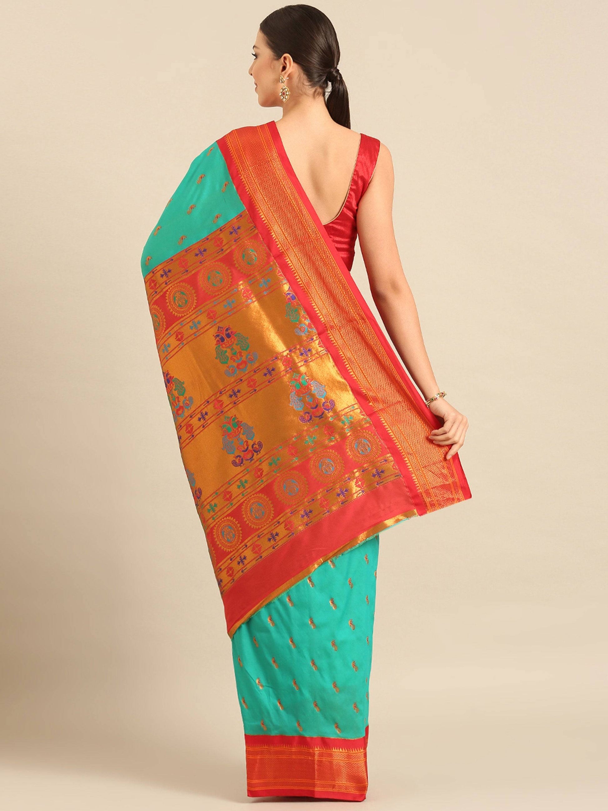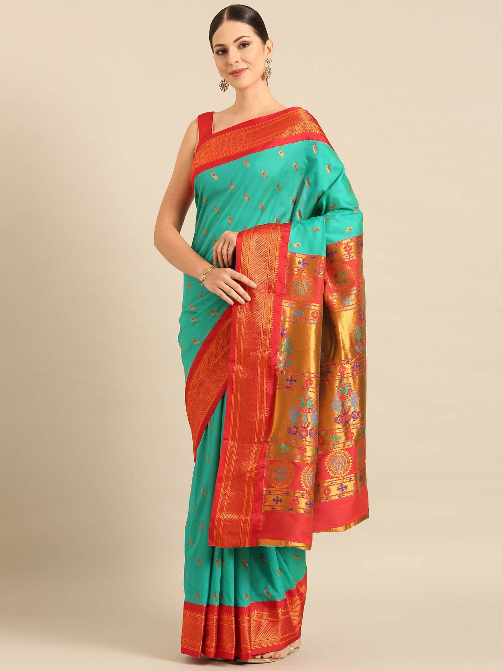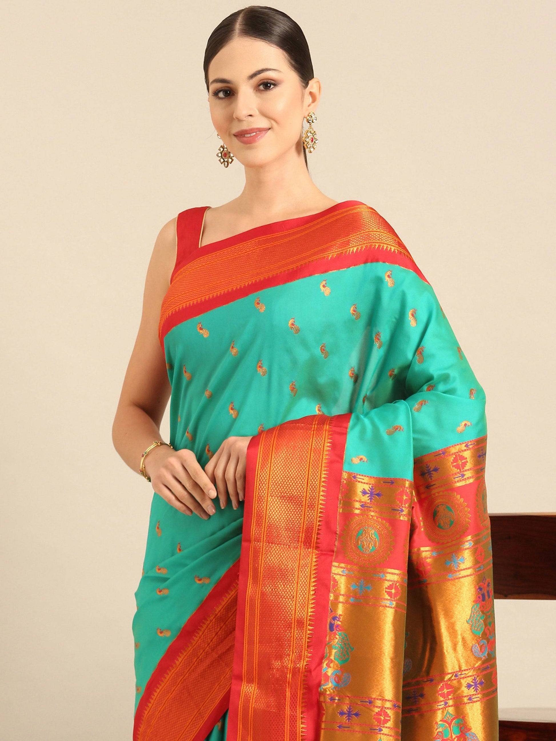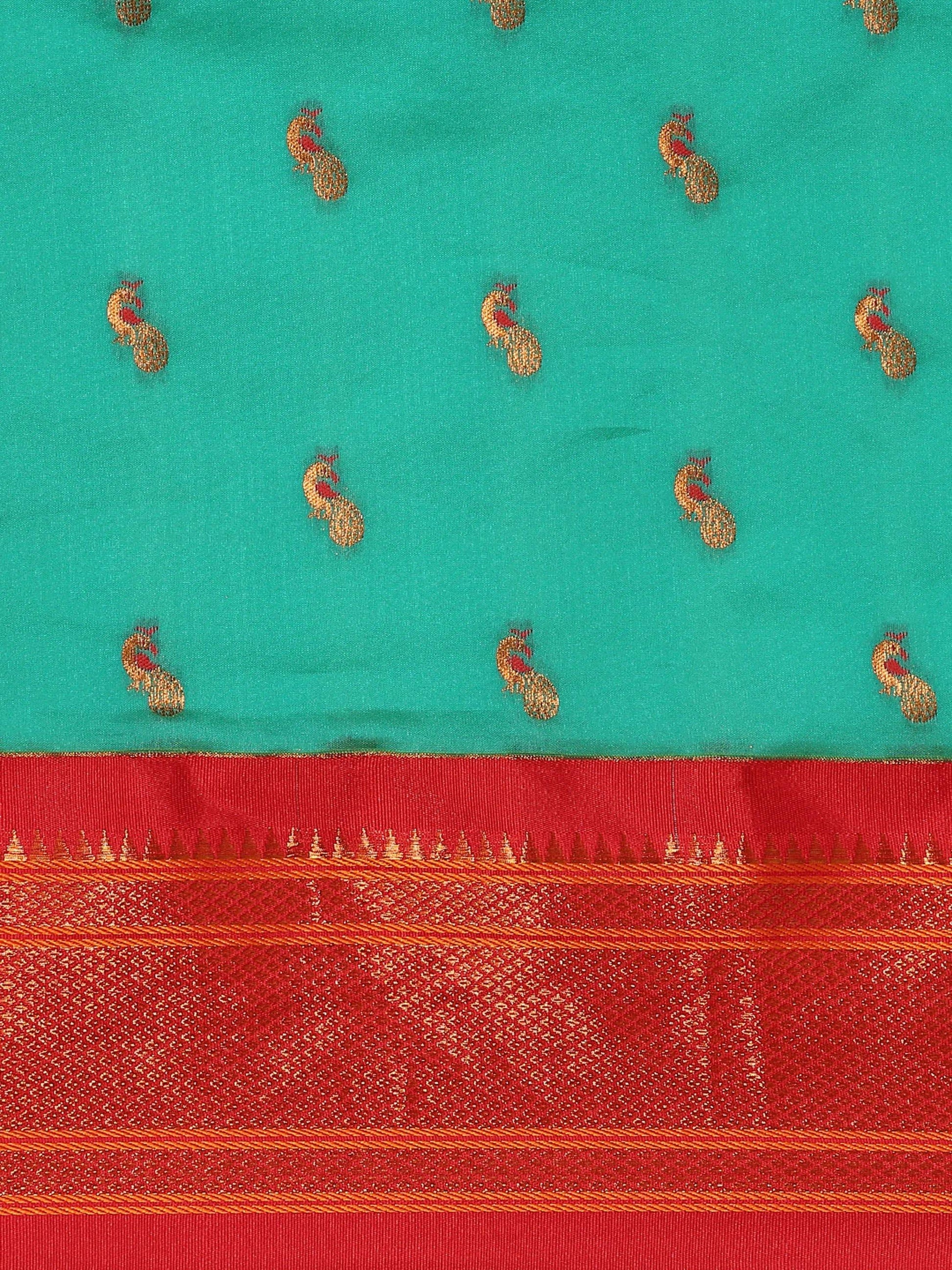 Myra Sea Green & Red Soft Silk Kadiyal Maharani Paithani Saree