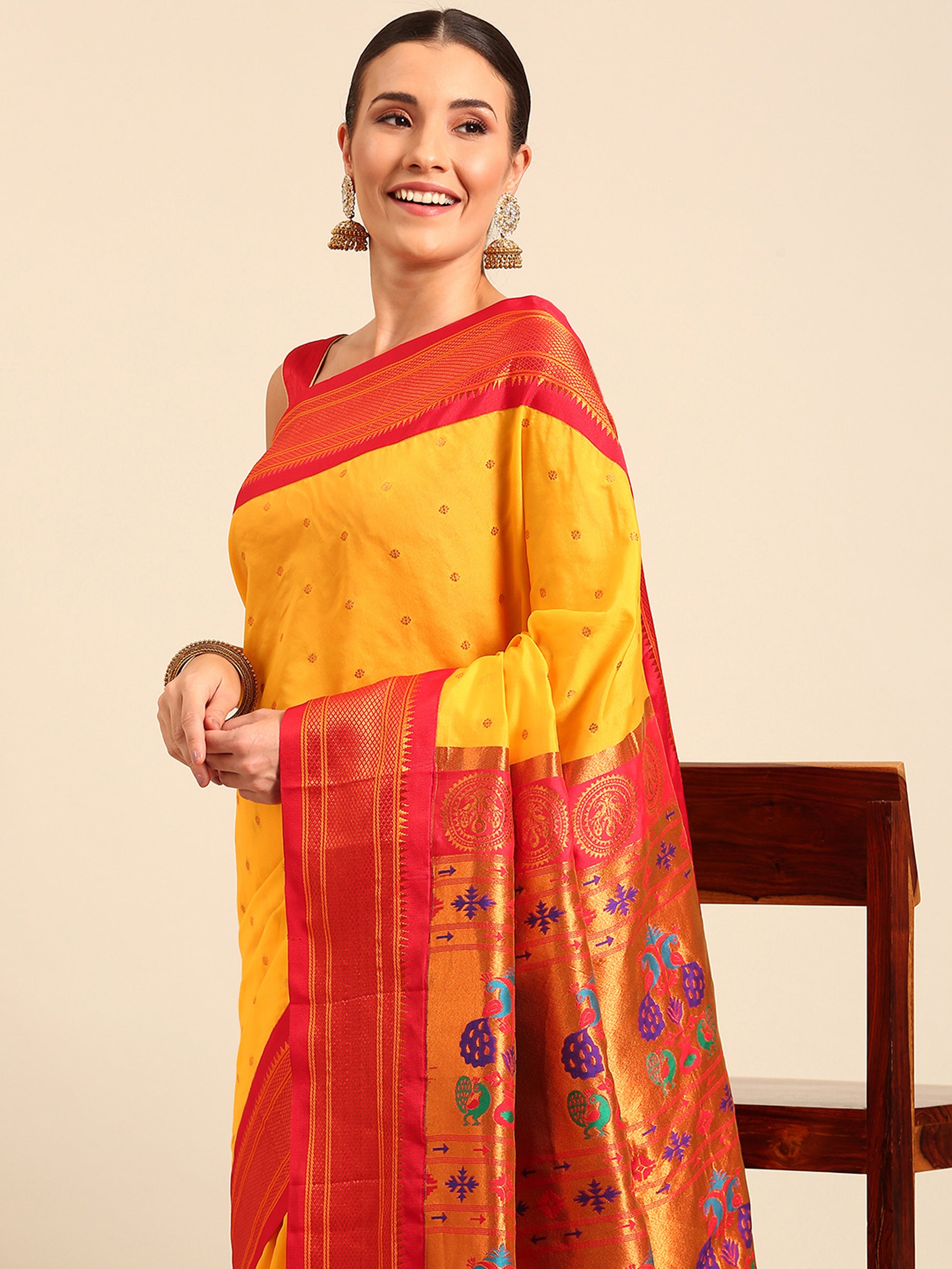 Neha Haldi & Red Soft Silk Maharani Paithani Saree
