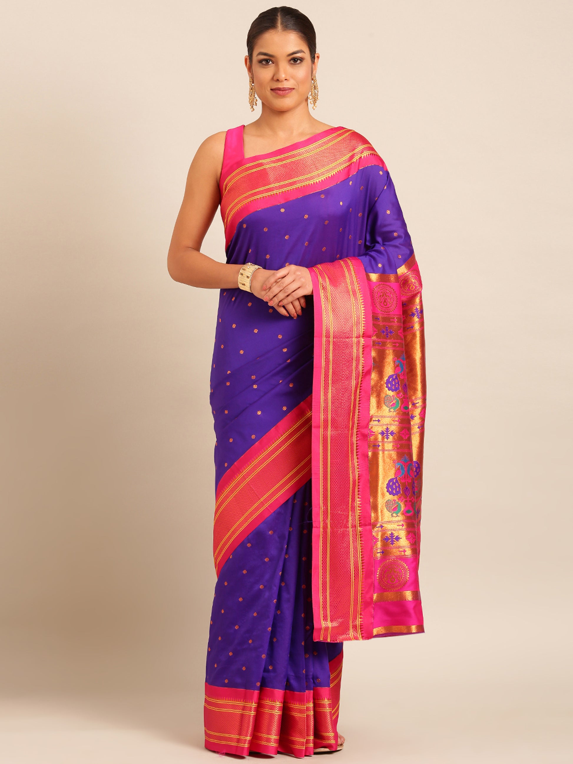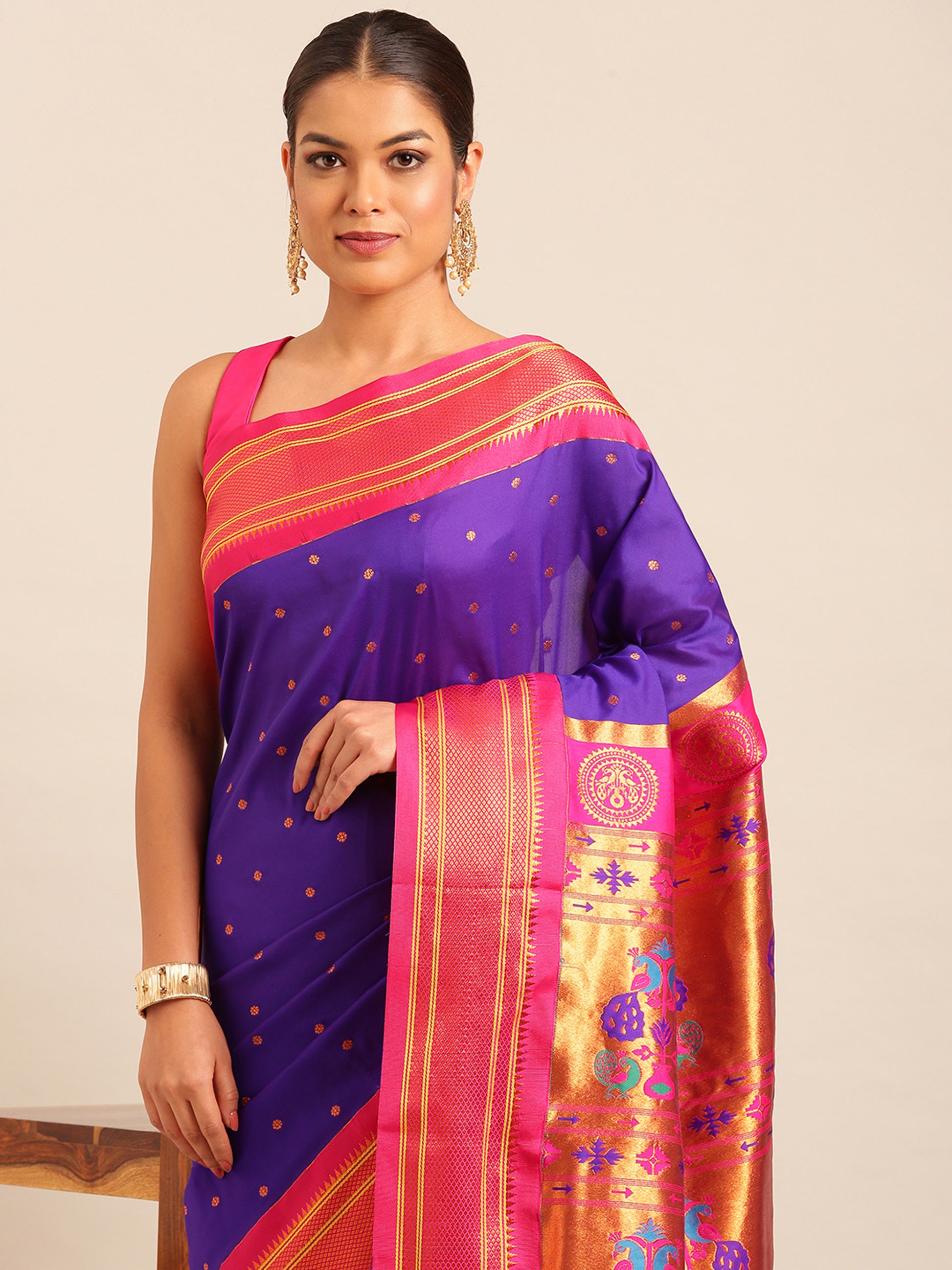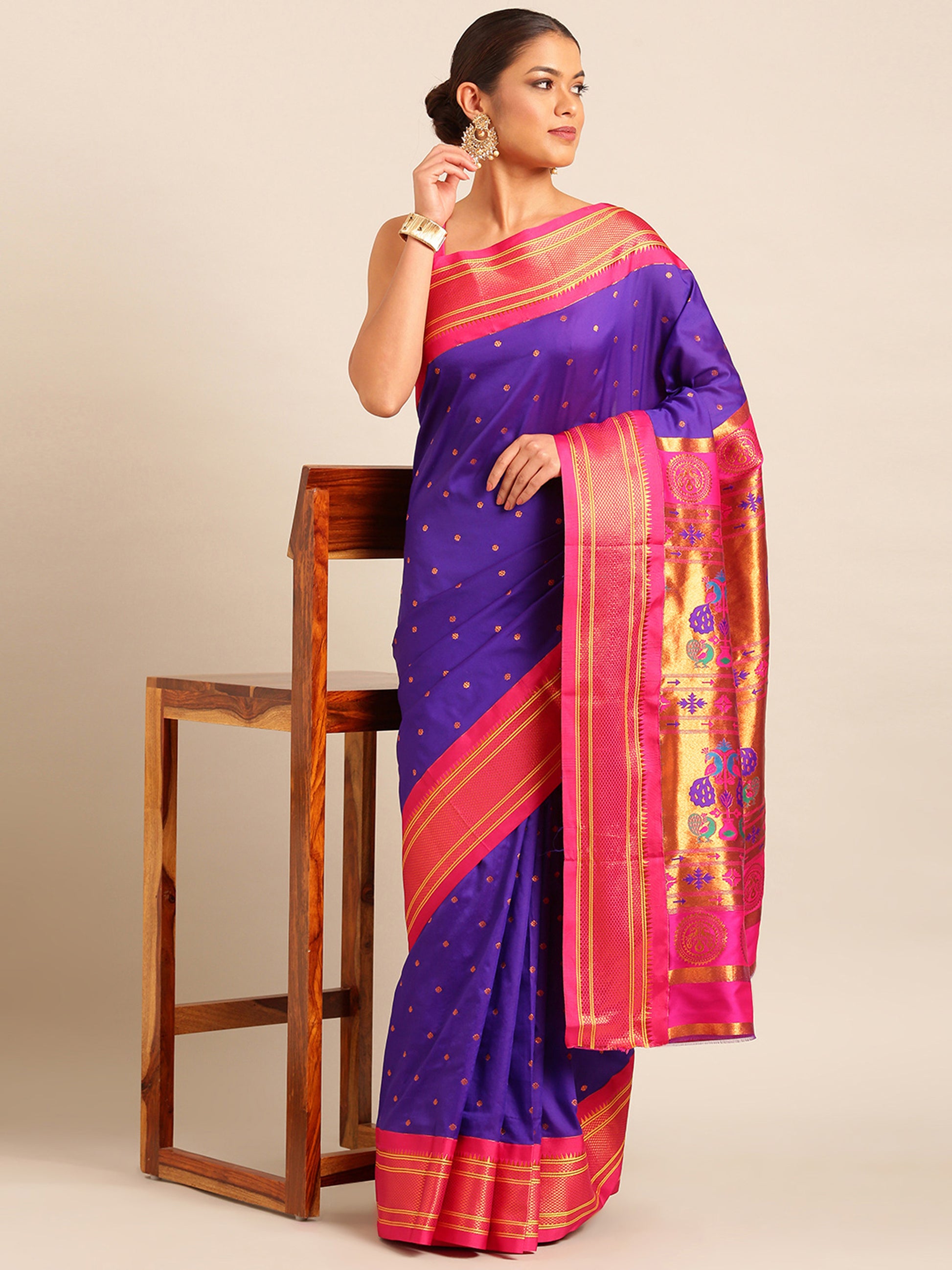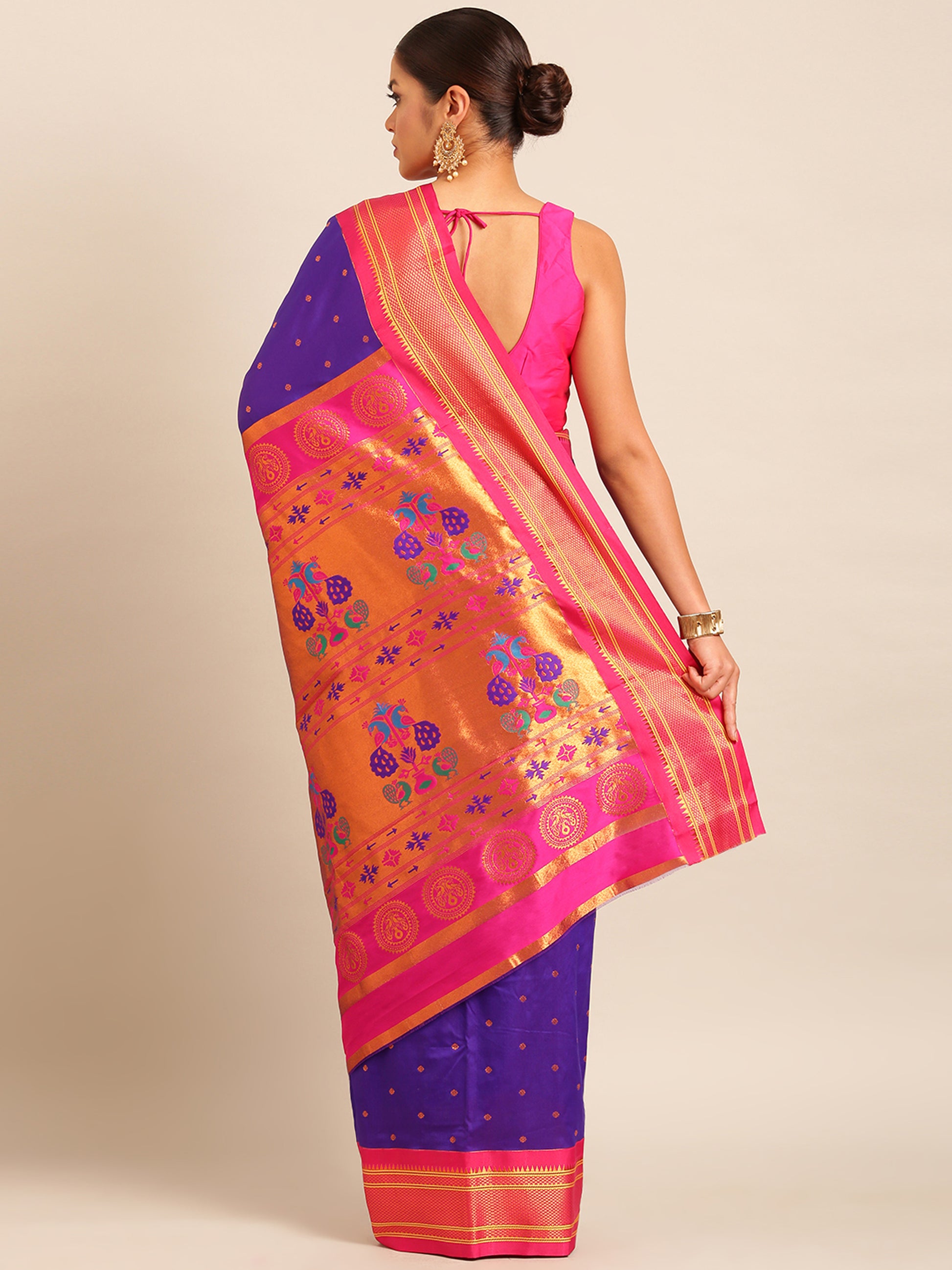 Neha Indigo Blue & Pink Soft Silk Maharani Paithani Saree