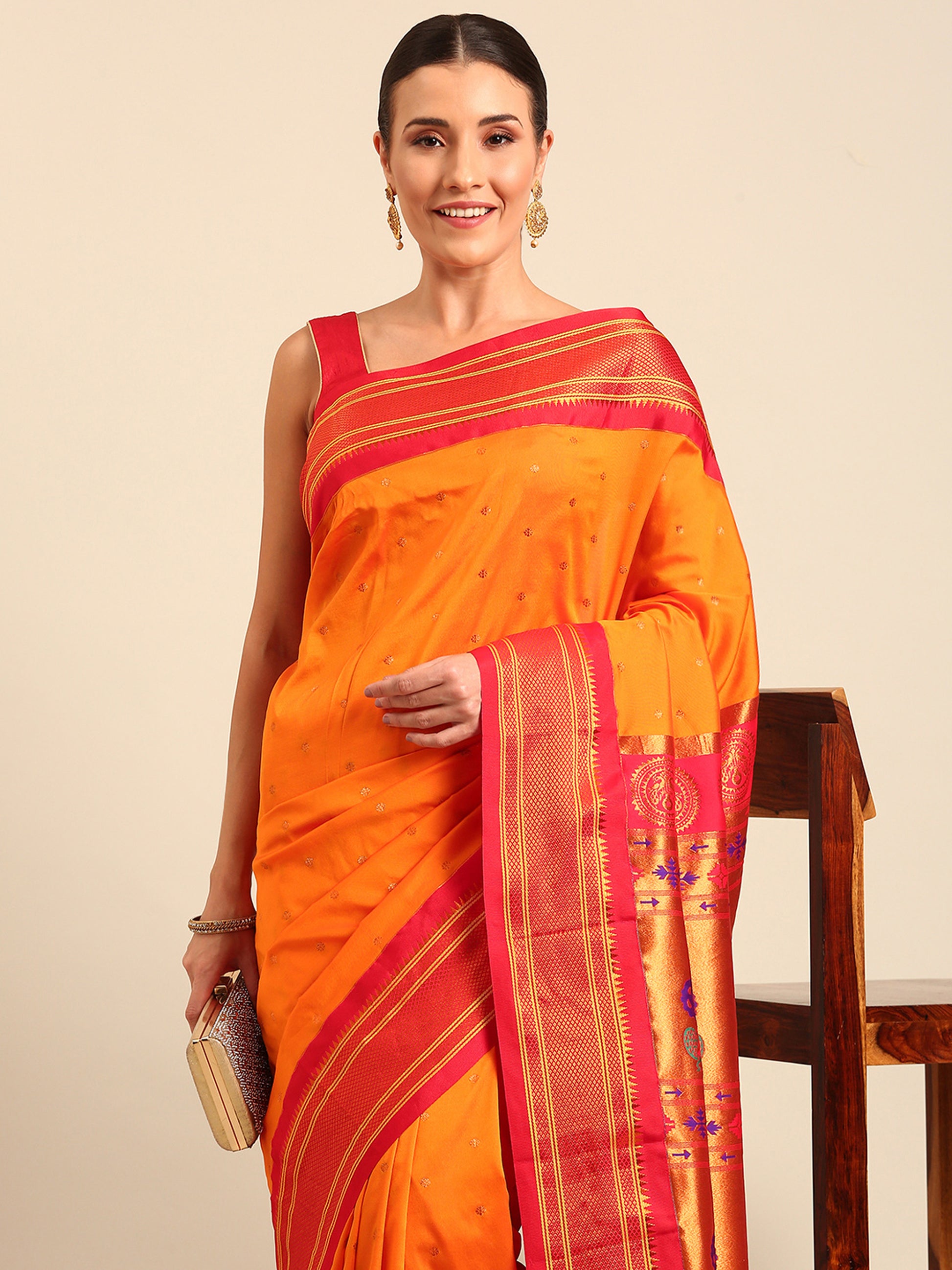 Neha Orange & Red Soft Silk Maharani Paithani Saree