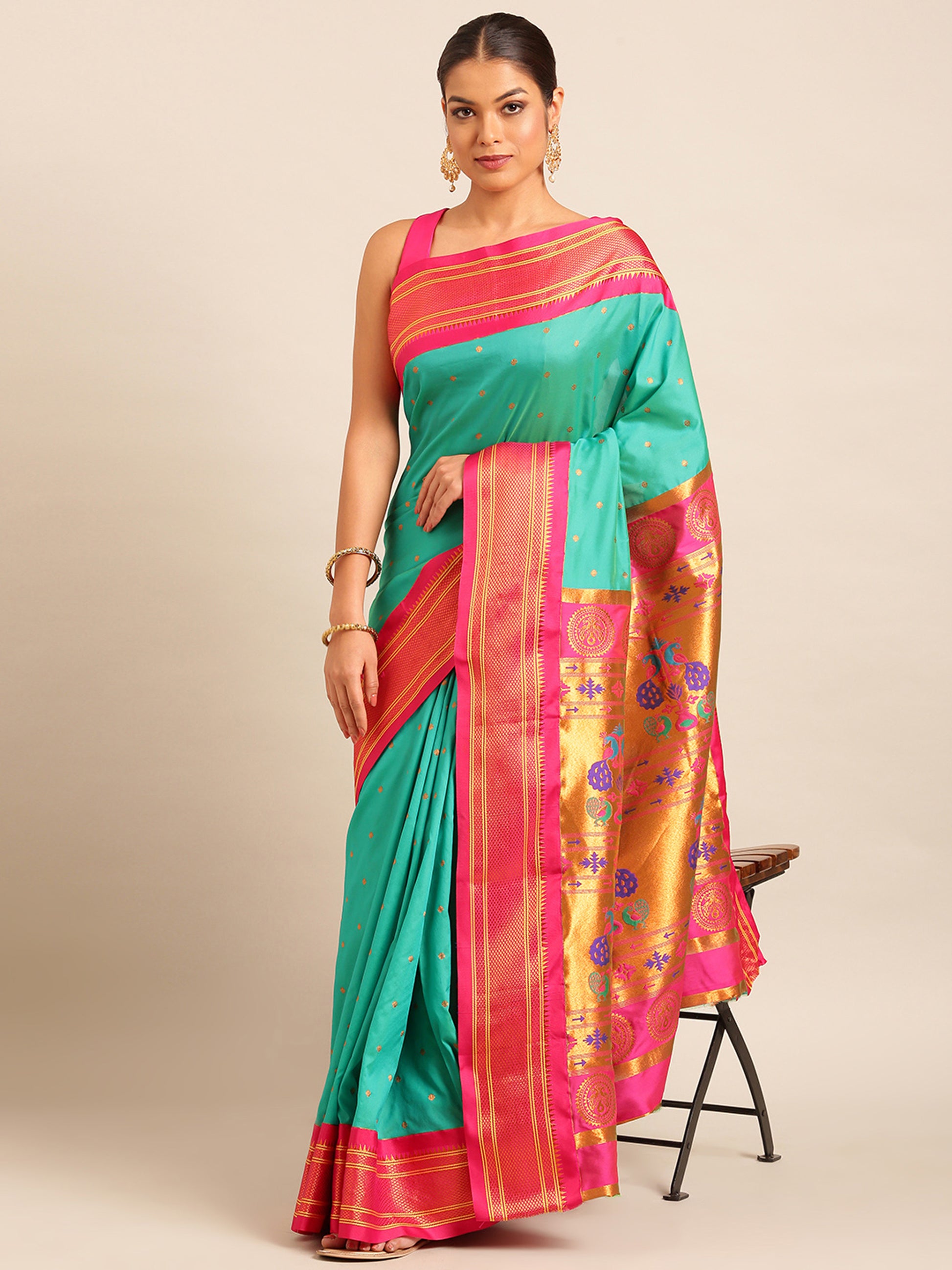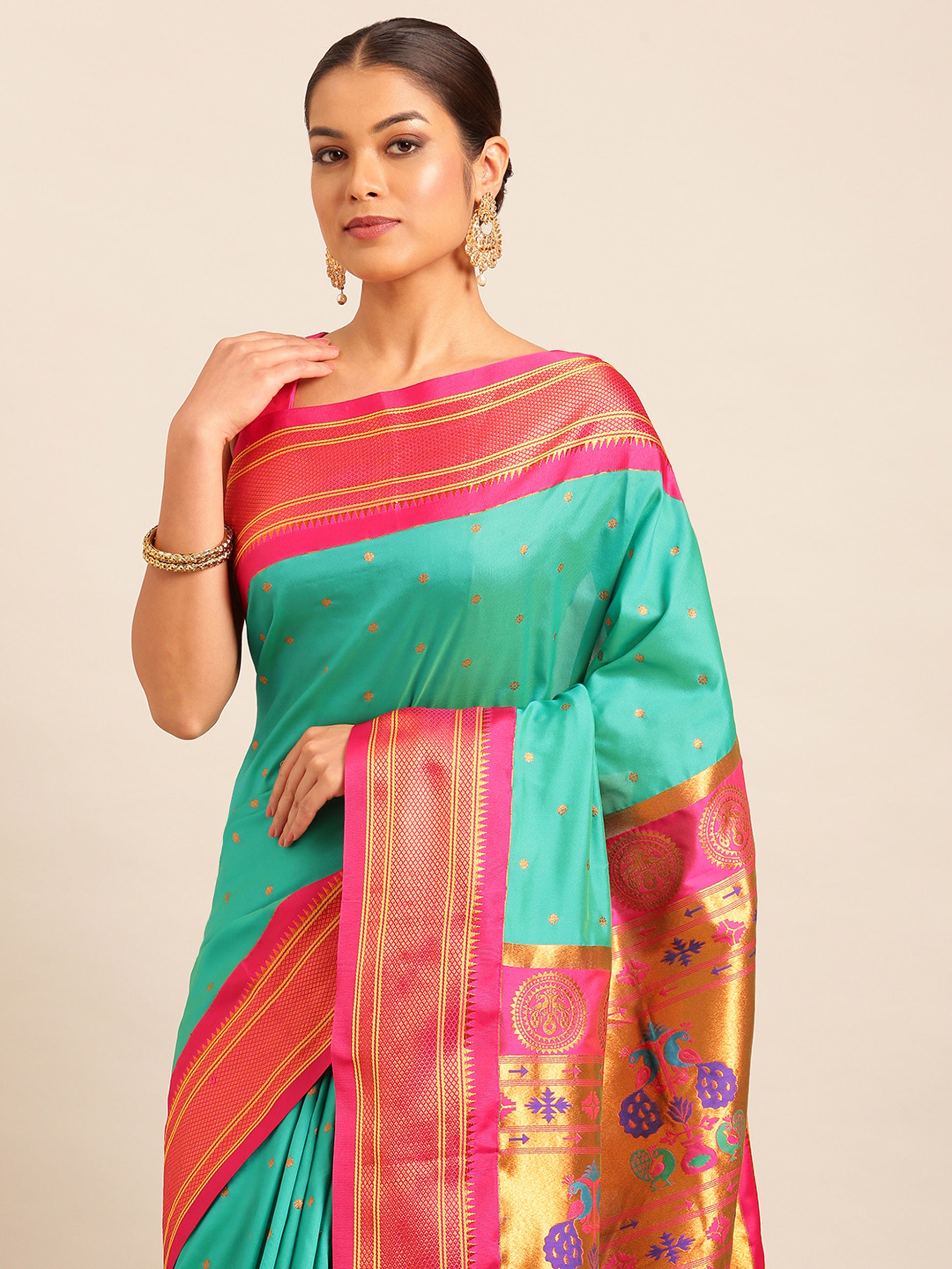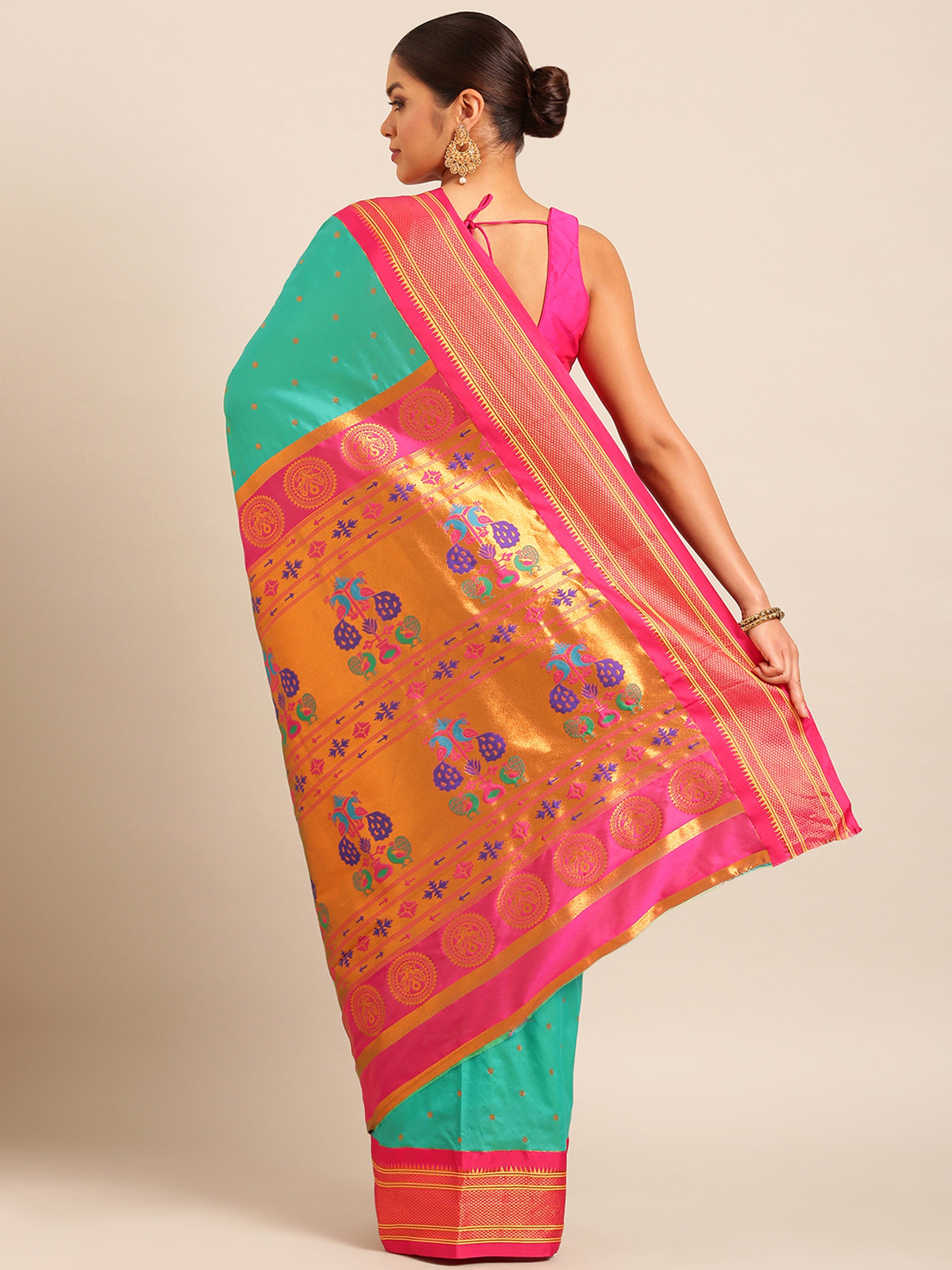 Neha Sea Green & Pink Soft Silk Maharani Paithani Saree