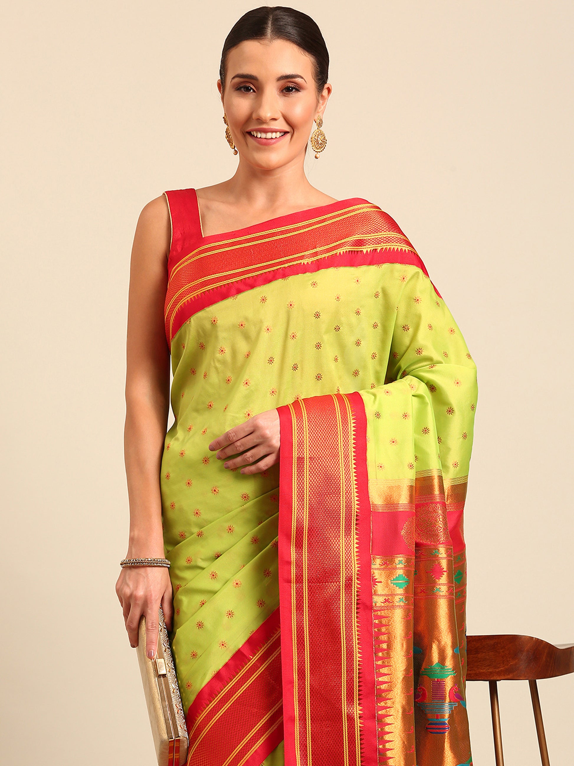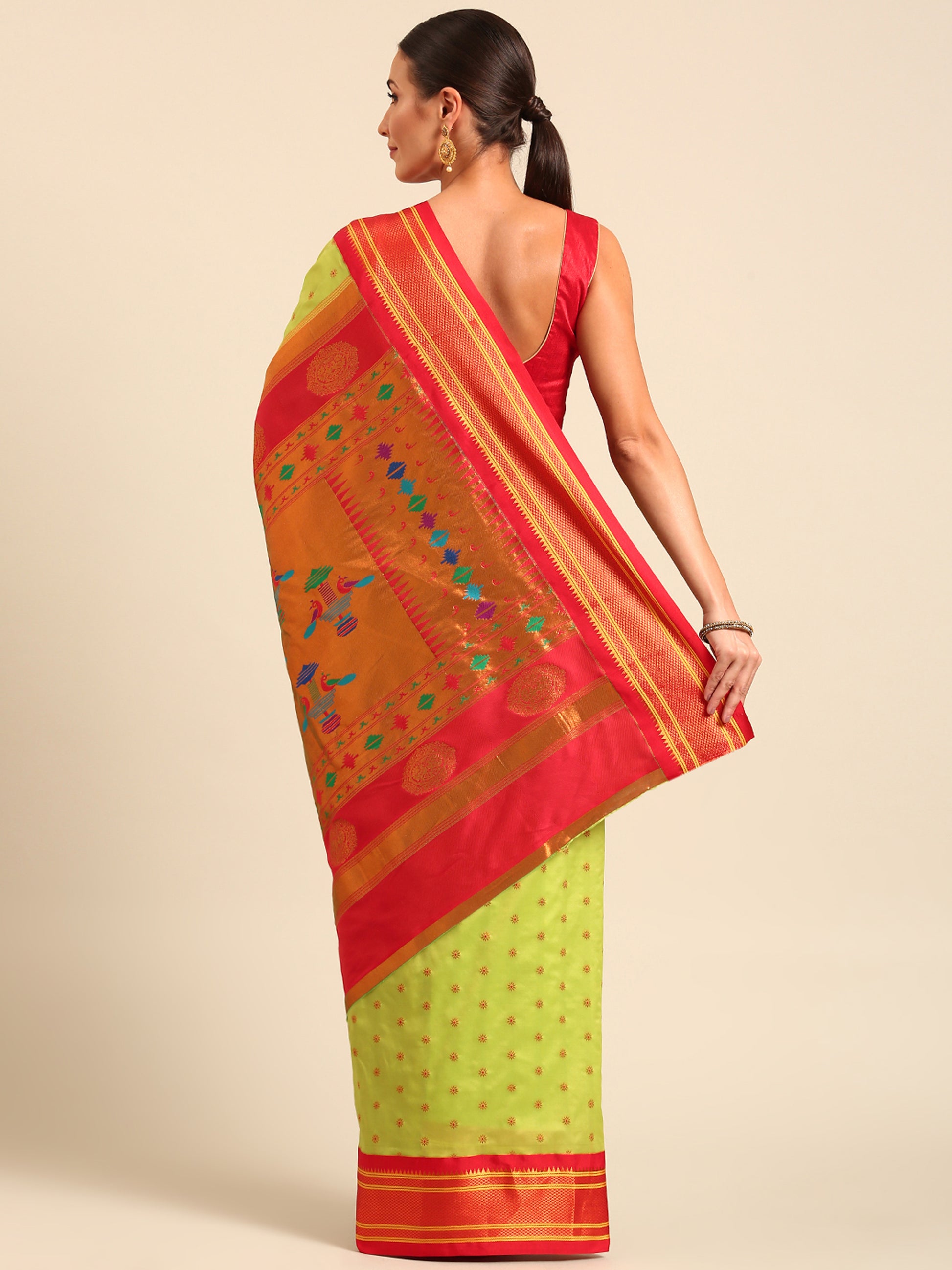 Raksha Parrot Green & Red Soft Silk Double Pallu Paithani Saree