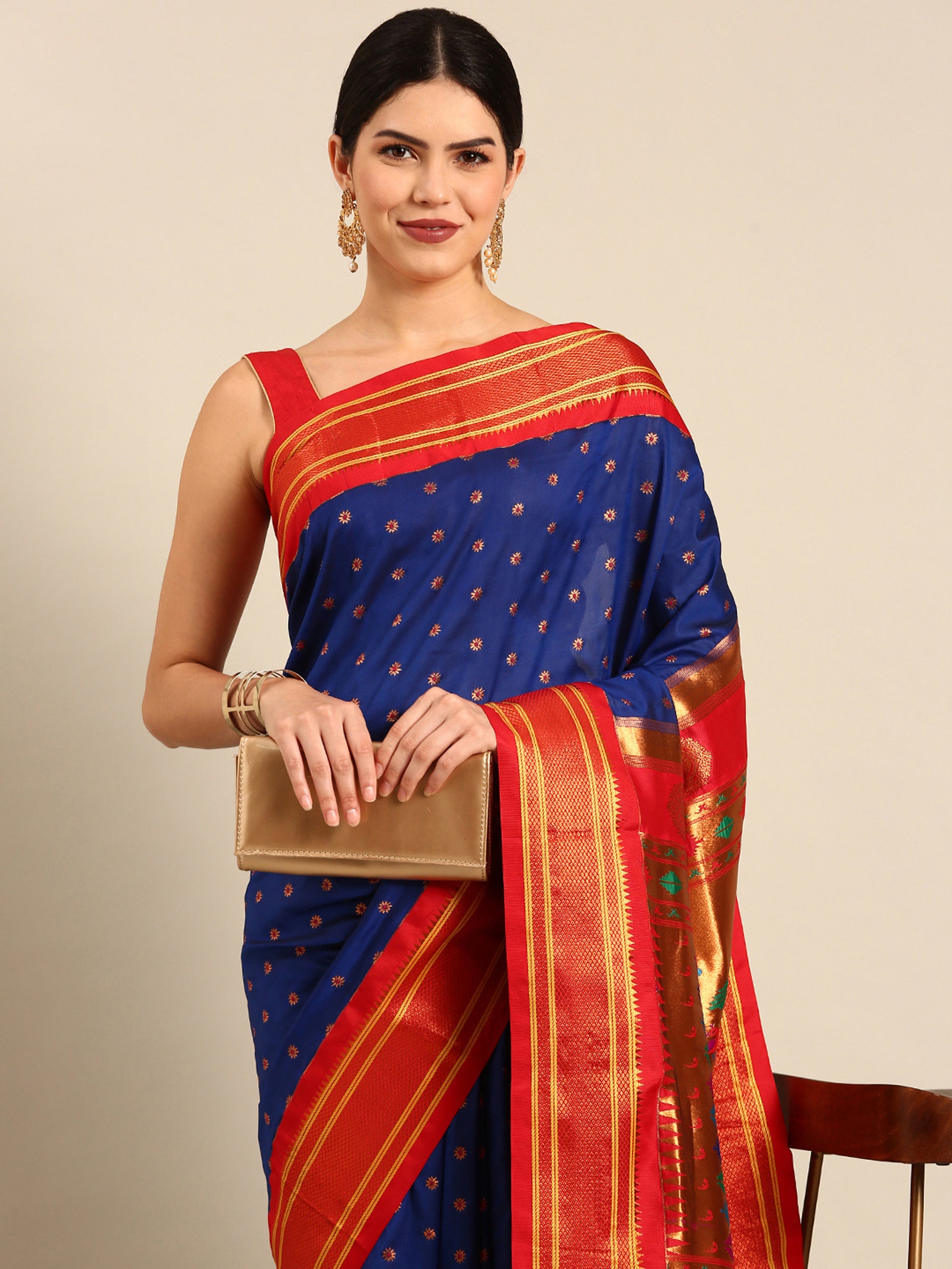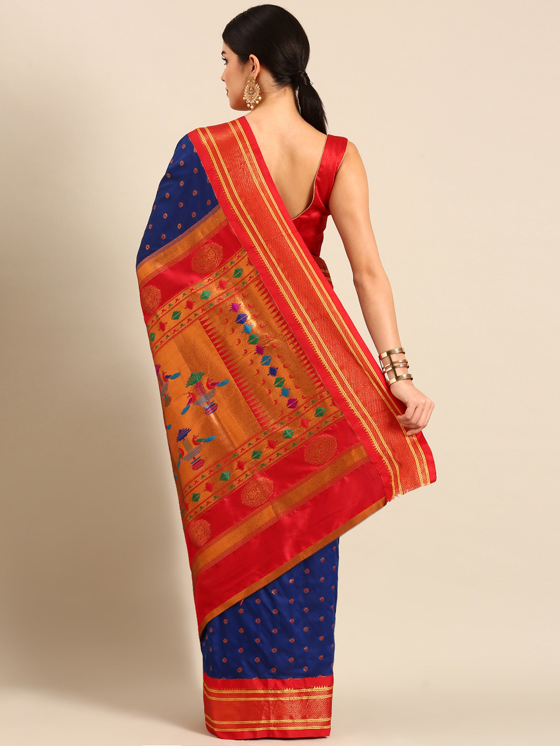 Raksha Royal Blue & Red Soft Silk Double Pallu Paithani Saree