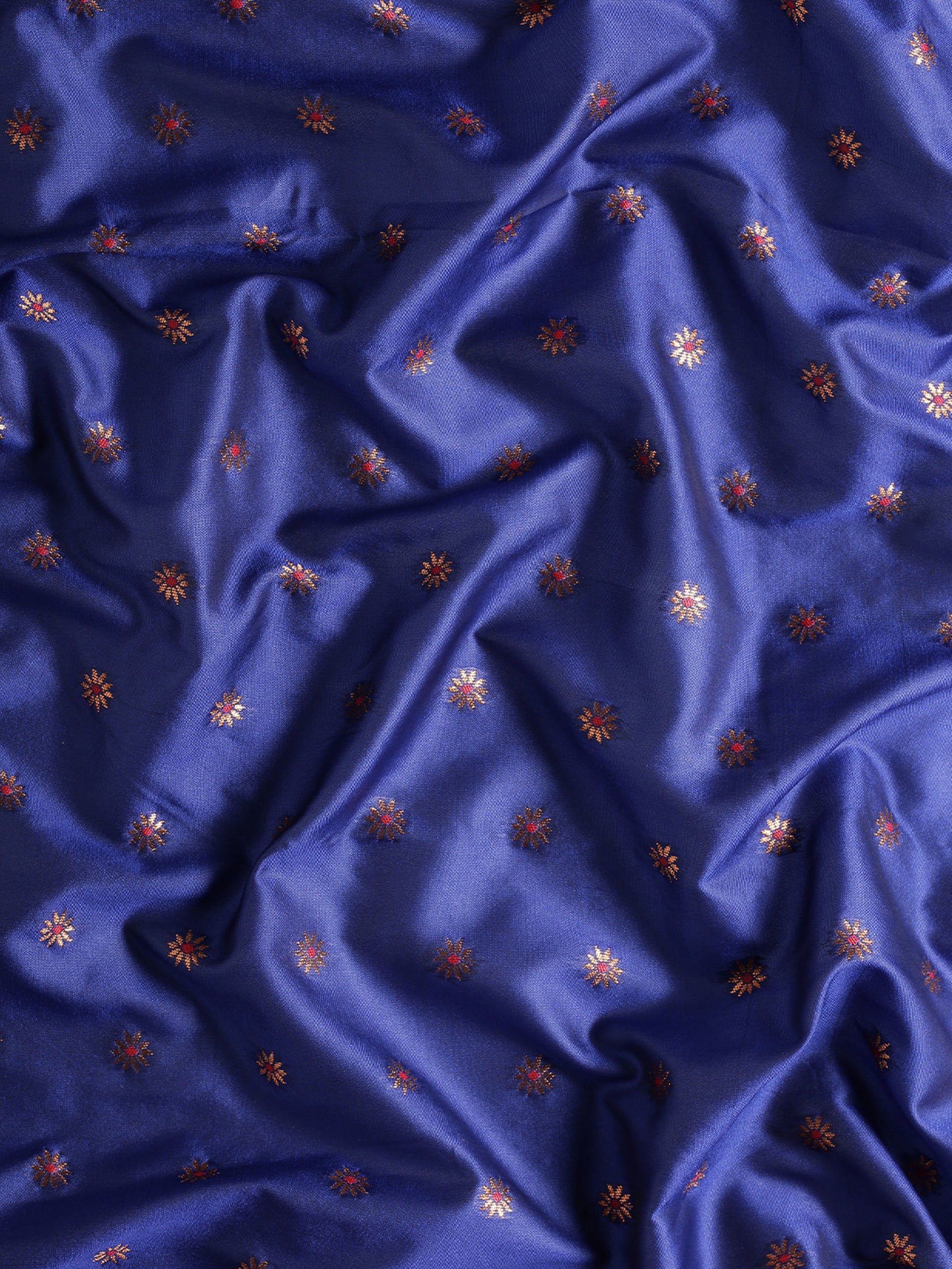 - Pallu Work Type: Copper Zari Woven Muniya & Peacock Motifs