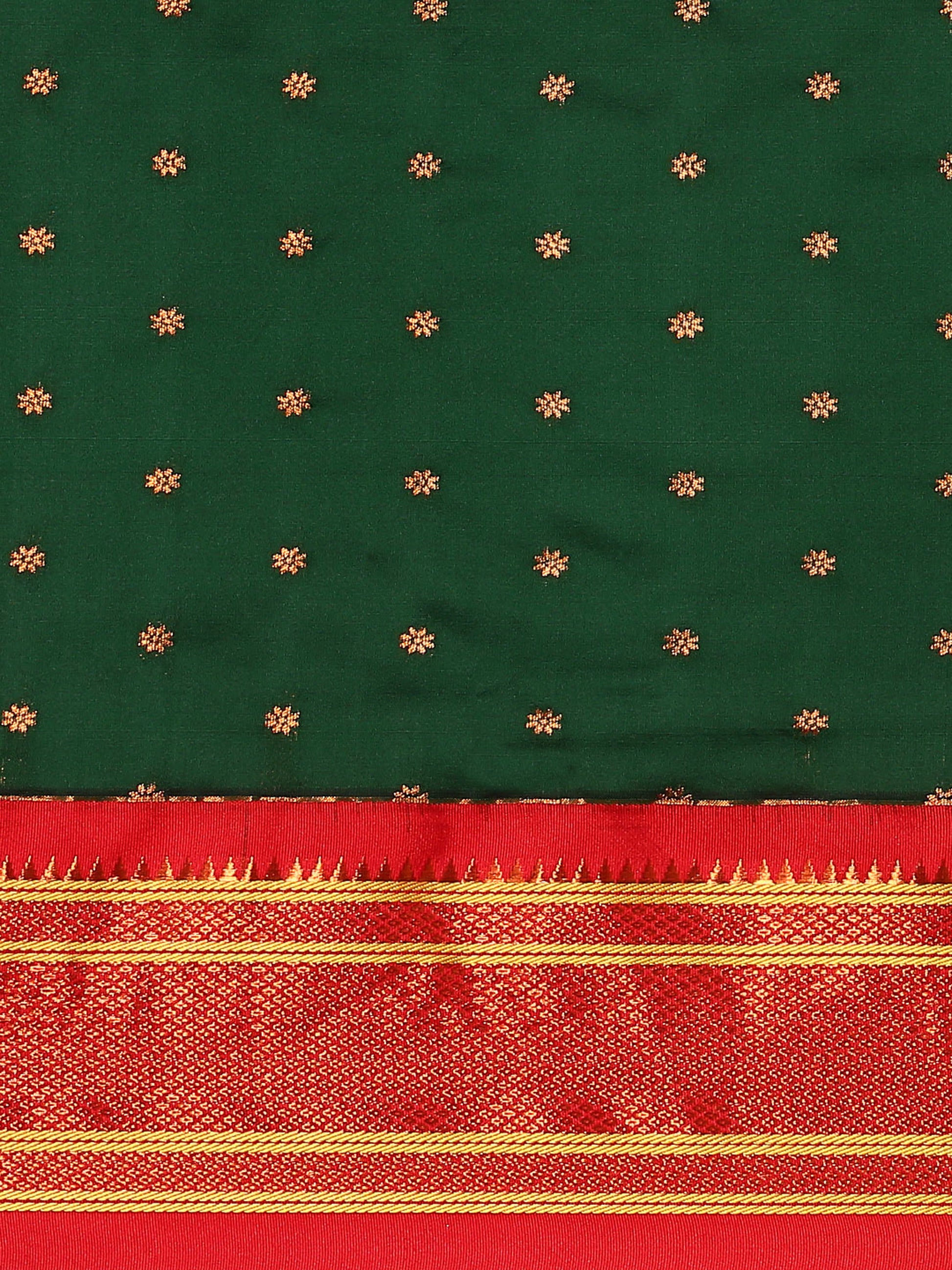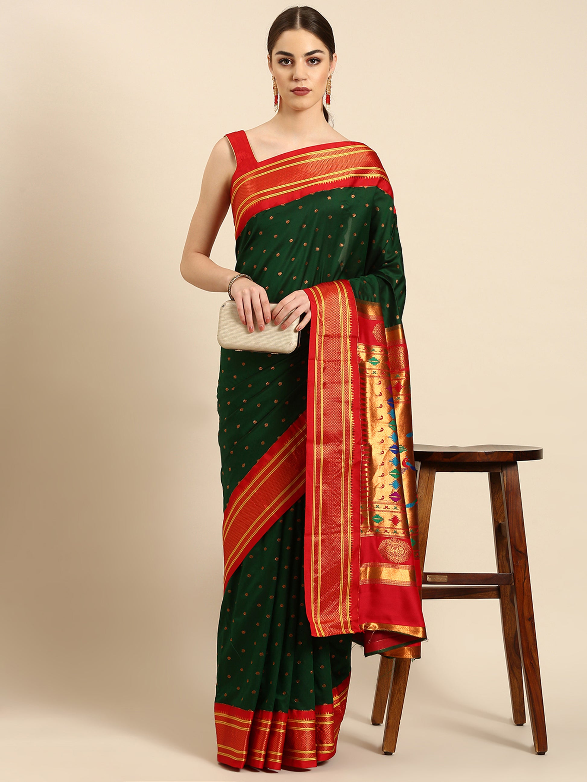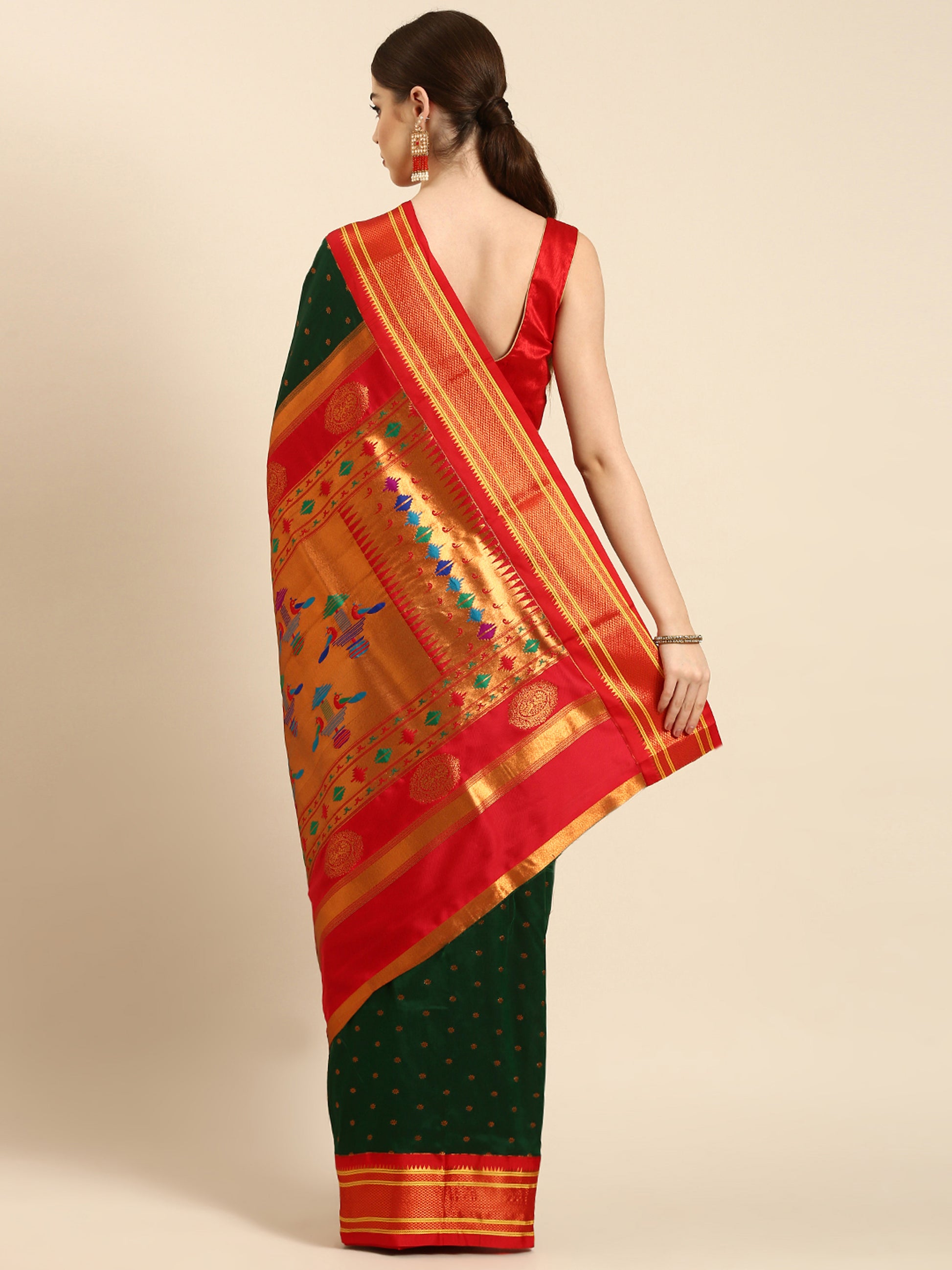 Rashmika Bottle Green & Red Soft Silk Double Pallu Paithani Saree