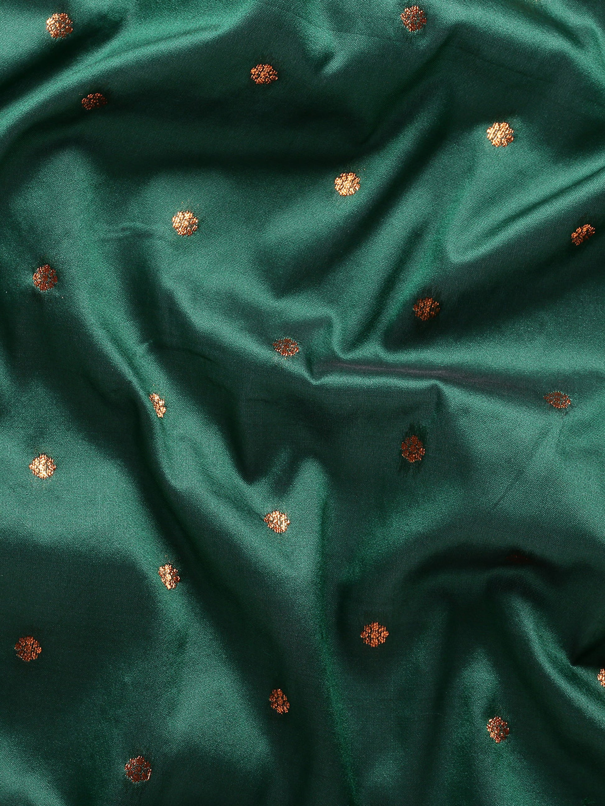 Explore The Collection Of Beautifully Designed Bottle Green & Red Soft Silk Double Pallu Paithani Saree From Varkala Silk Sarees. The Soft Silk Kadiyal Paithani Saree is a stunning choice for weddings, parties, and festivals. This exquisite saree features an intricate checks design on the border, accentuating its elegance. The body is adorned with delicate copper zari small star butti motifs, adding a touch of sophistication. The pallu showcases beautifully woven copper zari Muniya and Peacock motifs, enhancing its traditional appeal. Accompanied by an unstitched blouse piece, this saree effortlessly blends tradition with contemporary style, making it a perfect addition to your festive wardrobe