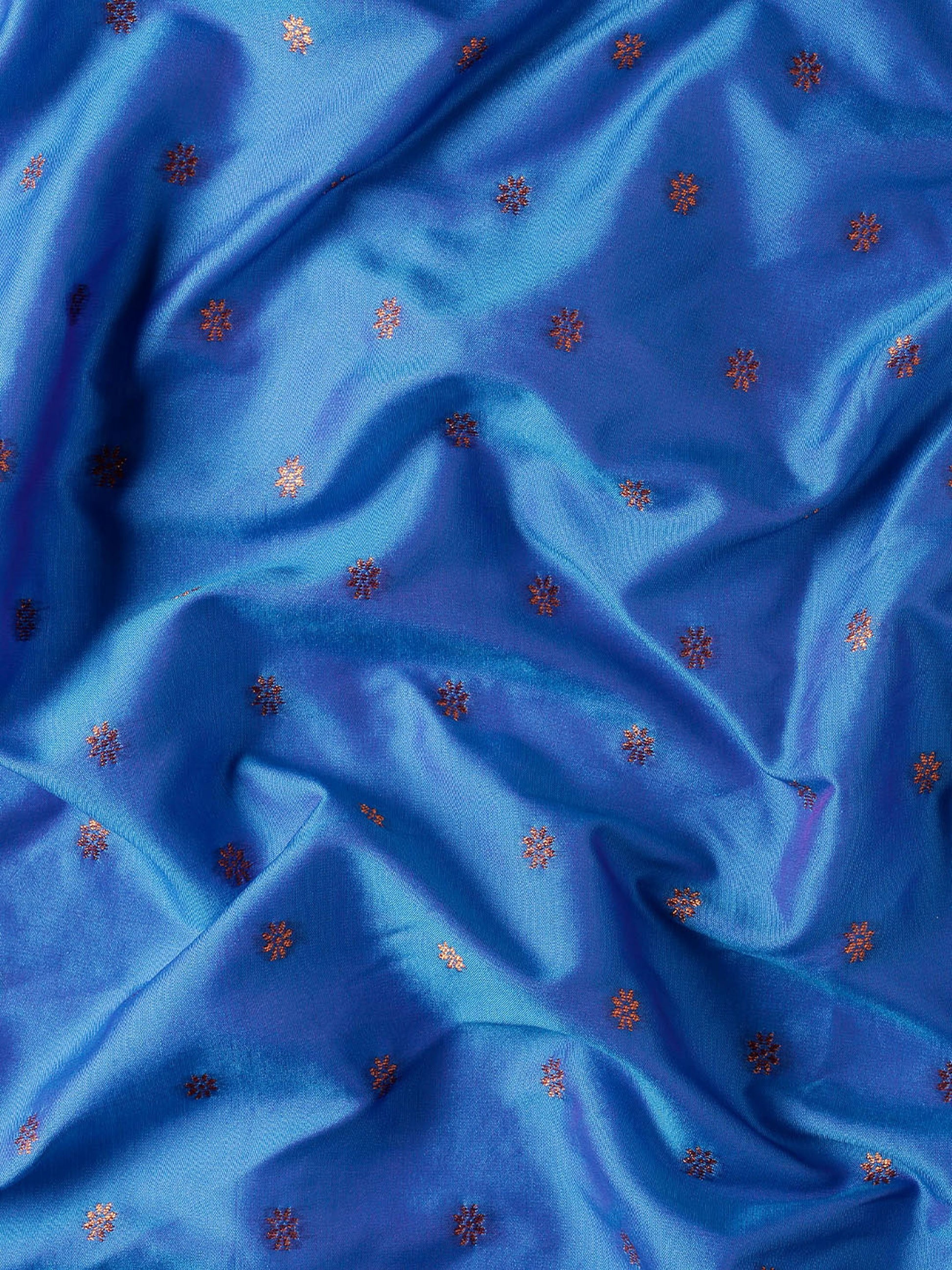 - Pallu Work Type: Copper Zari Woven Muniya & Peacock Motifs